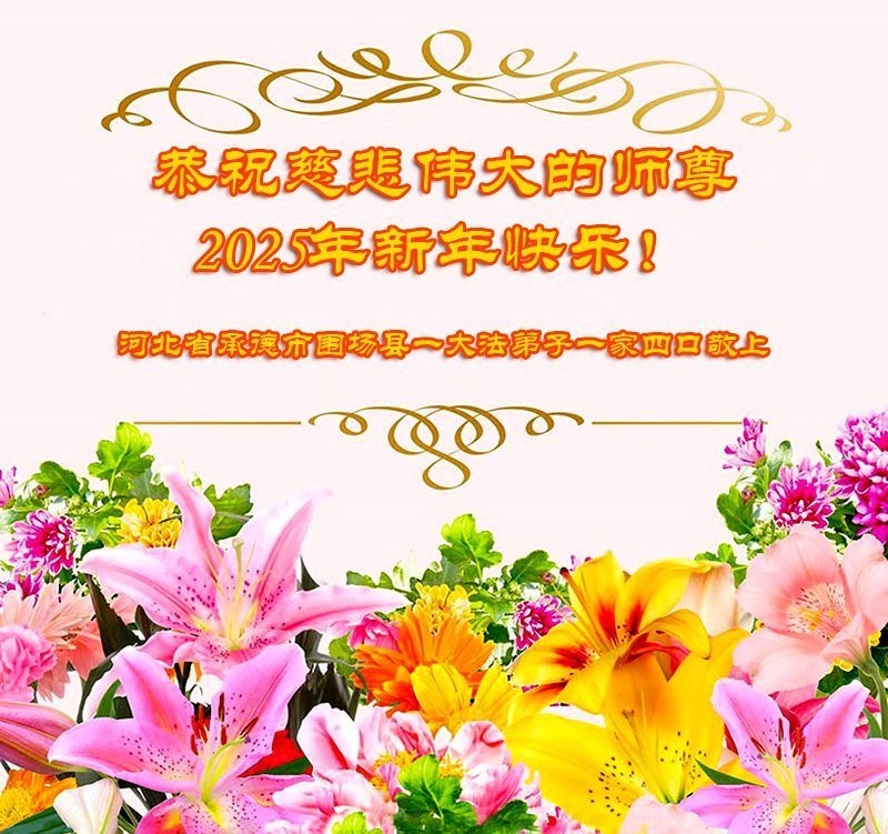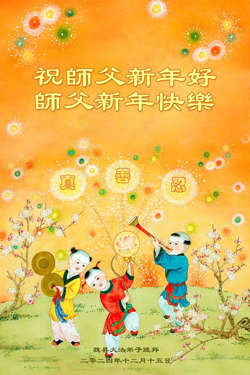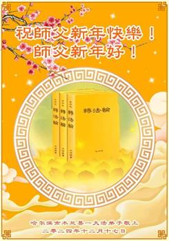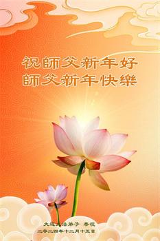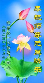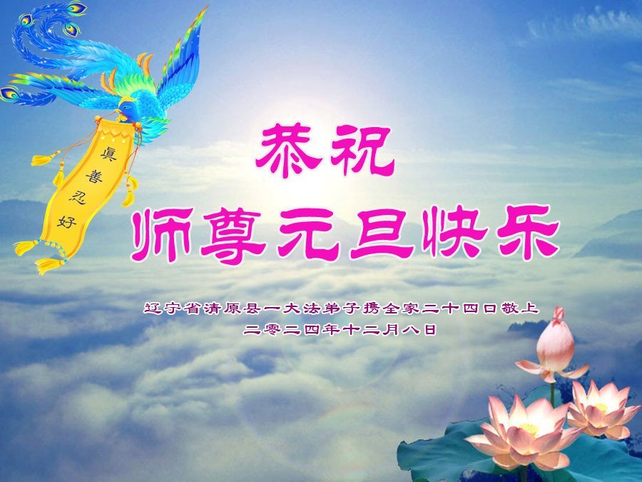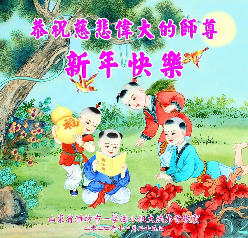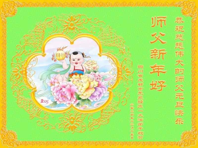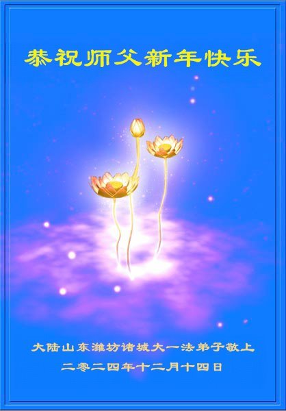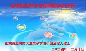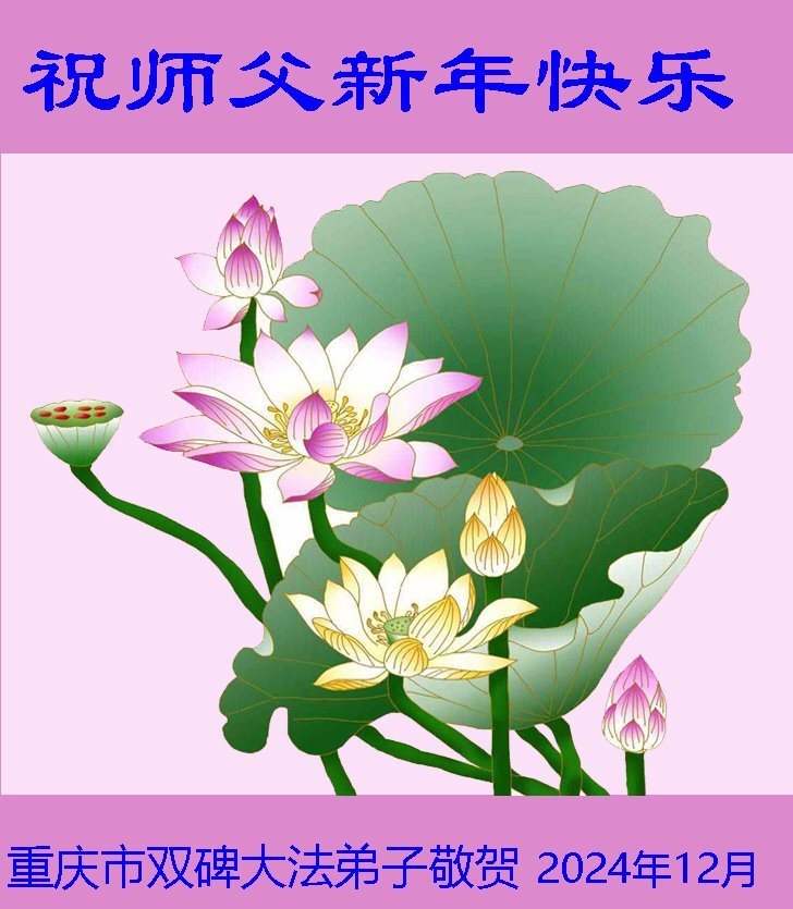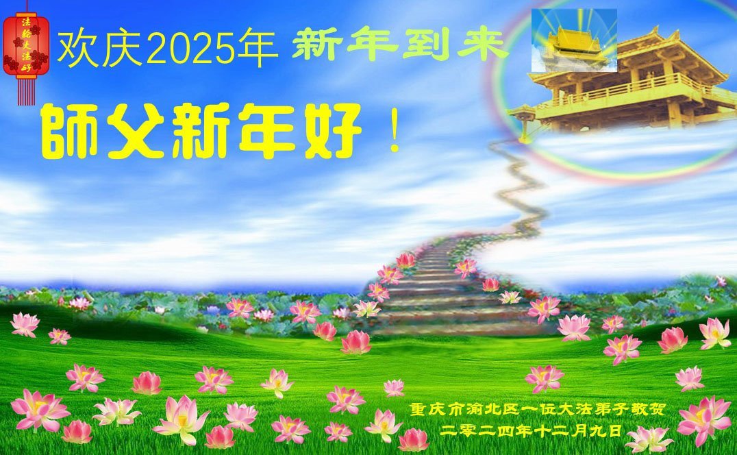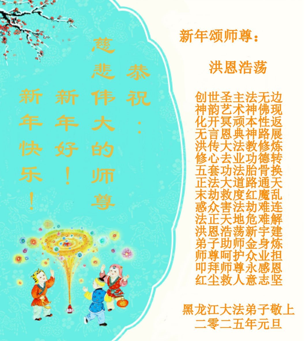 【明慧网二零二四年十二月二十七日】二零二五年新年的钟声即将敲响,明慧网收到来自中国大陆各省市入道得法不久的新学员敬献给李洪志师尊的新年问候。在此法正乾坤的历史时期,能与师尊接上圣缘,众多新大法弟子感到无比幸运,体验到了法轮大法的超常,找到了生命的真谛。新学员感恩师尊的慈悲救度!恭祝师尊新年好!