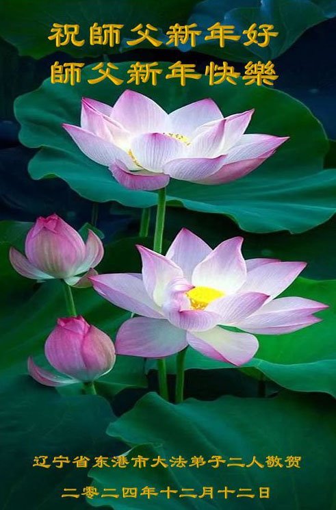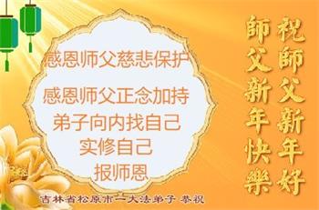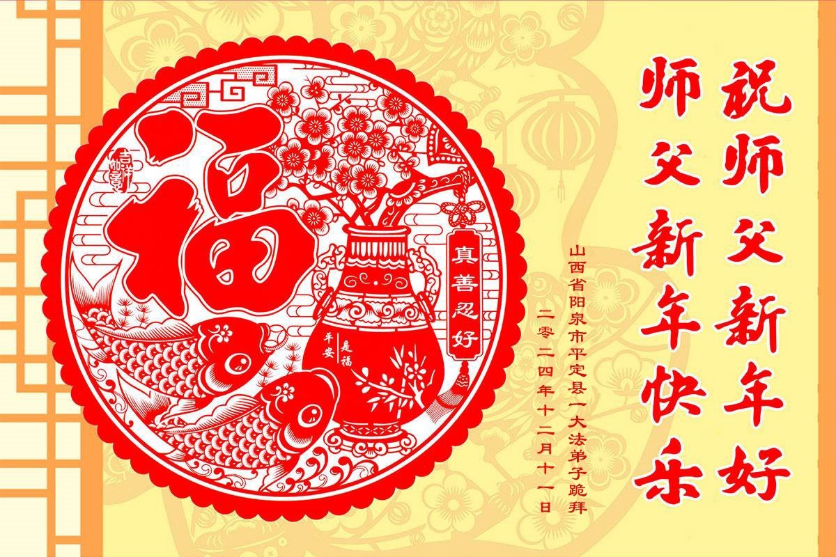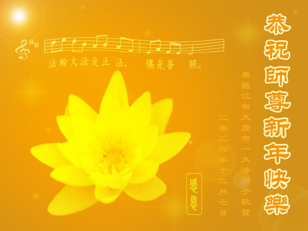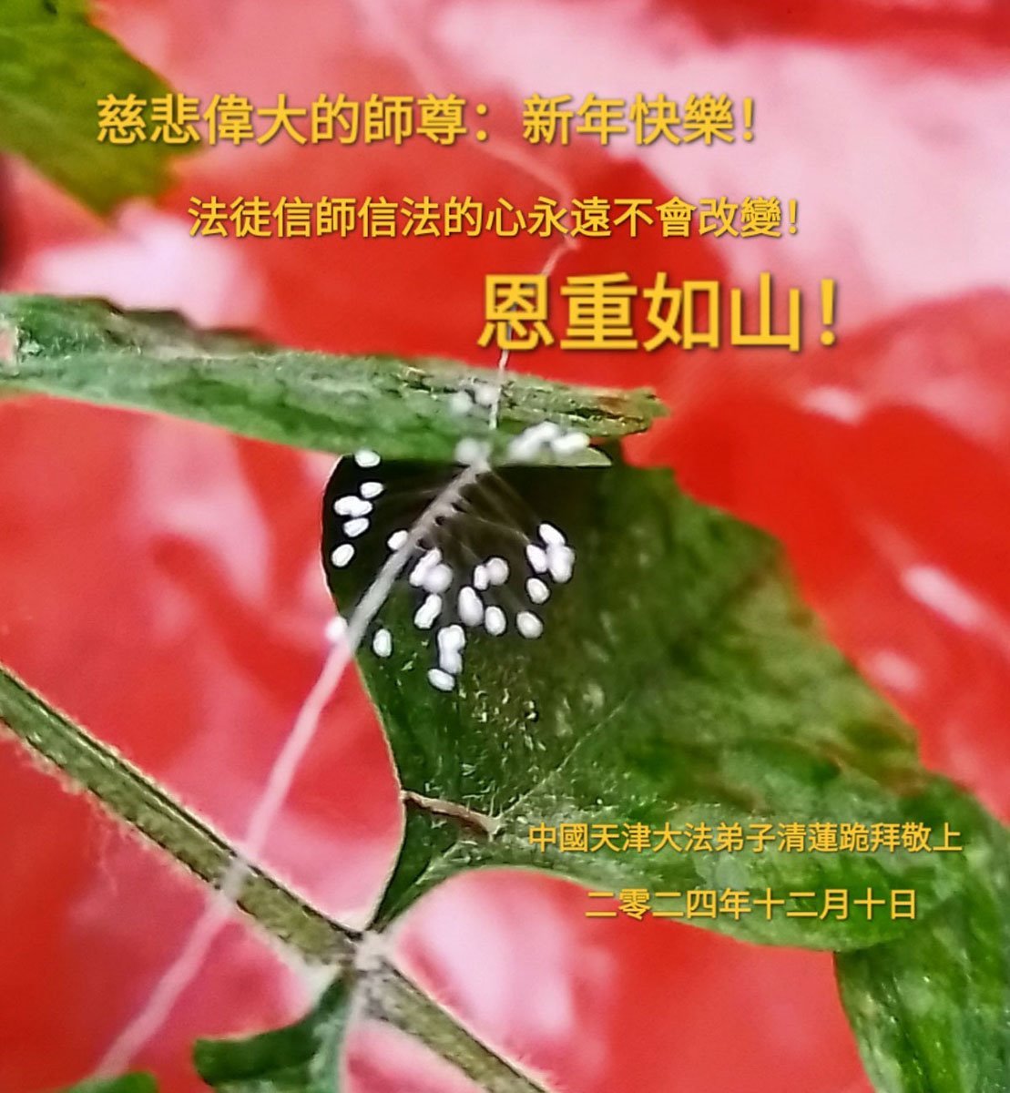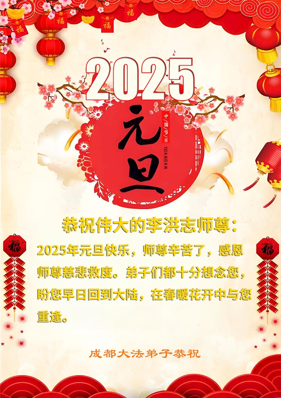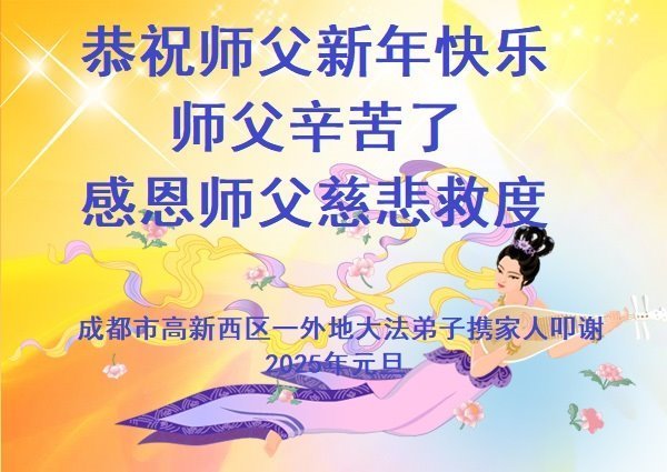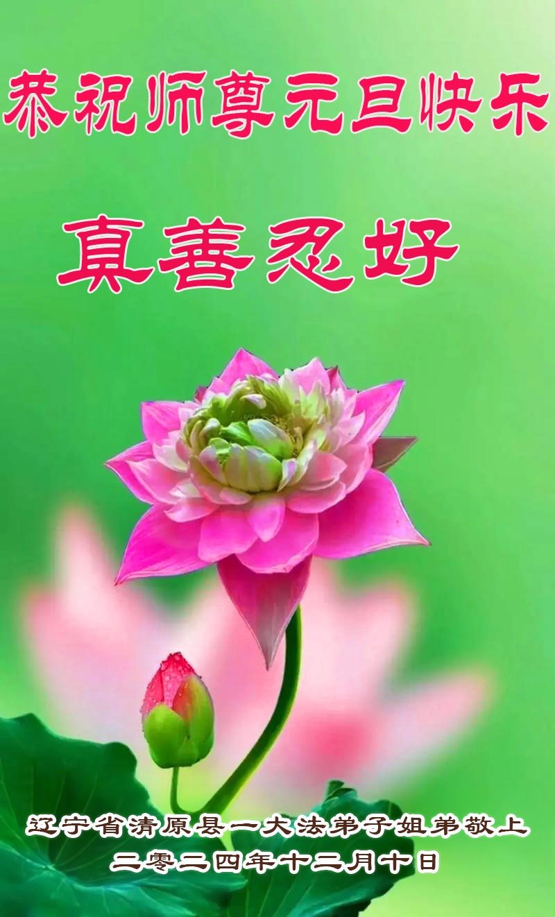 【明慧网二零二四年十二月二十七日】二零二五年新年的钟声即将敲响,明慧网收到来自中国大陆各省市入道得法不久的新学员敬献给李洪志师尊的新年问候。在此法正乾坤的历史时期,能与师尊接上圣缘,众多新大法弟子感到无比幸运,体验到了法轮大法的超常,找到了生命的真谛。新学员感恩师尊的慈悲救度!恭祝师尊新年好!