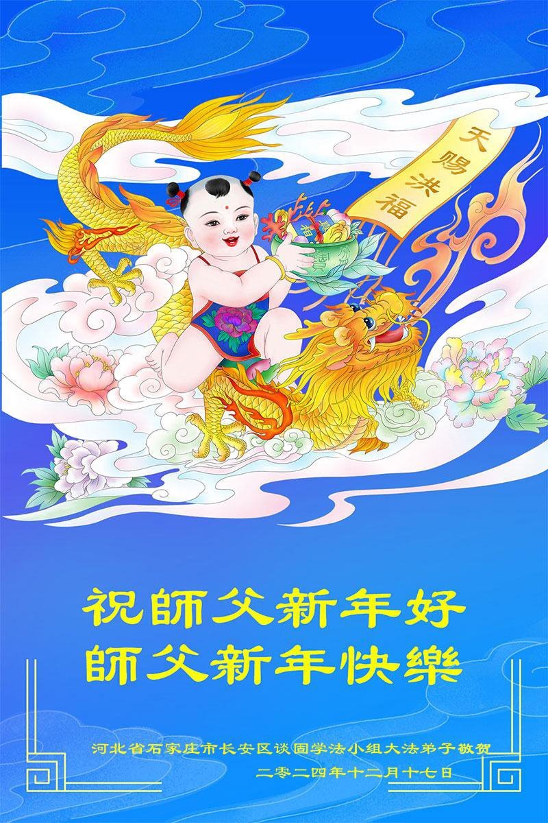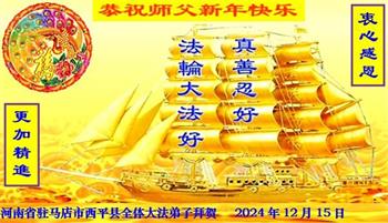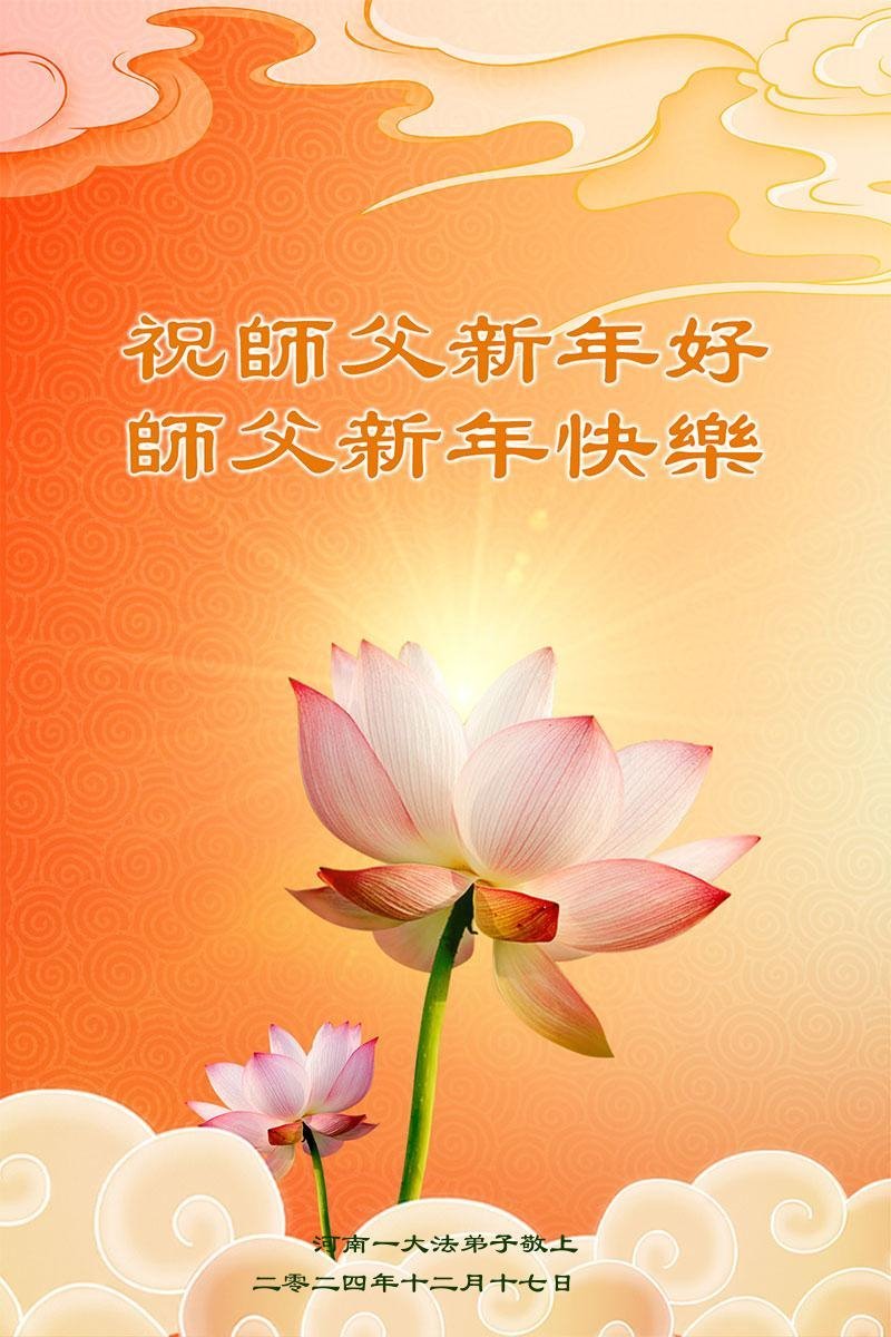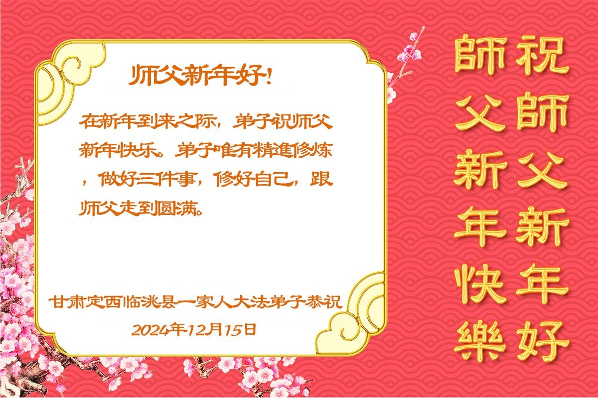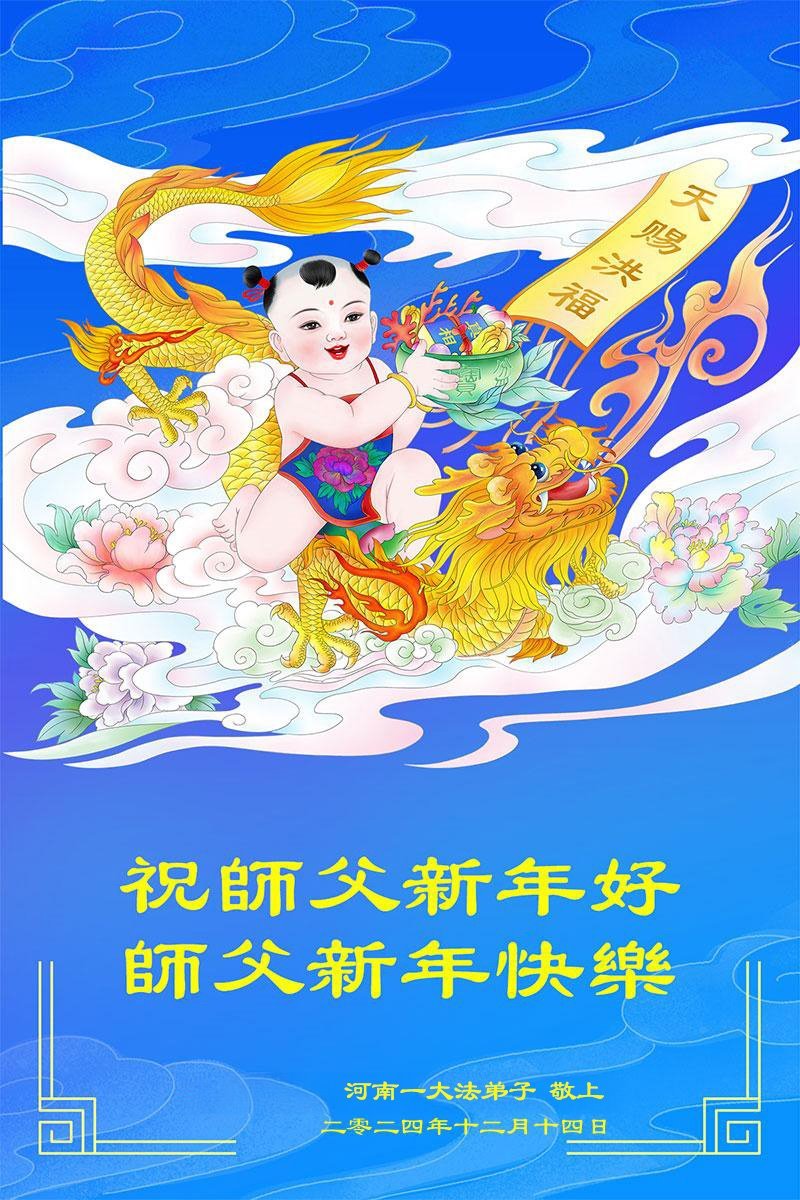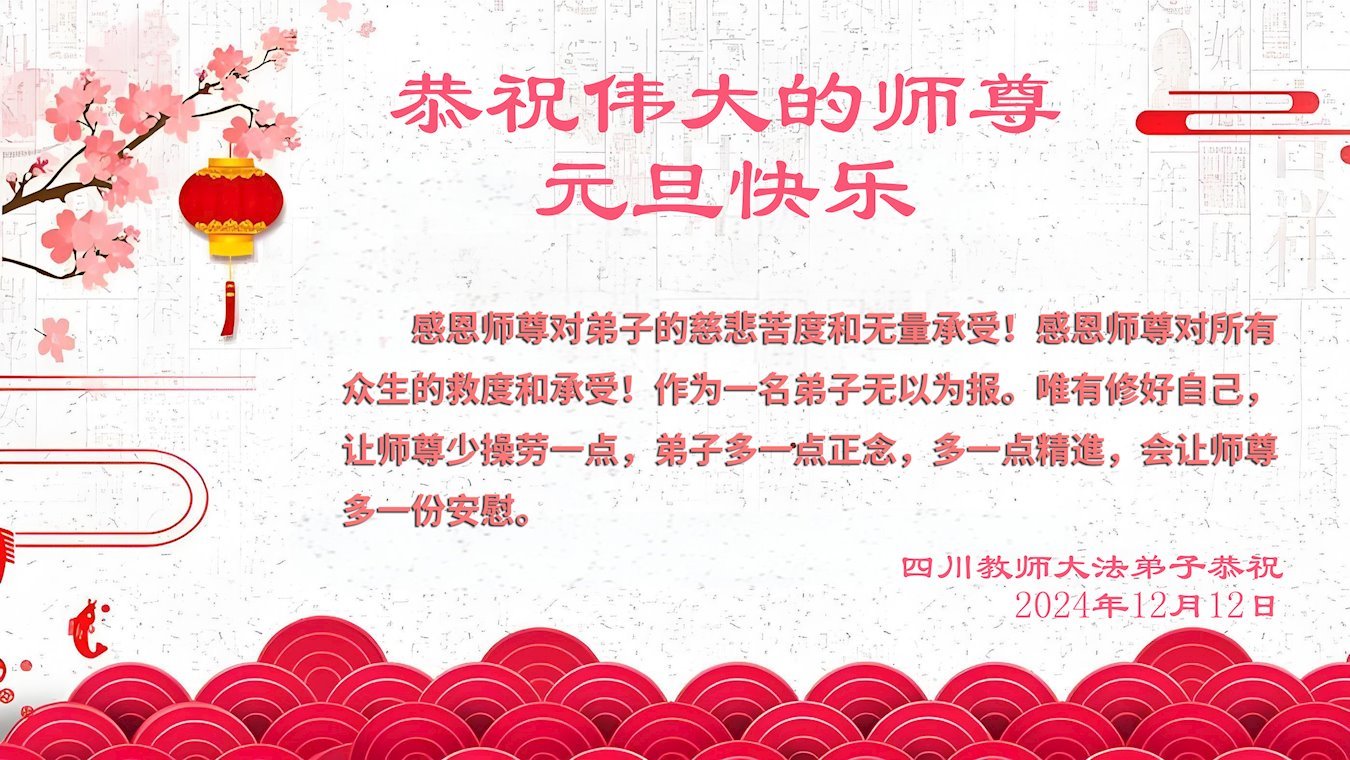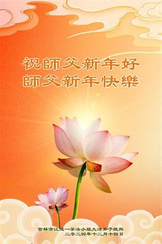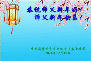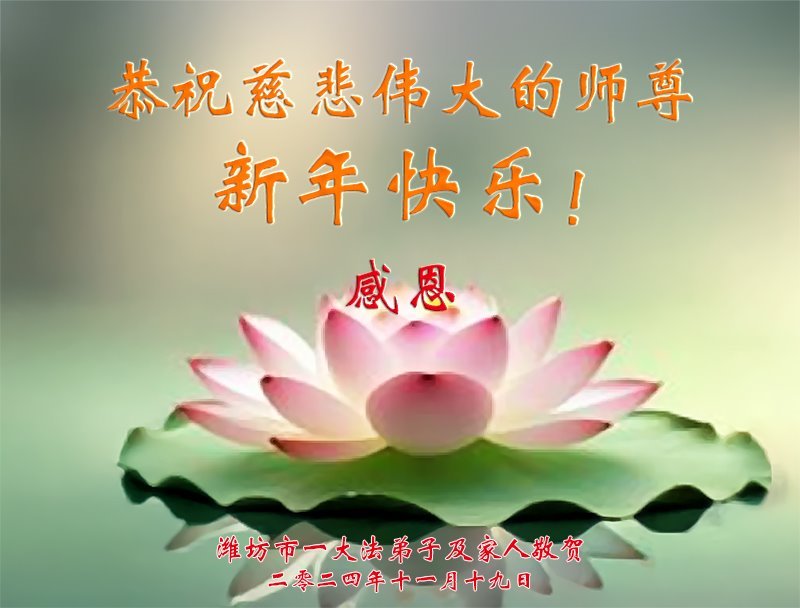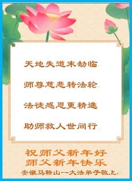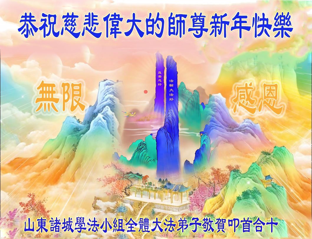 【明慧网二零二四年十二月二十七日】二零二五年新年的钟声即将敲响,明慧网收到来自中国大陆各省市入道得法不久的新学员敬献给李洪志师尊的新年问候。在此法正乾坤的历史时期,能与师尊接上圣缘,众多新大法弟子感到无比幸运,体验到了法轮大法的超常,找到了生命的真谛。新学员感恩师尊的慈悲救度!恭祝师尊新年好!
