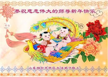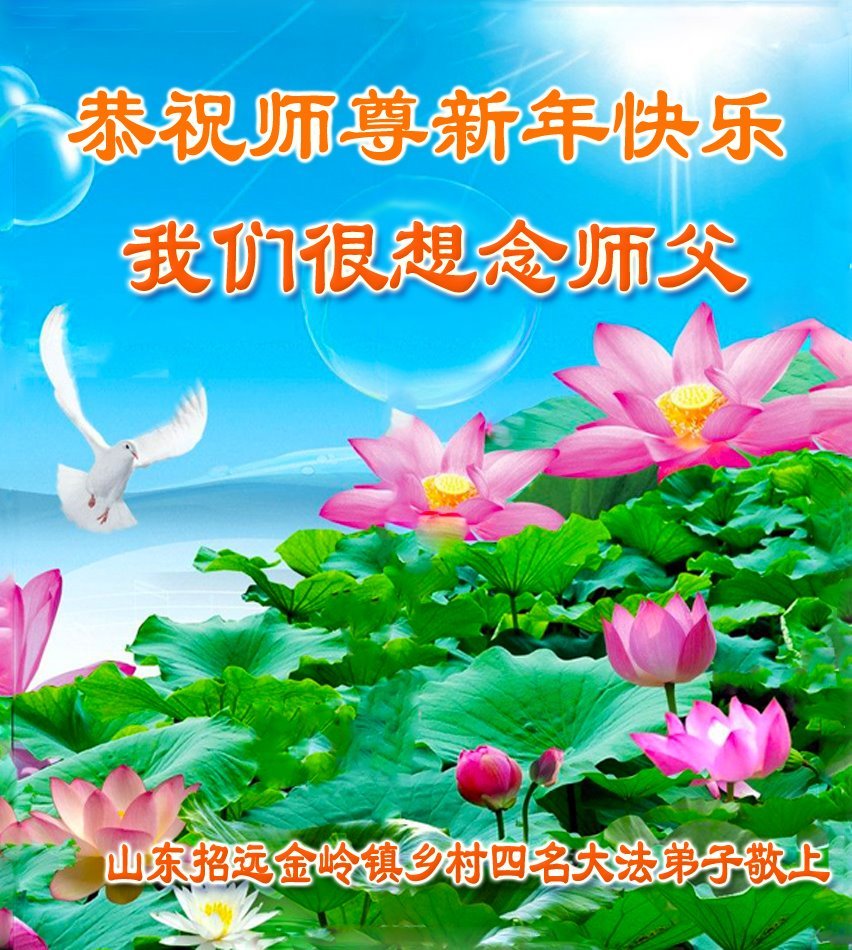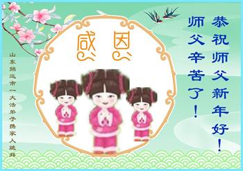 山东烟台招远一位八十四岁新学员恭祝师父新年快乐!