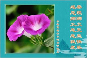 师父您好!我是一名新得法的大法弟子,非常幸运在正法接近尾声的时候,走進大法修炼,感恩师父把我从地狱中捞起,赶上了法船,我一定要多学法,努力成为正法时期大法弟子,和师父一起回家。