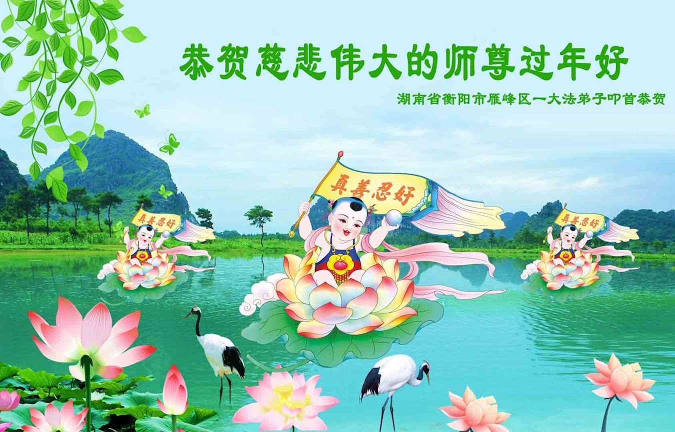 恭祝尊敬的师父新年快乐!希望我们能够提高心性和升华,帮助师父救度众生。