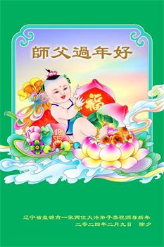 在二月十二日大年初三发表的一则题为《明真相得厚福 中国民众给李大师拜年》的组合中,湖南省娄底地区一家人写道:我们全家人看过法轮大法的许多真相资料,知道法轮大法是济世普度的真法真道,而且我们全家多次受益于大法。每当意外难关降临,我们第一念就赶紧诚心敬念“法轮大法好,真善忍好”,次次都化险为夷。河南省许昌市几家大法弟子的家属表示:我们知道中共对大法的舆论宣传,都是对大法和大法弟子的诬陷。我们明白了法轮功真相,得到了您的慈悲救度,身体健康,家庭和睦。我们非常支持大法。在新的一年里,我们还要宣传大法,弘扬大法。