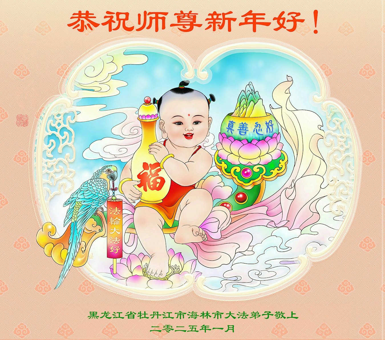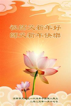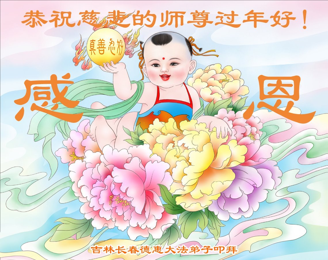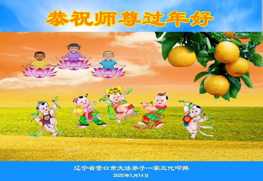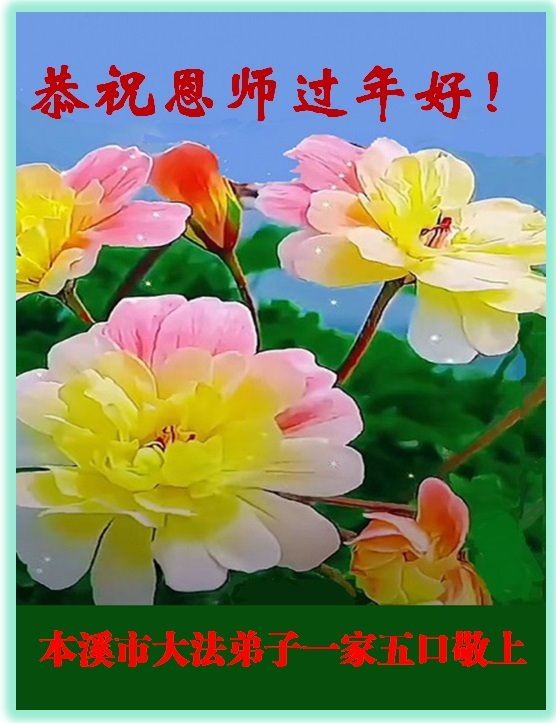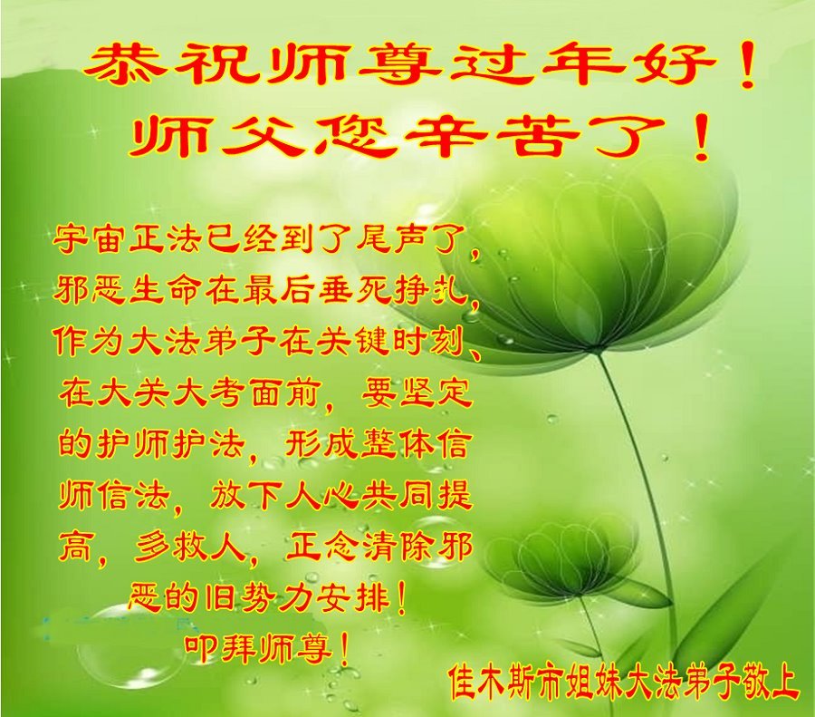 感恩师父的慈悲救度!感恩师父将我们从地狱中捞出洗净,引领我们走上一条返本归真之路。在新年到来之际,我们全家大法弟子及新学员(共6人)给慈悲伟大的师尊拜年:师父过年好!师父您辛苦了!