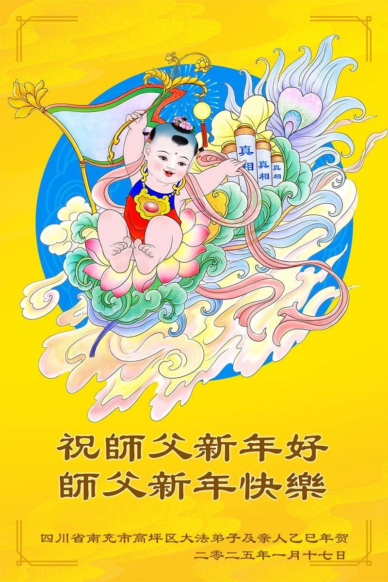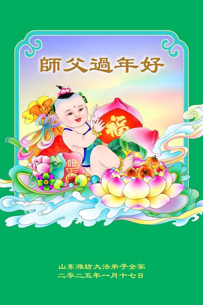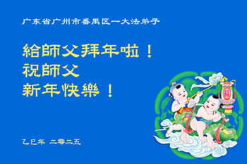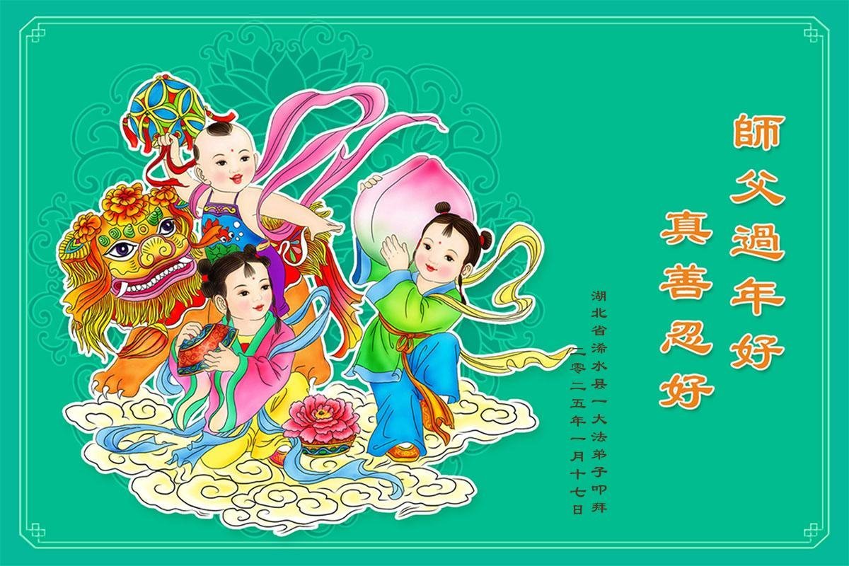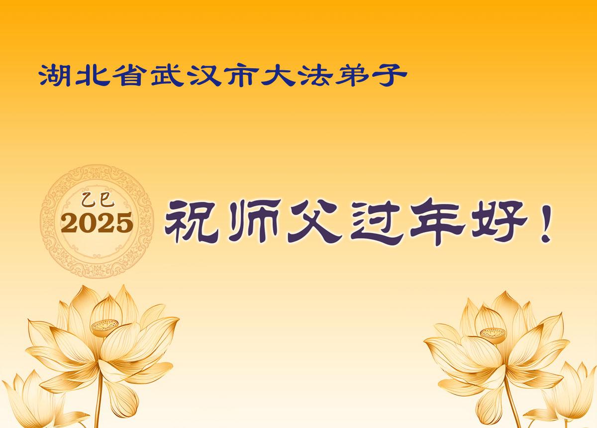 感恩师父的慈悲救度!感恩师父将我们从地狱中捞出洗净,引领我们走上一条返本归真之路。在新年到来之际,我们全家大法弟子及新学员(共6人)给慈悲伟大的师尊拜年:师父过年好!师父您辛苦了!