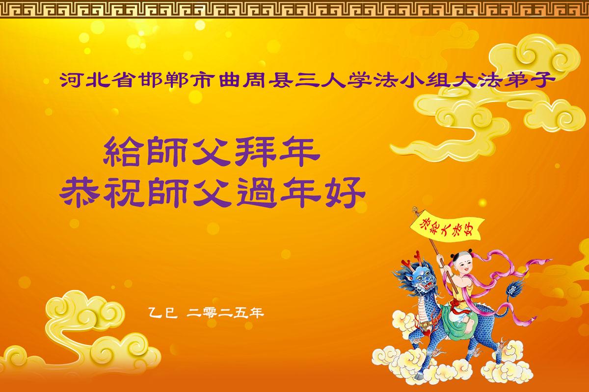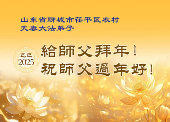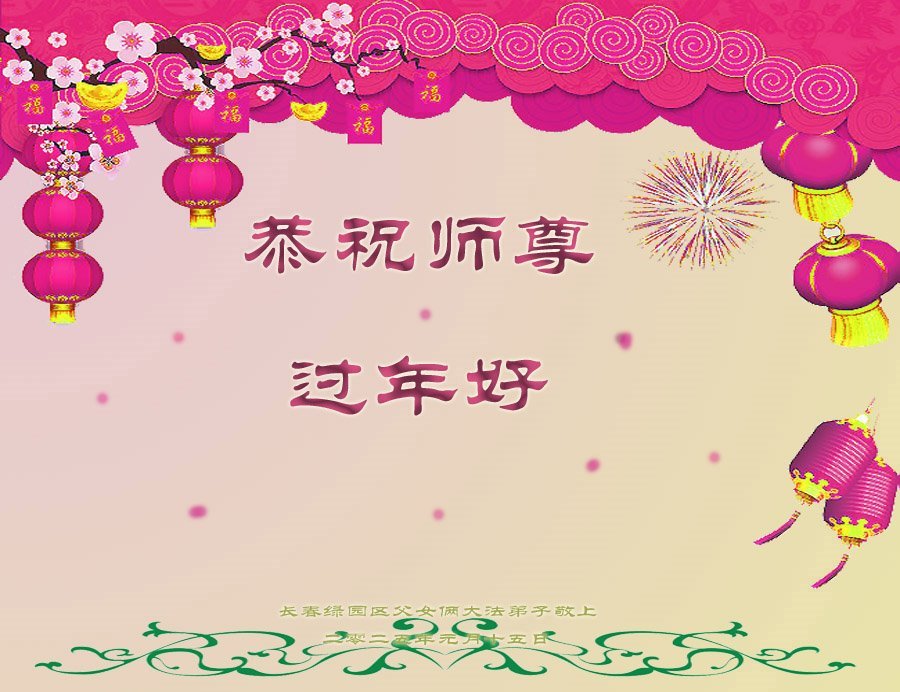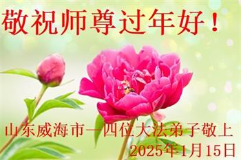 在中国新年来临之际,山东省济南市大法弟子给师尊拜年啦!恭祝师尊新年快乐!师尊新年好!法难中,每个大法弟子都在其中,这不是邪恶逞恶的地方,弟子愿倾尽生命之所有同化大法,做好三件事,不辜负师尊慈悲苦度。