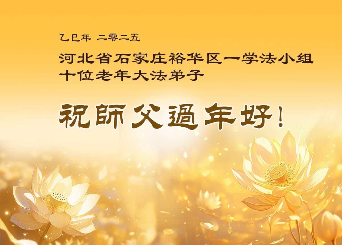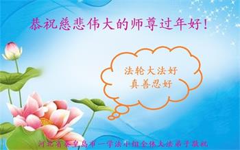 弟子们也代表学法小组大法弟子给师尊拜年,恭祝师尊新年好!弟子们一定努力修好自己,在生活中做到无怨无恨,以苦为乐,讲好真相,多救人,跟师尊回家!