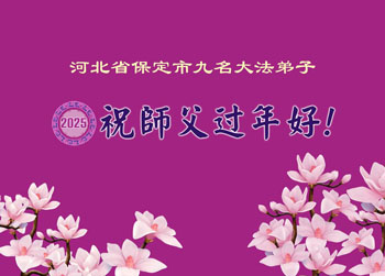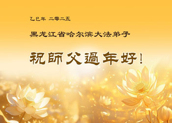我们原来是一个大组学法的学员,后来分成多个学法小组,分布在多个城区,虽然目前没有集中在一起,但是我们的心一直是向往回归的路,决心跟师父回到美好的家园。在此我们所有学法小组的学员向师父表达我们的心声:师父您好,师父您辛苦了,师父您过年好!我们大家要继续学好法,做好三件事,努力救人,兑现誓约,不辜负师尊的慈悲苦度!叩谢师恩!