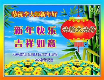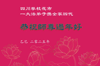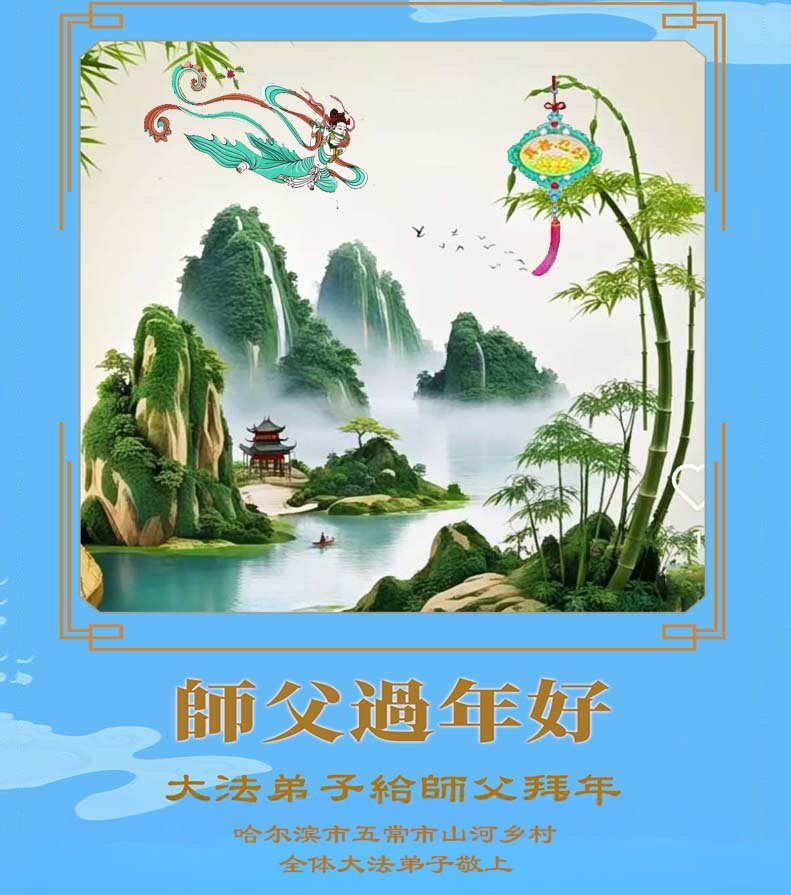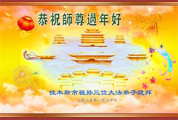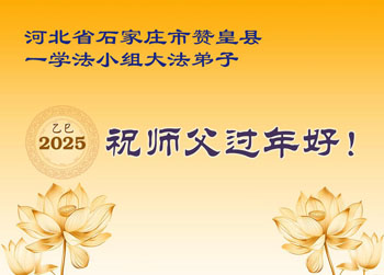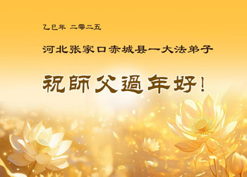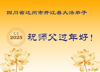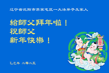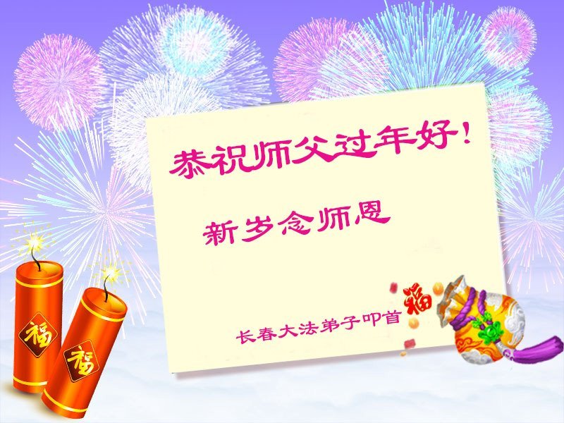 尊敬的师父您好!我是大法弟子的家属,很相信法轮大法好!真善忍好!过年了,我让姥姥帮我给师父发个贺卡。祝愿师父年年好!天天快乐!