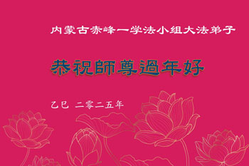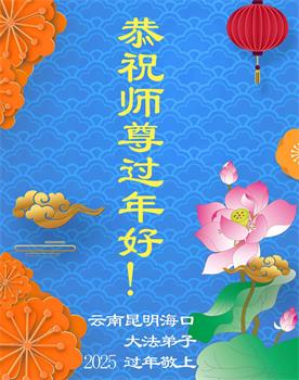 师父,我们是南通崇川一老年学法小组,在此叩首恭祝伟大的师父过年好!我们信师信法的心永远不会变,我们就是要护师护法,学好法,做好三件事,跟师父回真正的家。再次恭祝师父过年好!