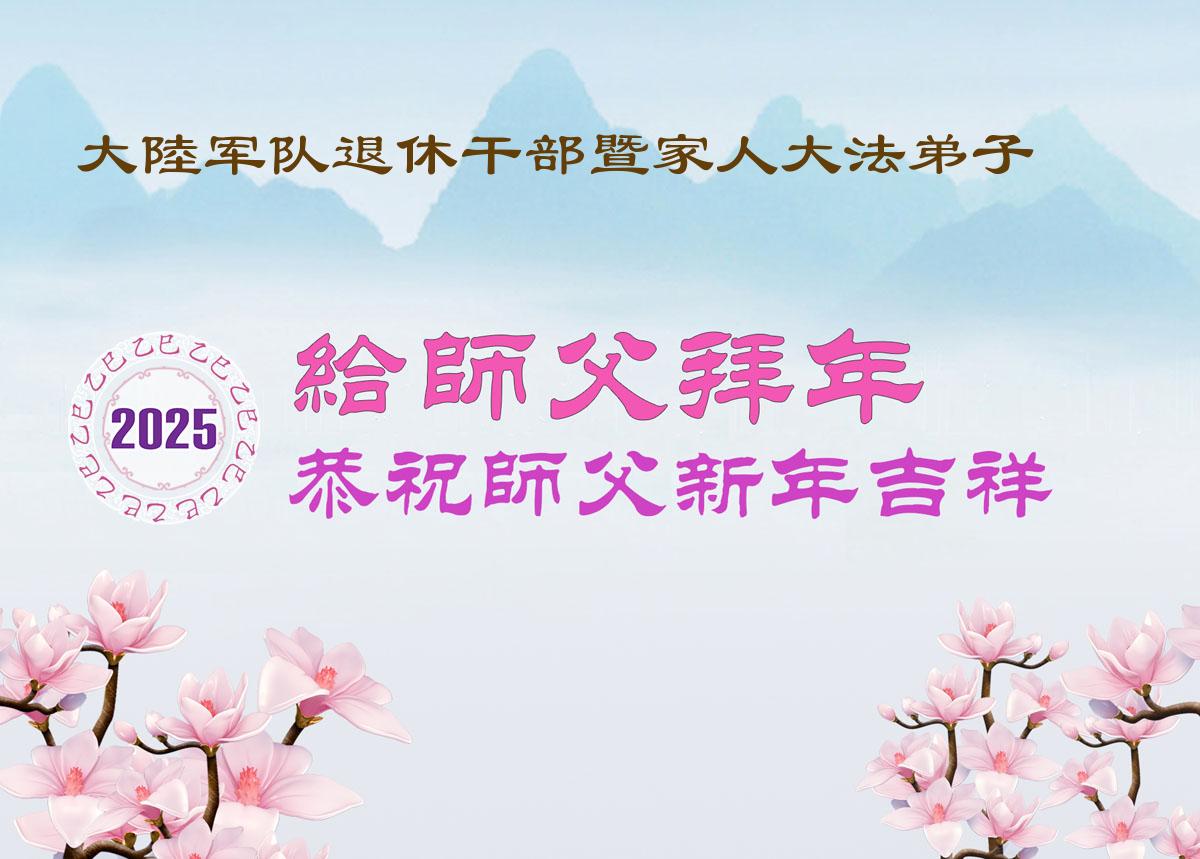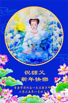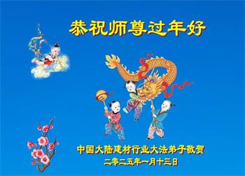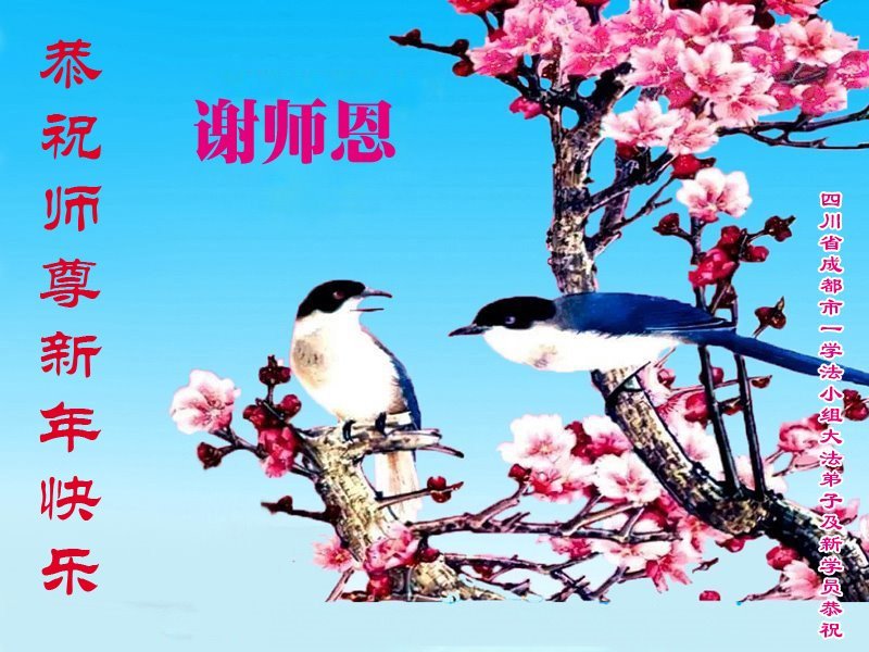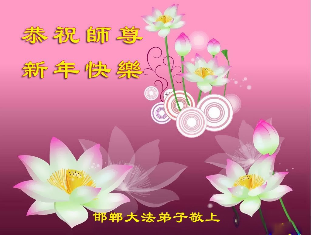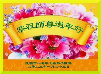 以下是部份中国老年大法弟子的贺词贺卡:恭祝慈悲伟大的师父新年好!