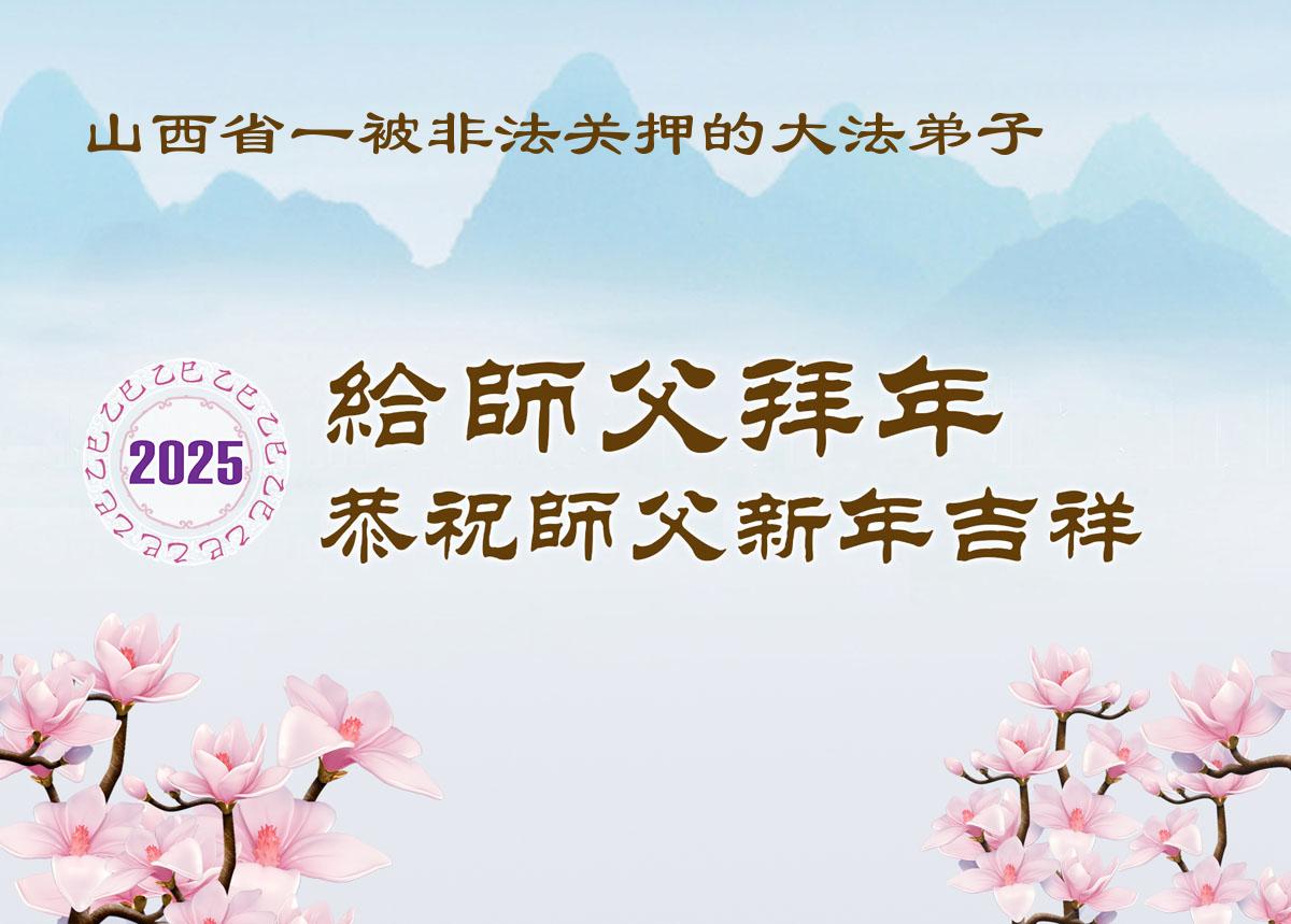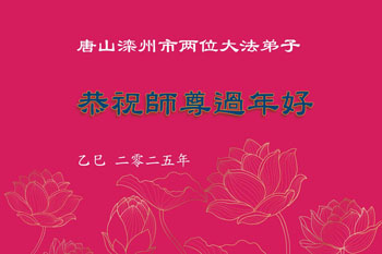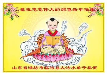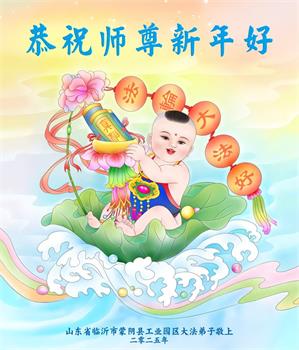 山东省临沂市被非法关押迫害的大法弟子恭祝慈悲伟大的师尊新年好!他们表示:“我们虽然身陷囹圄,身体没有自由,但助师救度众生的心不变,无论环境多么恶劣,依然会正念正行,救人不停,努力做好三件事,跟师父回家!谢谢伟大师尊的慈悲苦度!”