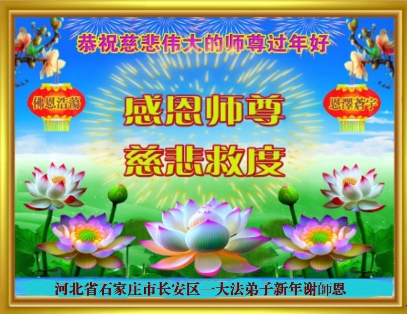 恭祝慈悲伟大的师尊新年快乐! 弟子二十多年来随师正法救度众生的艰苦修炼中,都是在师尊的慈悲保护下,在大法的指引下,才走到了今天,弟子感恩师尊的慈悲苦度。弟子一定好好珍惜千古机缘,修去各种执著心,做好三件事,多多救人,做个合格的大法弟子。不辜负师尊的慈悲苦度。