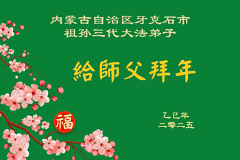 我们都是明白大法真相的大法弟子亲属,我们心里常念诵“法轮大法好!真善忍好!”我们都是亲身受益者。感恩法轮大法拯救全人类!我们抱着感恩的心给李洪志大师拜年!