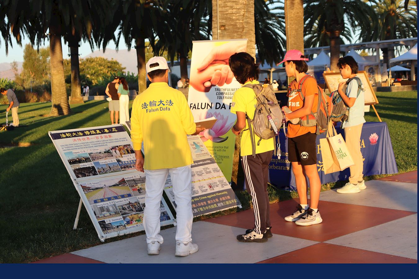 本届地球村节有116个摊位,约30家美食铺,以及各民族的精彩艺术表演。十几年来,当地的法轮大法修炼者持续参加尔湾地球村节的活动,以各种方式向人们展示着大法的美好和修炼后的身心改善。
