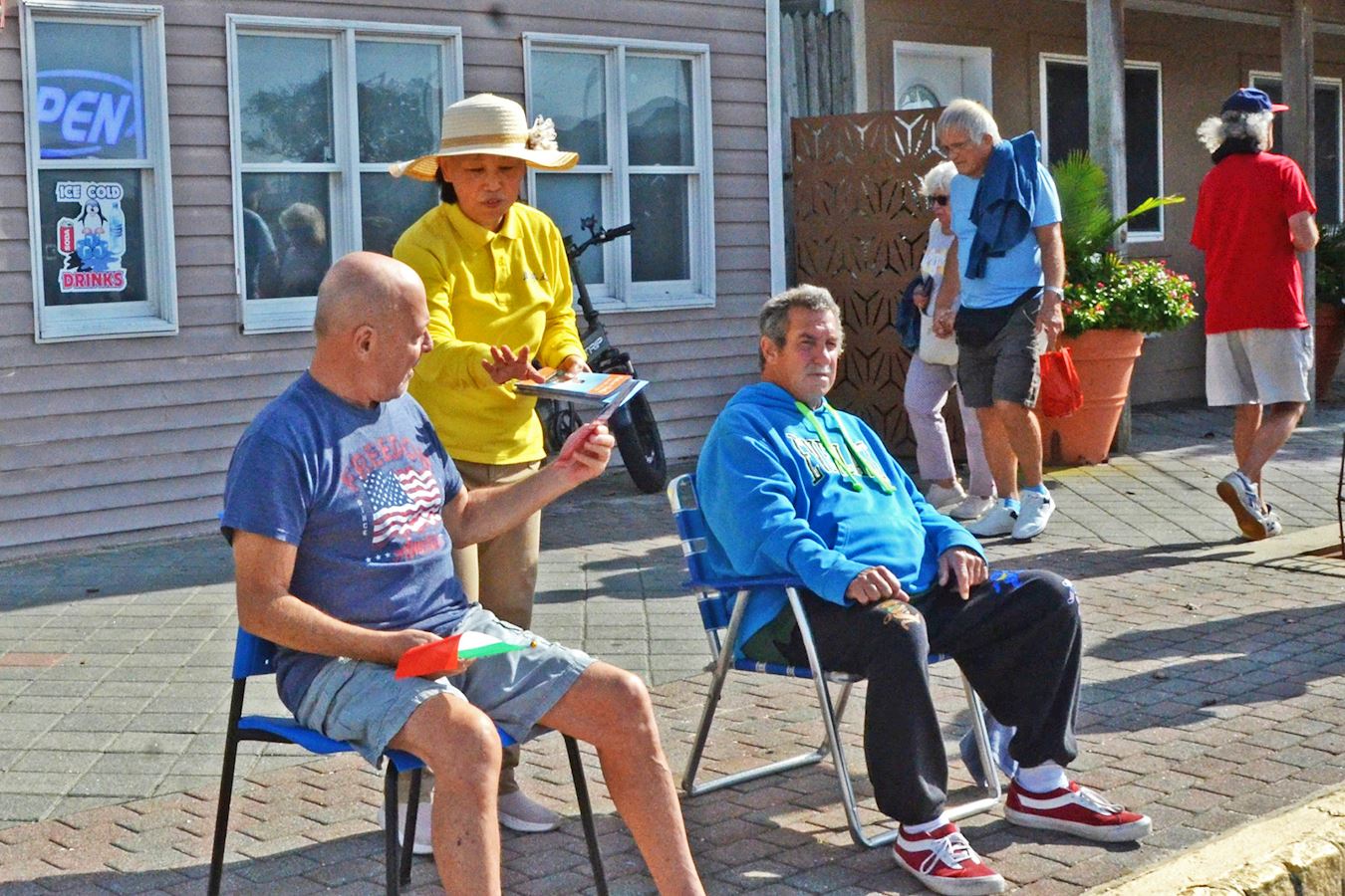 ![]() 图5~7:二零二五年十月十九日,在第三十四届海洋县哥伦布日游行期间,法轮功学员向民众发放法轮功真相资料。 |