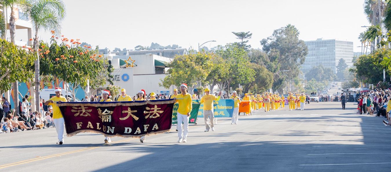 今年是第69届拉荷亚(La Jolla)圣诞游行。拉荷亚是圣地亚哥最富文化艺术气息、最富裕的社区之一。圣地亚哥法轮功学员在十多年前曾多次参加这个游行,并多次获奖。有一年游行时突然下起了小雨,不少队伍都离开了,法轮功的队伍坚持到最后,给主办方留下深刻印象,他们表达了对法轮功学员的感谢。睽违将近二十年,活动主办方在给法轮功学员的回信中热情地说:“真高兴你们又回来了。我们想念你们!”