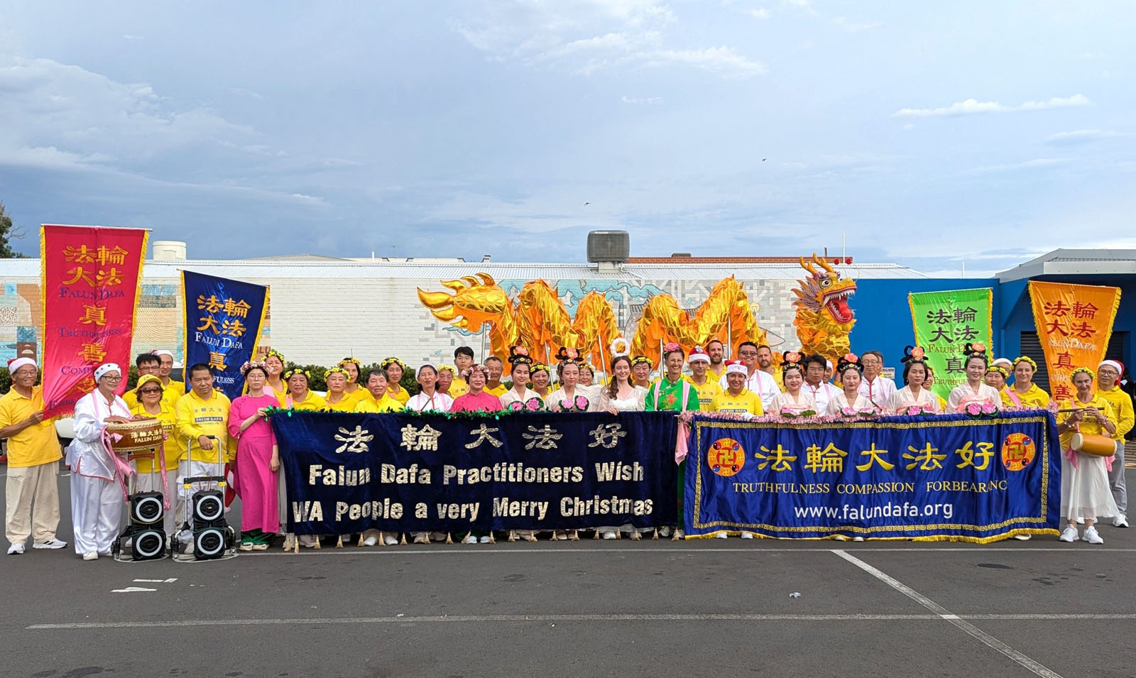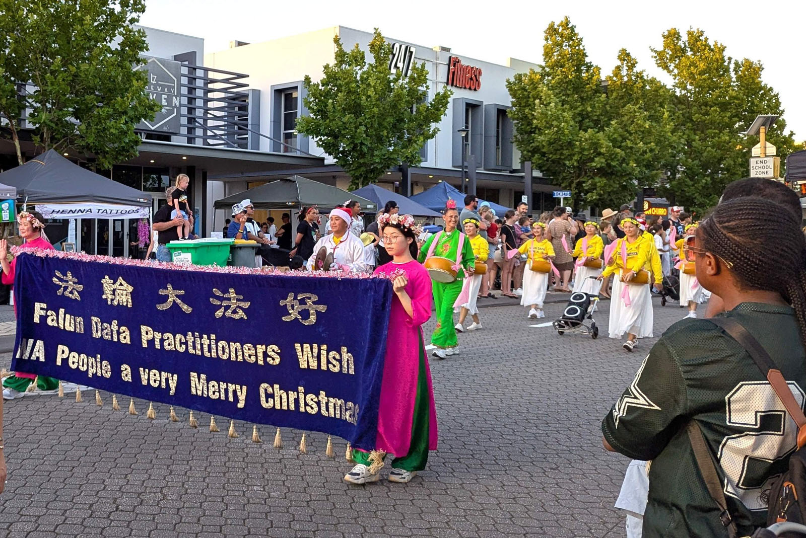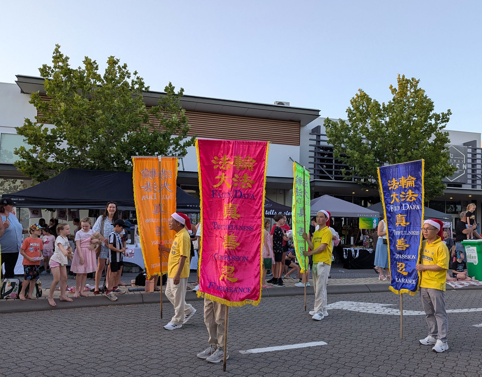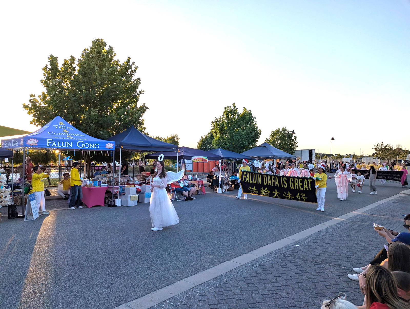 十二月十三日,西澳法轮功学员在珀斯市艾伦布鲁克举行的圣诞庆祝活动中设立了展位,并参加了傍晚的圣诞游行,与当地居民共庆圣诞节。
