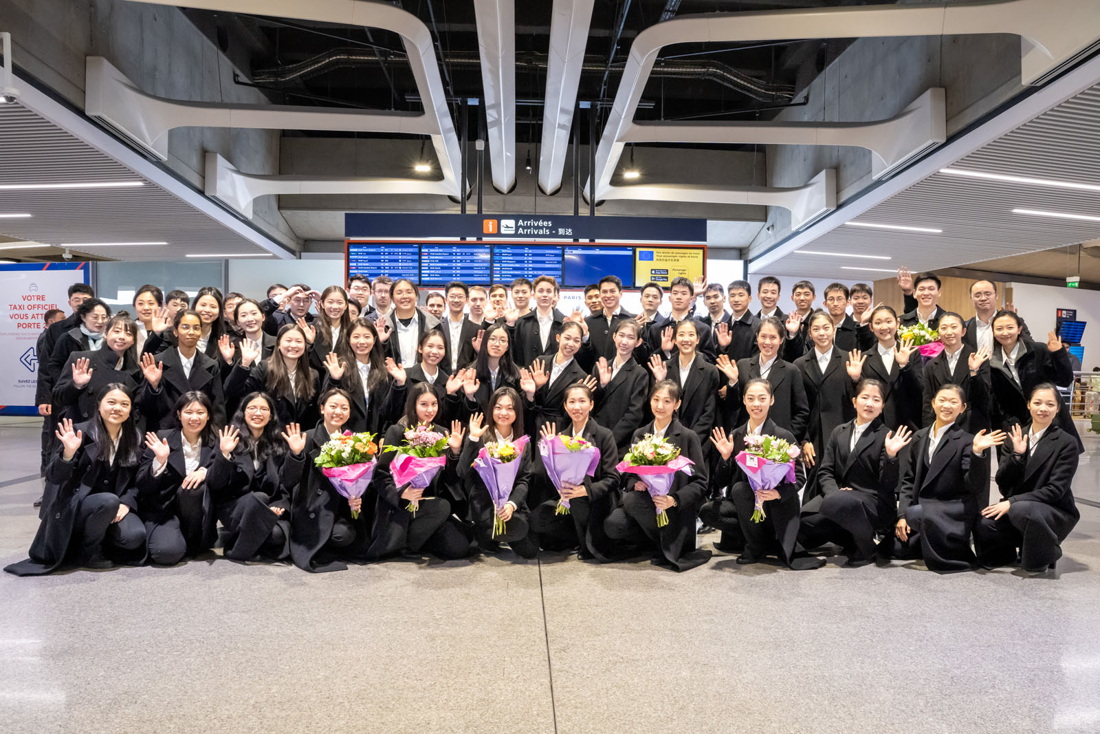 图2:二零二五年十二月十六日,美国神韵国际艺术团抵达巴黎戴高乐机场,即将开启神韵二零二六演季全球巡回演出。(大纪元)