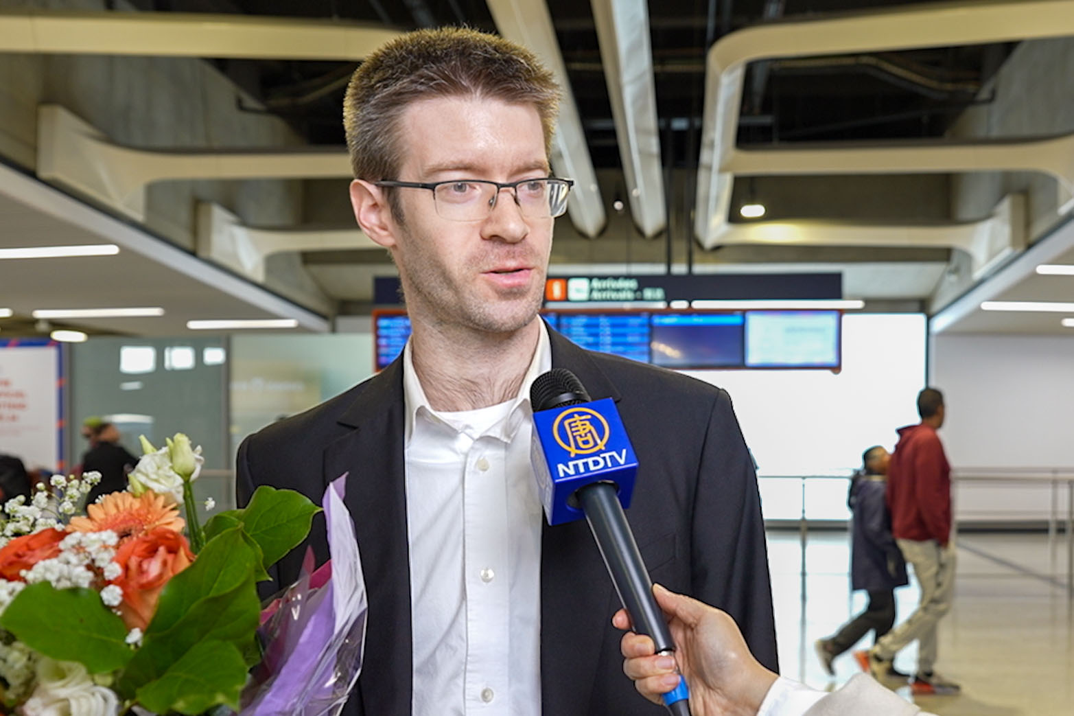 图4:二零二五年十二月十六日,神韵领舞演员任乾勇接受采访。(大纪元)