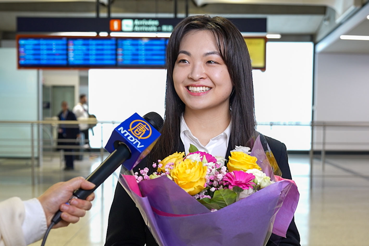 二零二五年十二月十六日,当神韵国际艺术团抵达法国巴黎戴高乐机场时,法国的神韵粉丝献上鲜花与热烈的掌声。