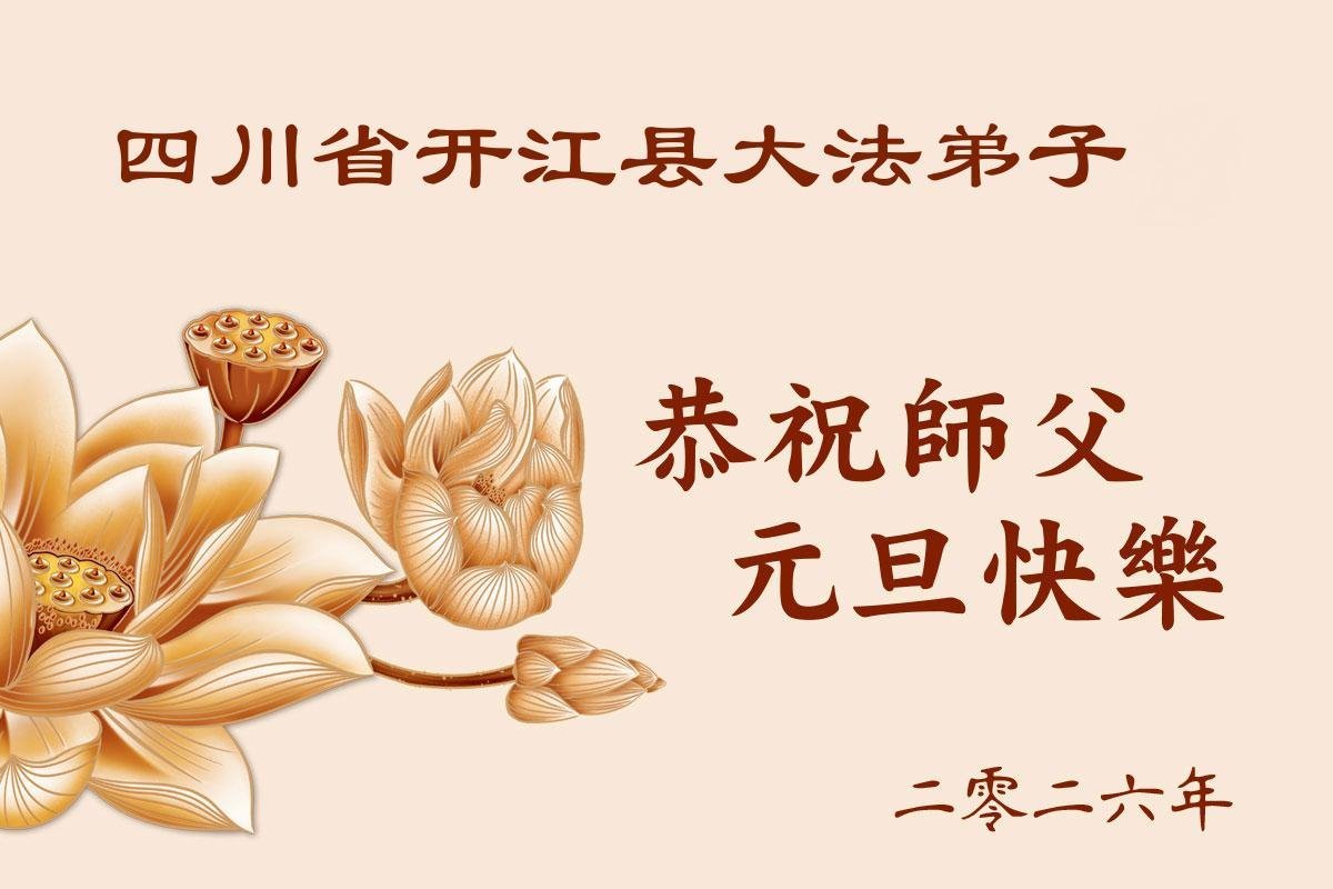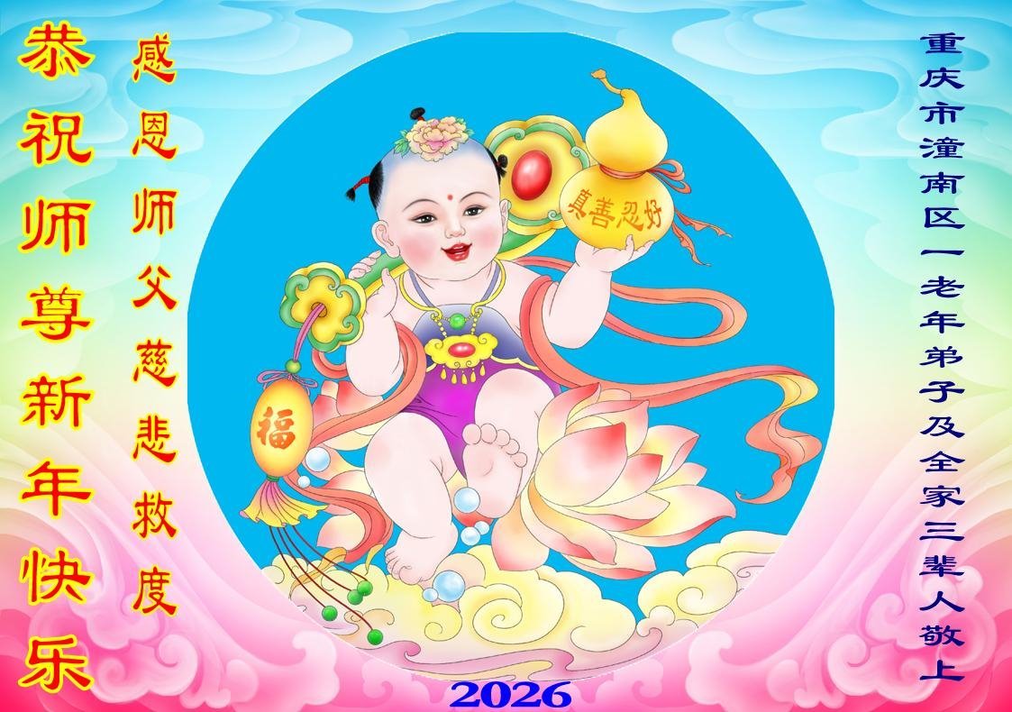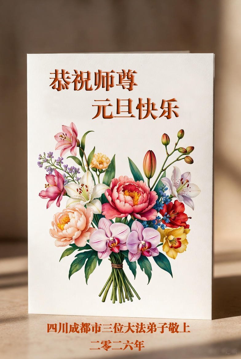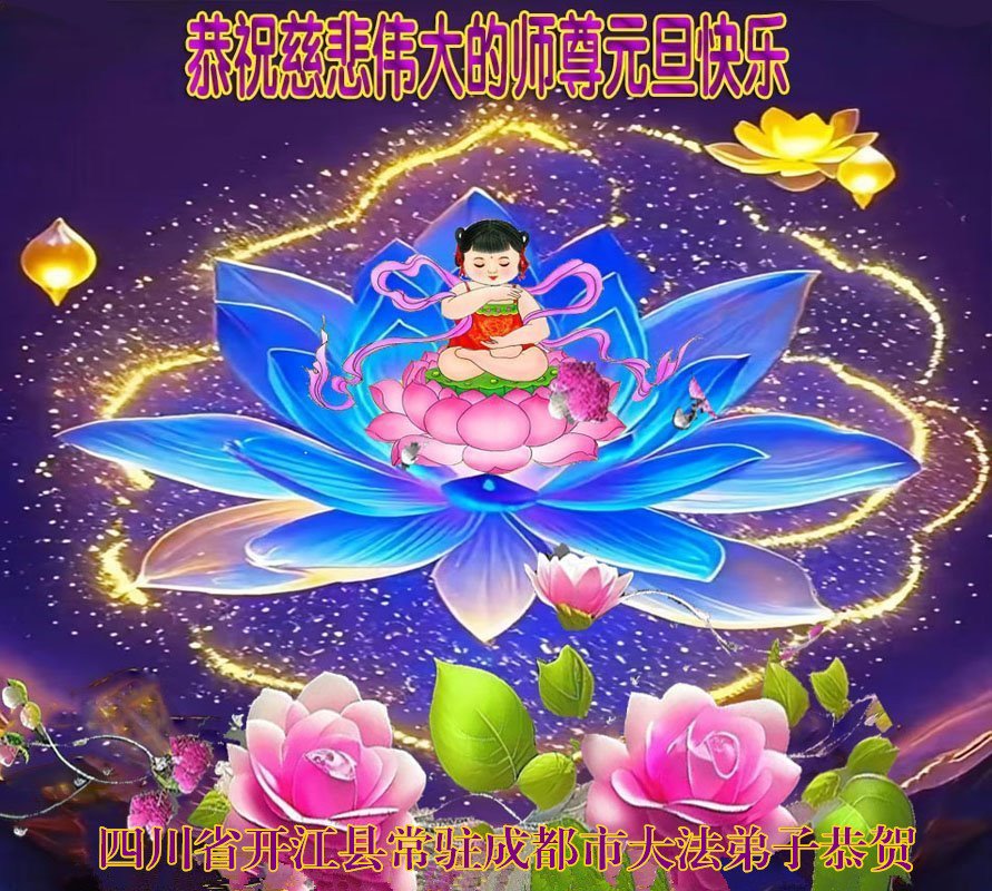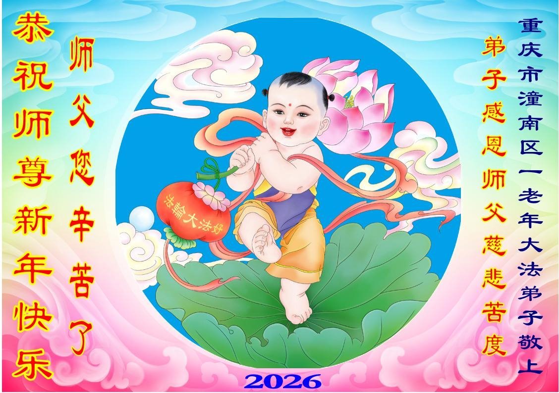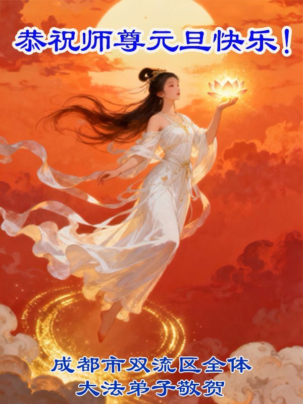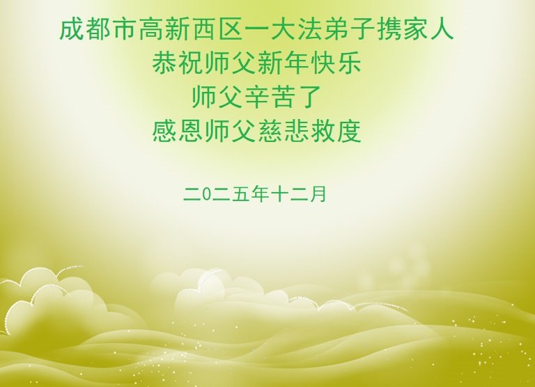 尊敬的师父好,师父您辛苦了!成都工商界大法弟子向师父问好,恭祝师父2026年元旦快乐!每学法深入一点,就更加能体会到师父为救众生的巨大付出。世间一切皆为法而来,一切幻相皆为人心而设。愿我们不为人心所动,走好最后的路,不负师父期望。弟子叩谢师父!
