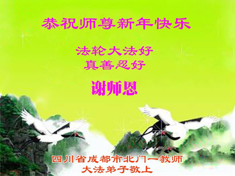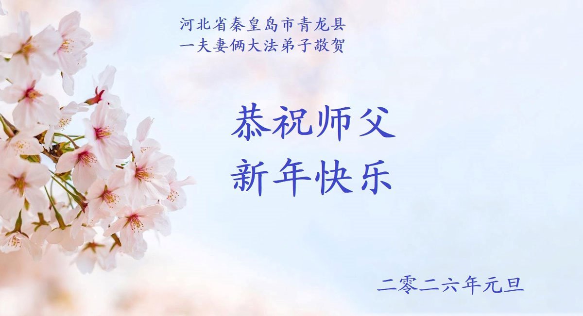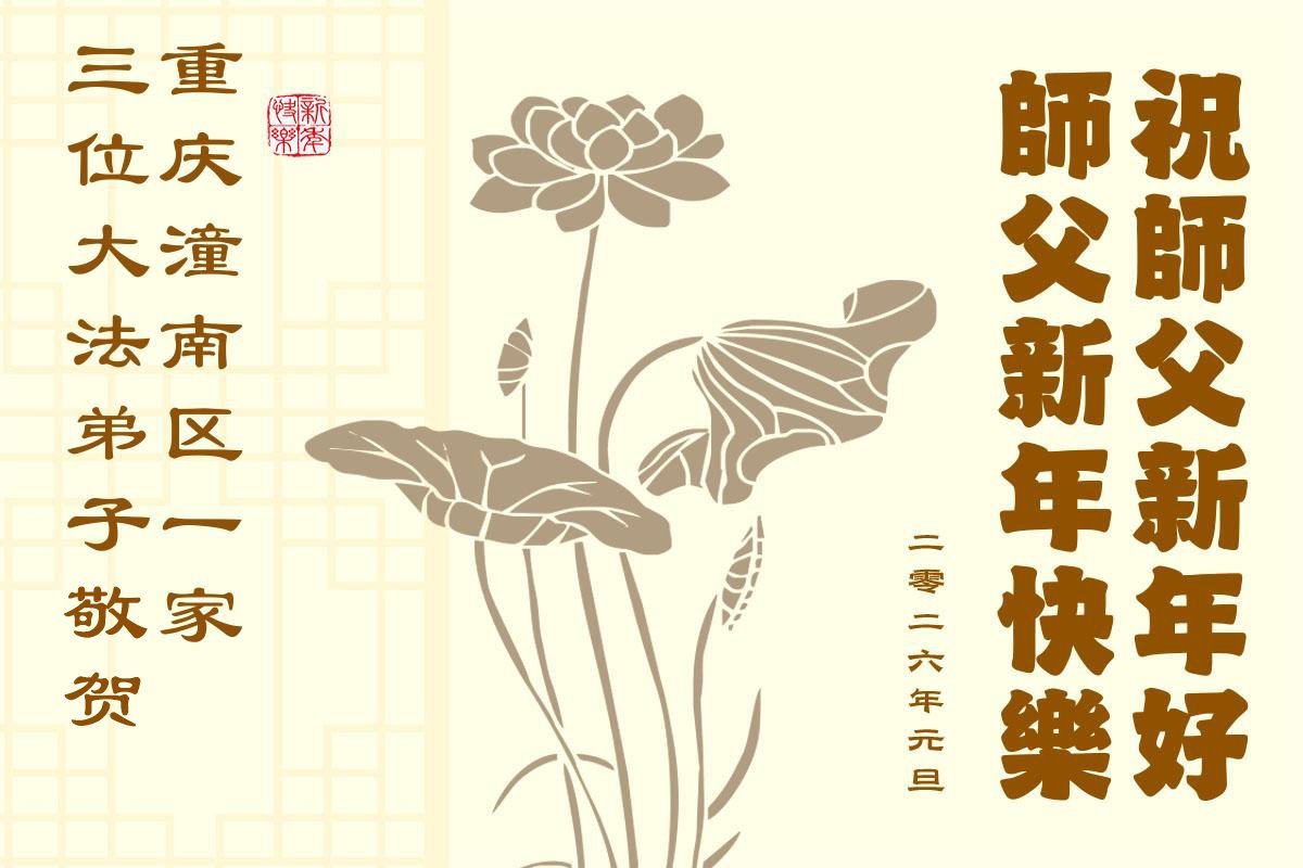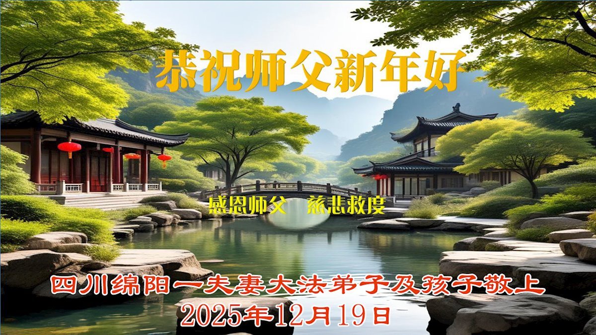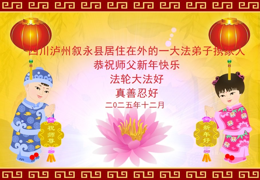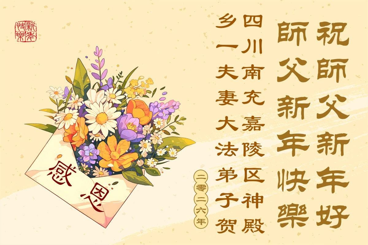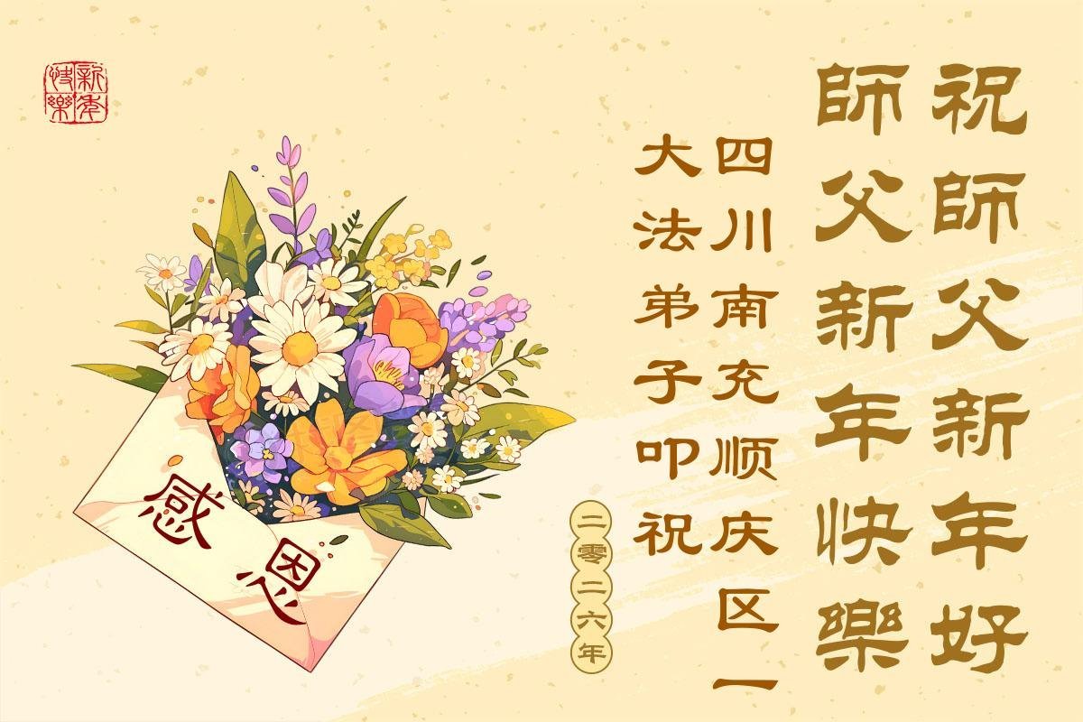 尊敬的师父好,师父您辛苦了!成都工商界大法弟子向师父问好,恭祝师父2026年元旦快乐!每学法深入一点,就更加能体会到师父为救众生的巨大付出。世间一切皆为法而来,一切幻相皆为人心而设。愿我们不为人心所动,走好最后的路,不负师父期望。弟子叩谢师父!