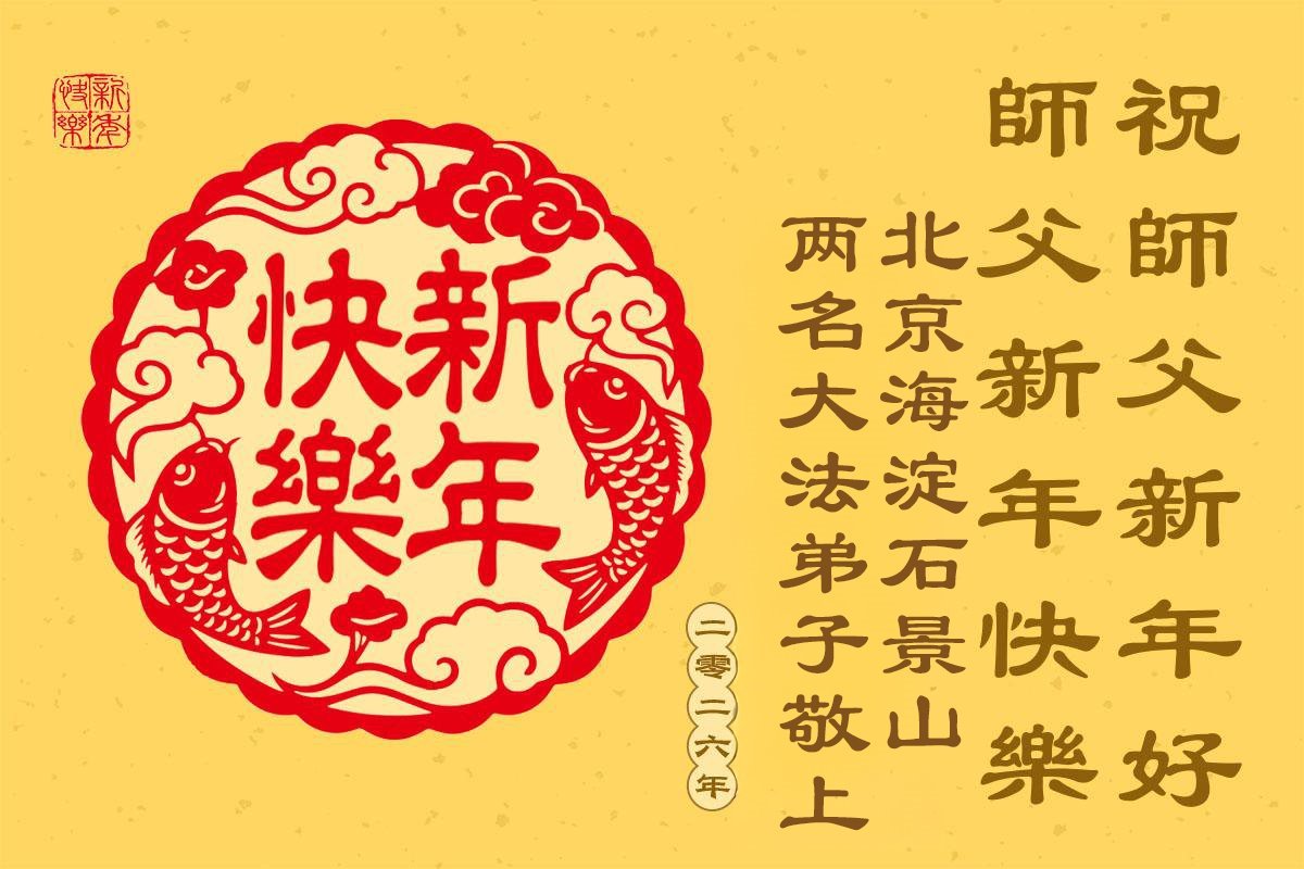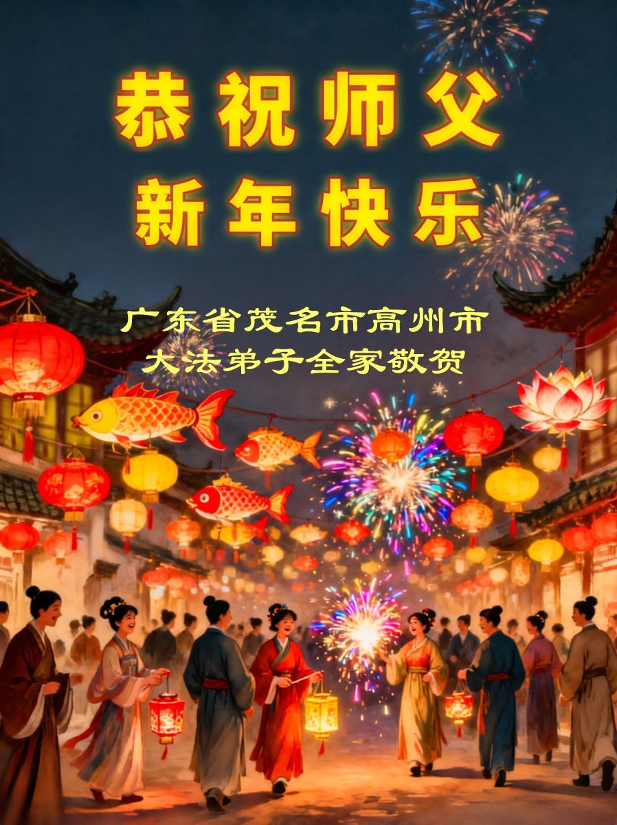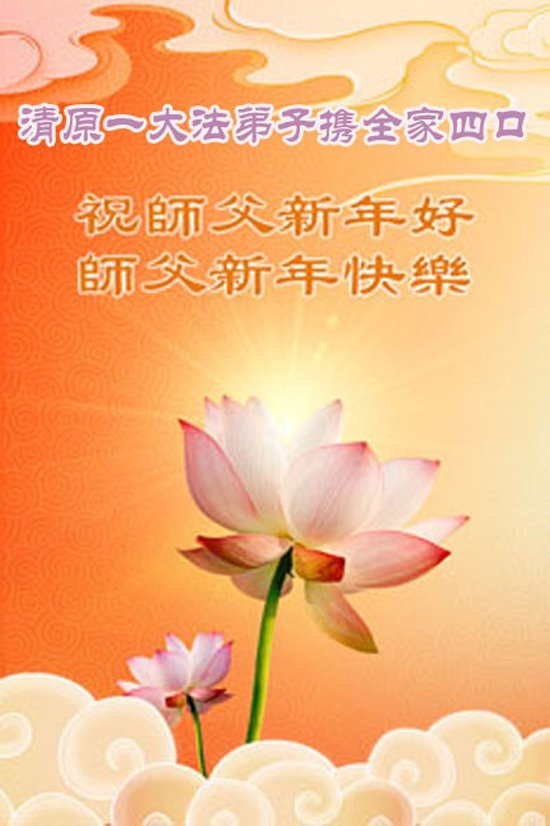 师尊您几十年传法至今,始终肩负着宇宙正法的艰难,承载着各界众生的困苦、压力和巨大的业力,在这末后救人的重大时刻,您为人类操尽了心!我们想念着您!我们就做好自己应该做的三件事,请师尊放心!在此恭祝师尊新年快乐!