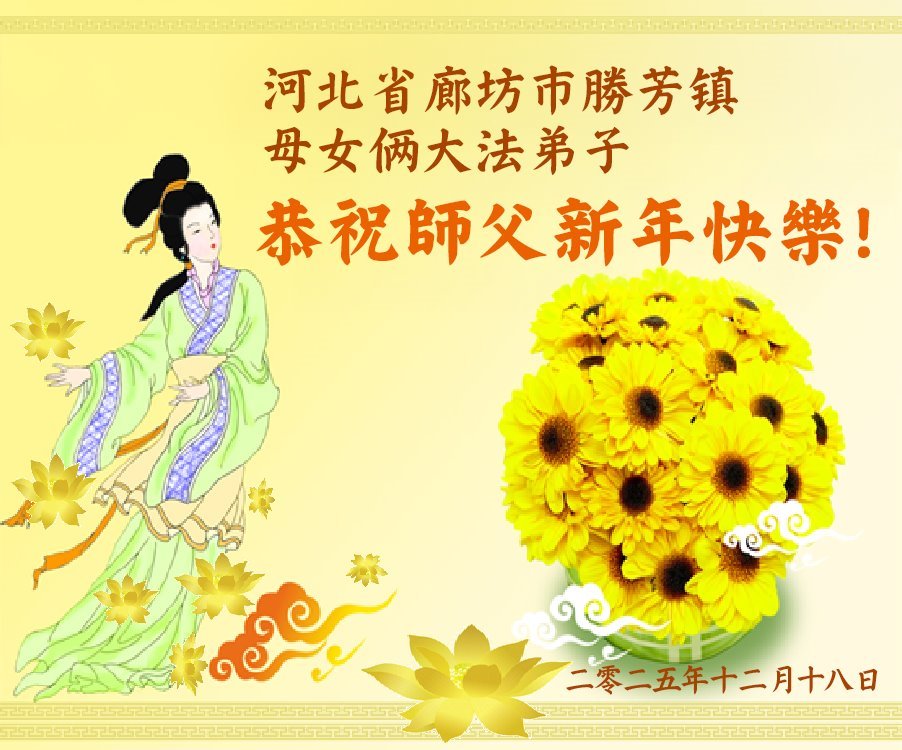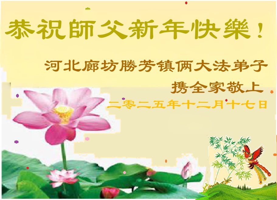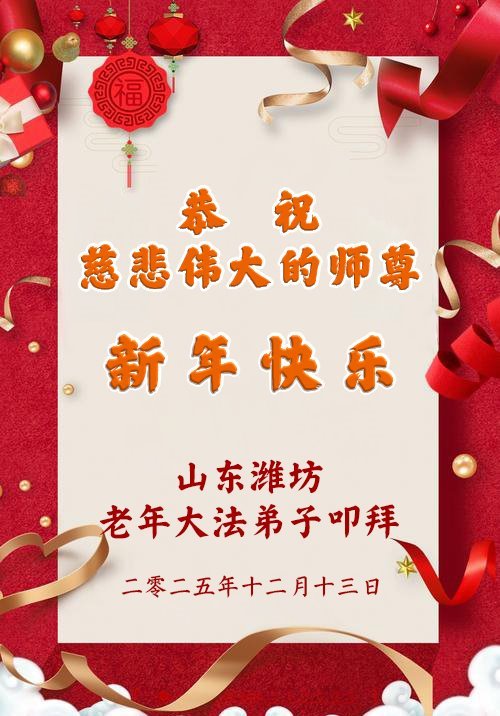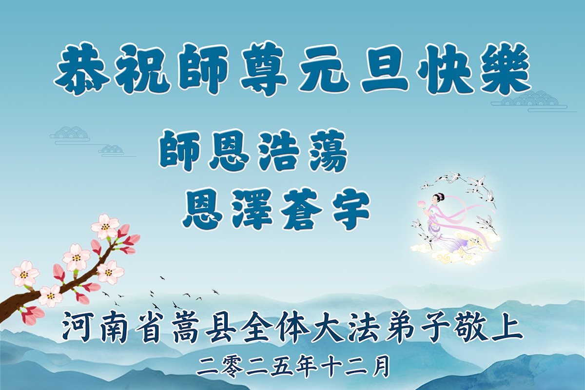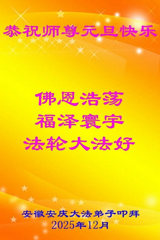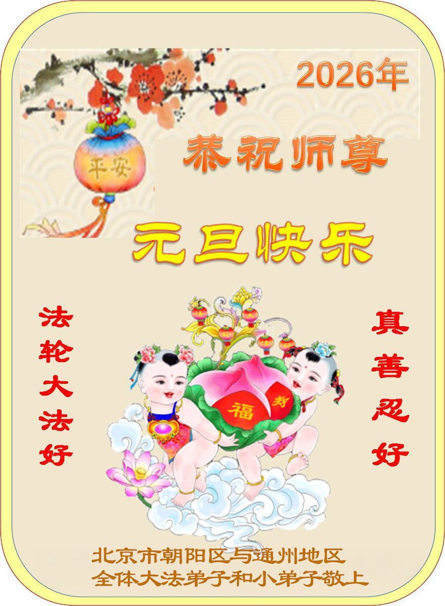 【明慧网二零二五年十二月二十九日】(明慧网通讯员综合报道)二零二六年新年的钟声即将敲响,在中国大陆从事各行业工作的大法弟子们敬祝慈悲伟大的师尊新年好!在师尊的看护下,大法弟子们又走过了在工作和生活中随时随处讲真相、证实法的一年。在辉煌的新纪元正在开启的历史时刻,弟子们会珍惜每一天、每一时刻,谨遵师命,修好自己,多救众生!