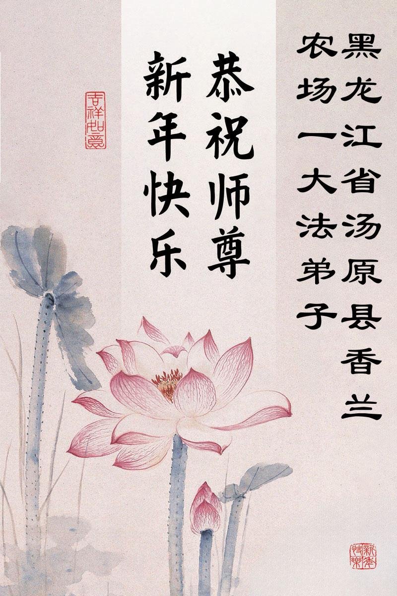 下面是部份来自建材、文艺界、教育、黄金、水利、桥梁、卫生、油田、石化、丝绸、维修、燃气、船舶、音乐界、金融、铁路、高校、外贸、商业、交通、医药、科研、银行、会计师、林业、企业(管理)、农场、农垦、机车、供销、人力资源、地勘、文教、建筑、通讯、纺织、服务、环境艺术、军工、电力、航天、电商、游乐、电子技术研究、税务、煤炭、邮政、航空、公用事业、财务、矿山、图书馆、工商界、出版、私营经营、房地产、招商、海关、自动化仪表、公安、检察院、法院、司法、行政部门、军队等60余行业大法弟子敬献李洪志师父的新年问候。