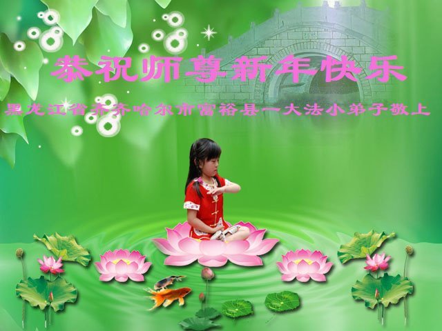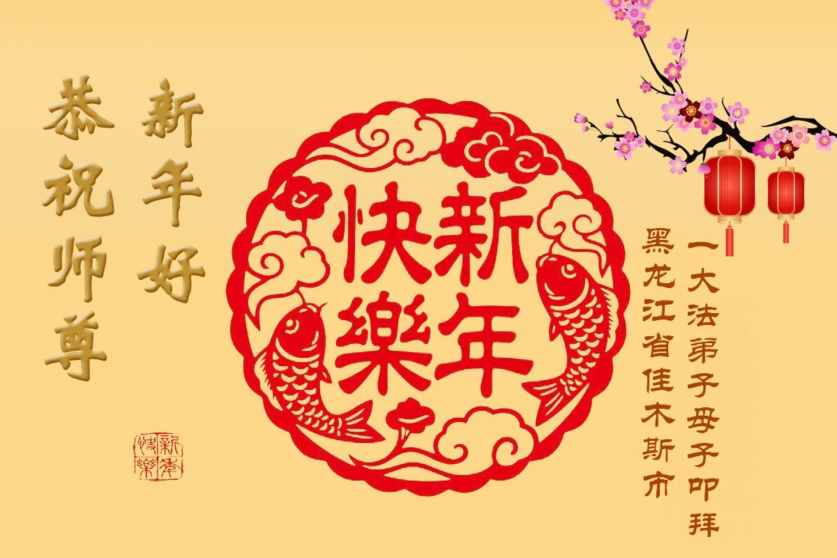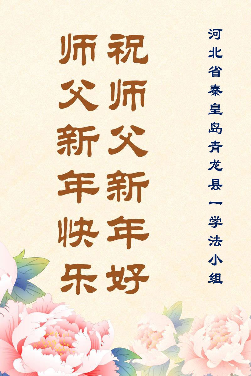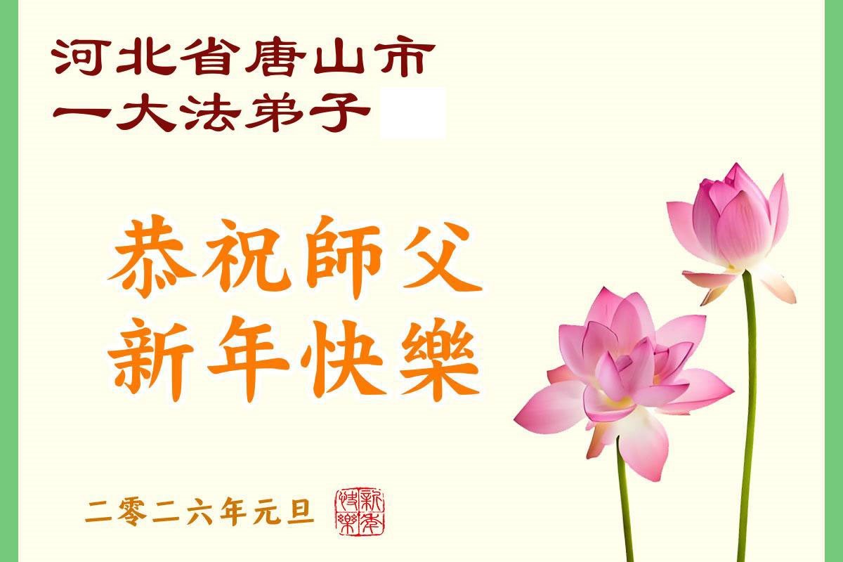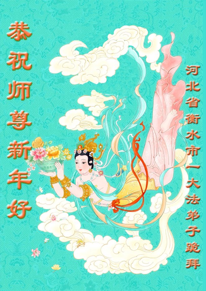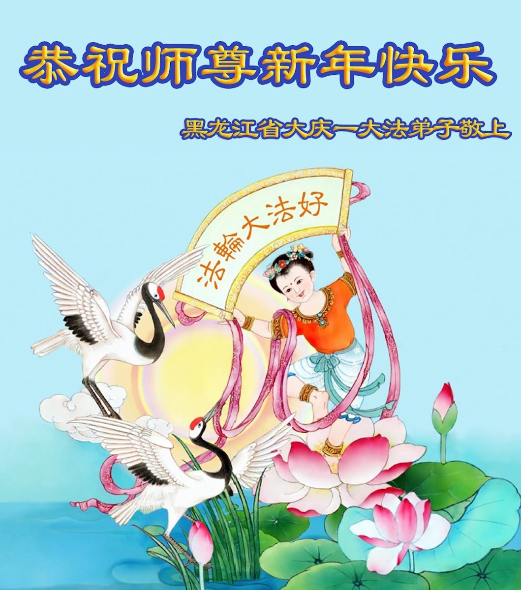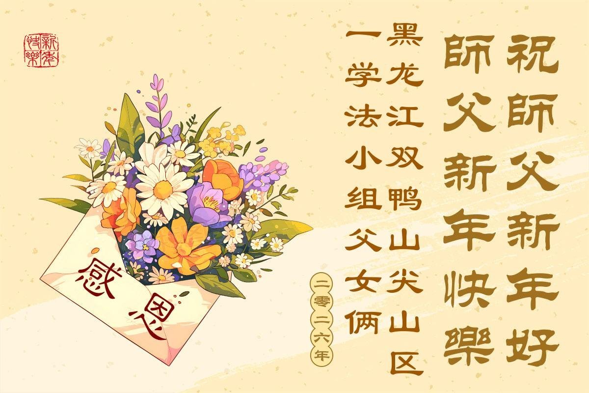 以下是部份来自中国各省、市、地区的学法炼功小组、讲真相小组、资料点大法弟子们敬致师尊的新年贺词贺卡: