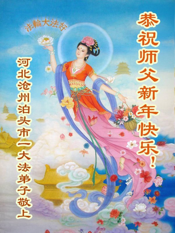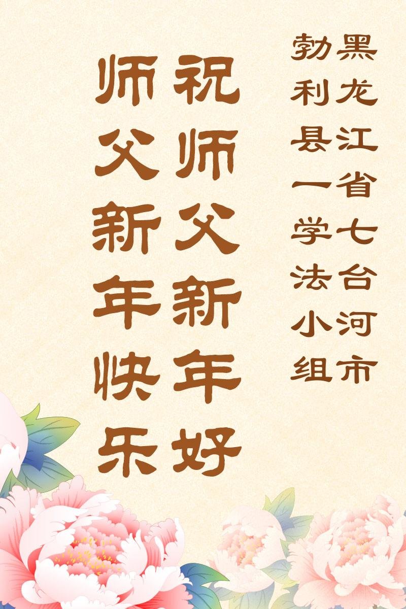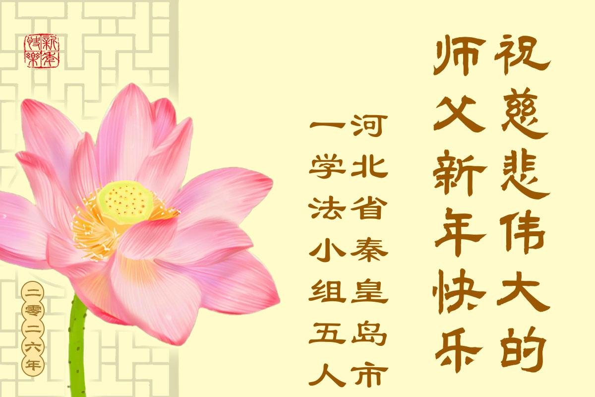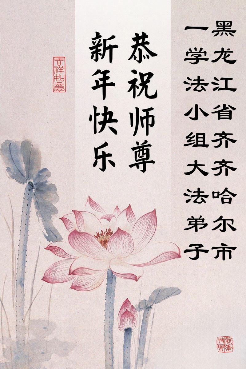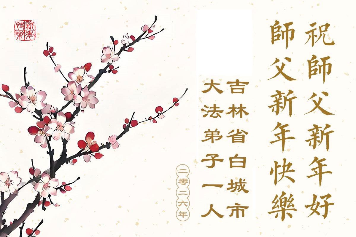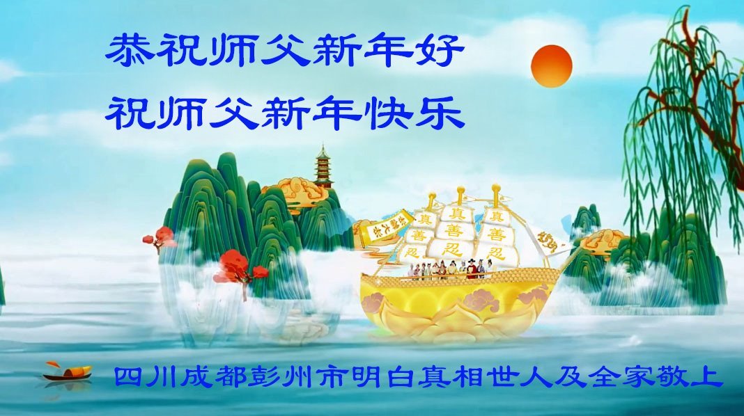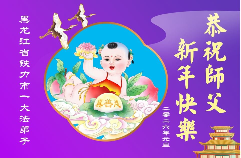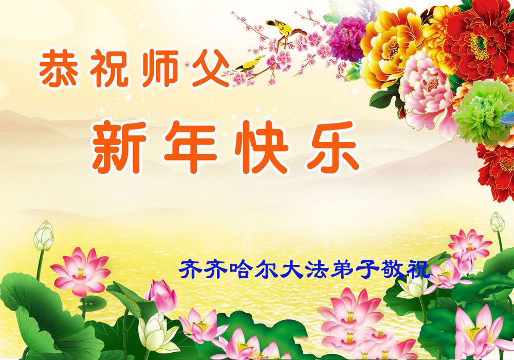 以下是部份来自中国各省、市、地区的学法炼功小组、讲真相小组、资料点大法弟子们敬致师尊的新年贺词贺卡: