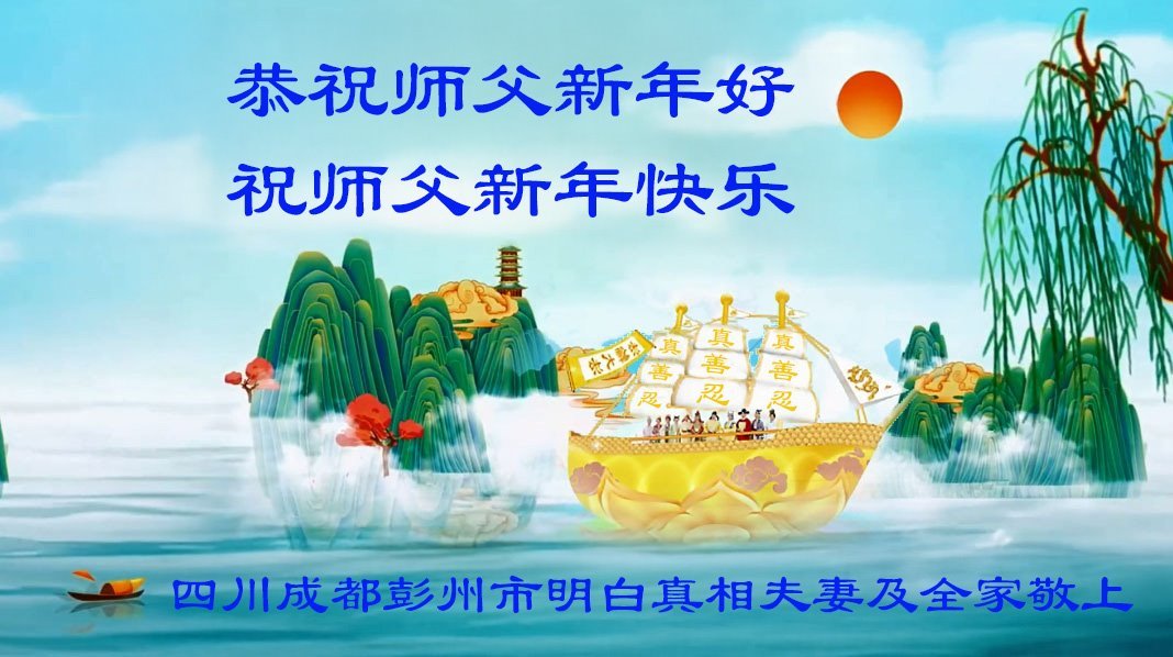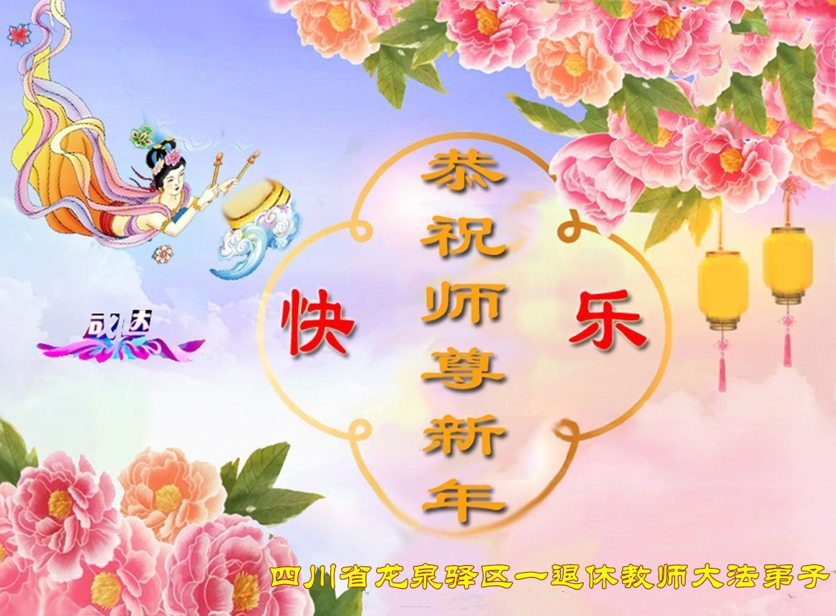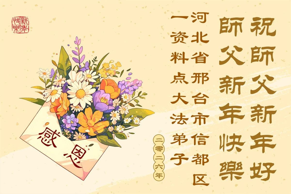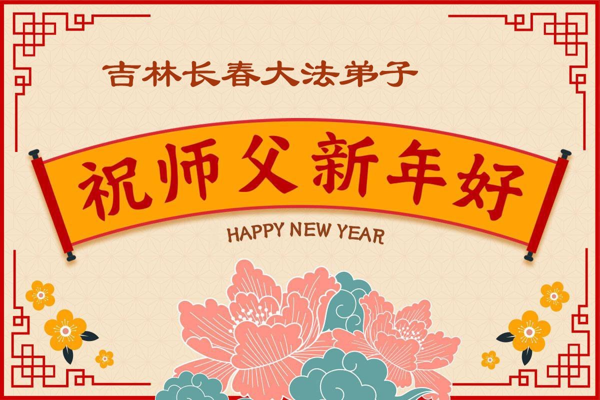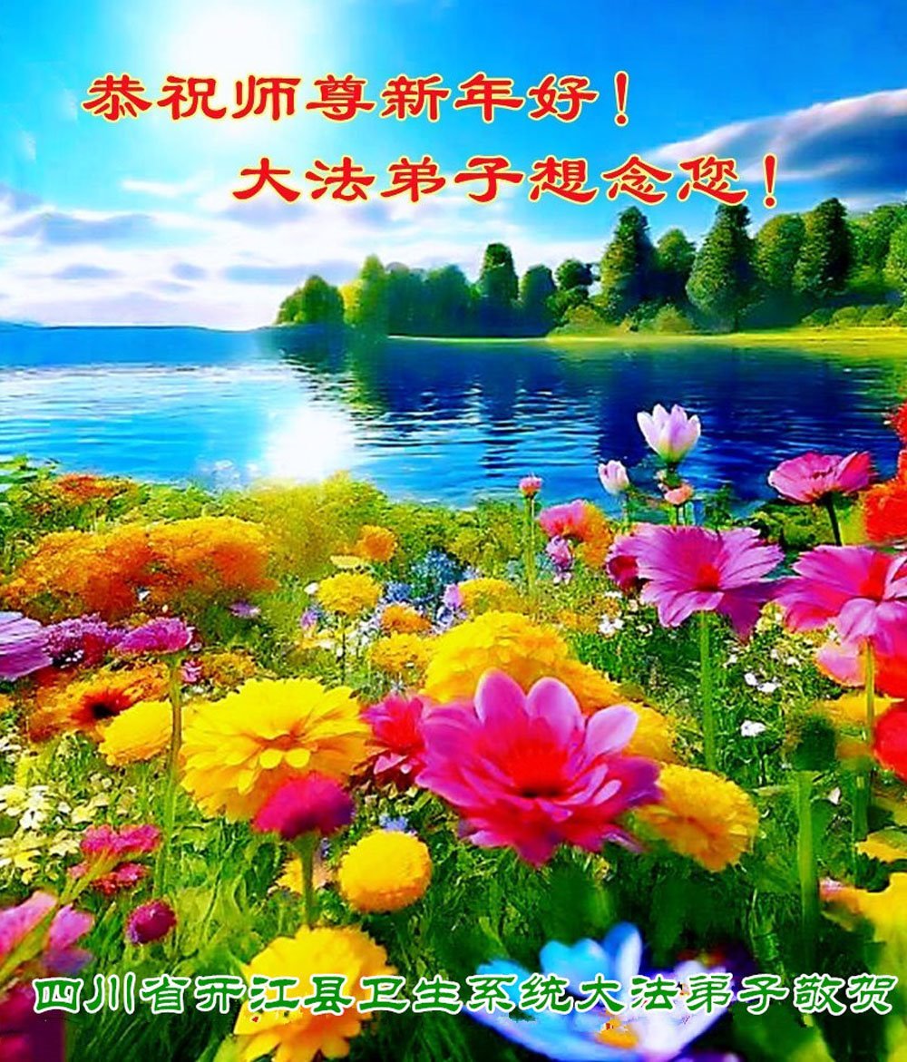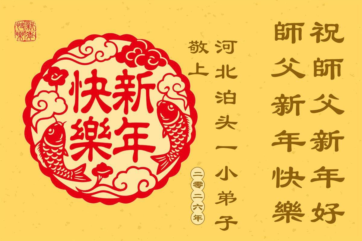 以下是部份来自中国各省、市、地区的学法炼功小组、讲真相小组、资料点大法弟子们敬致师尊的新年贺词贺卡: