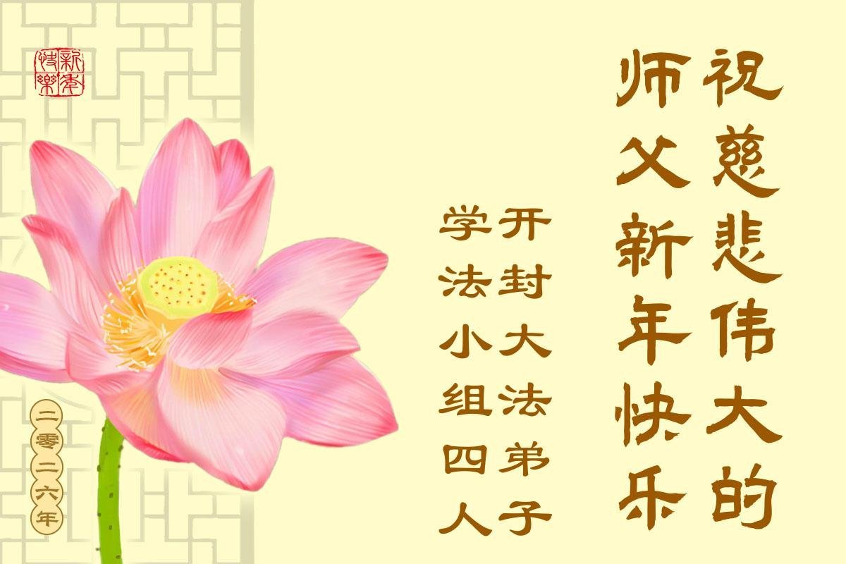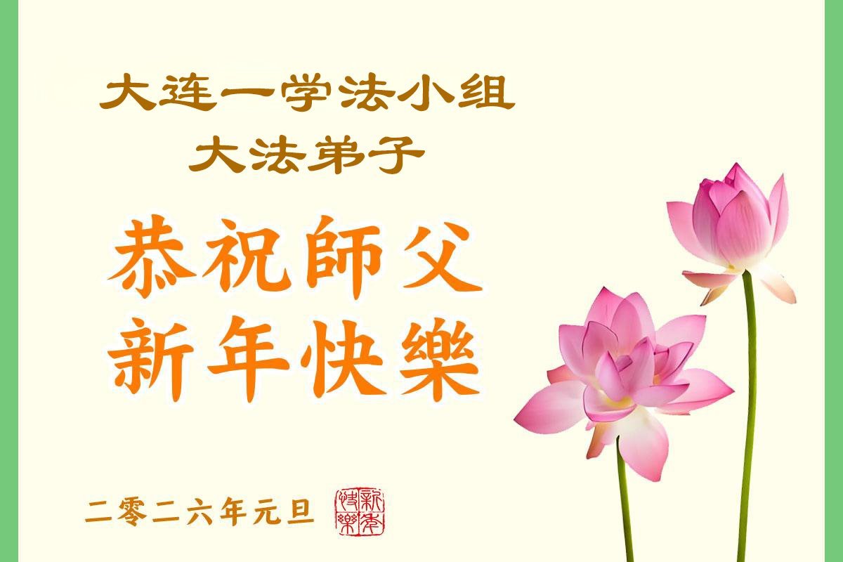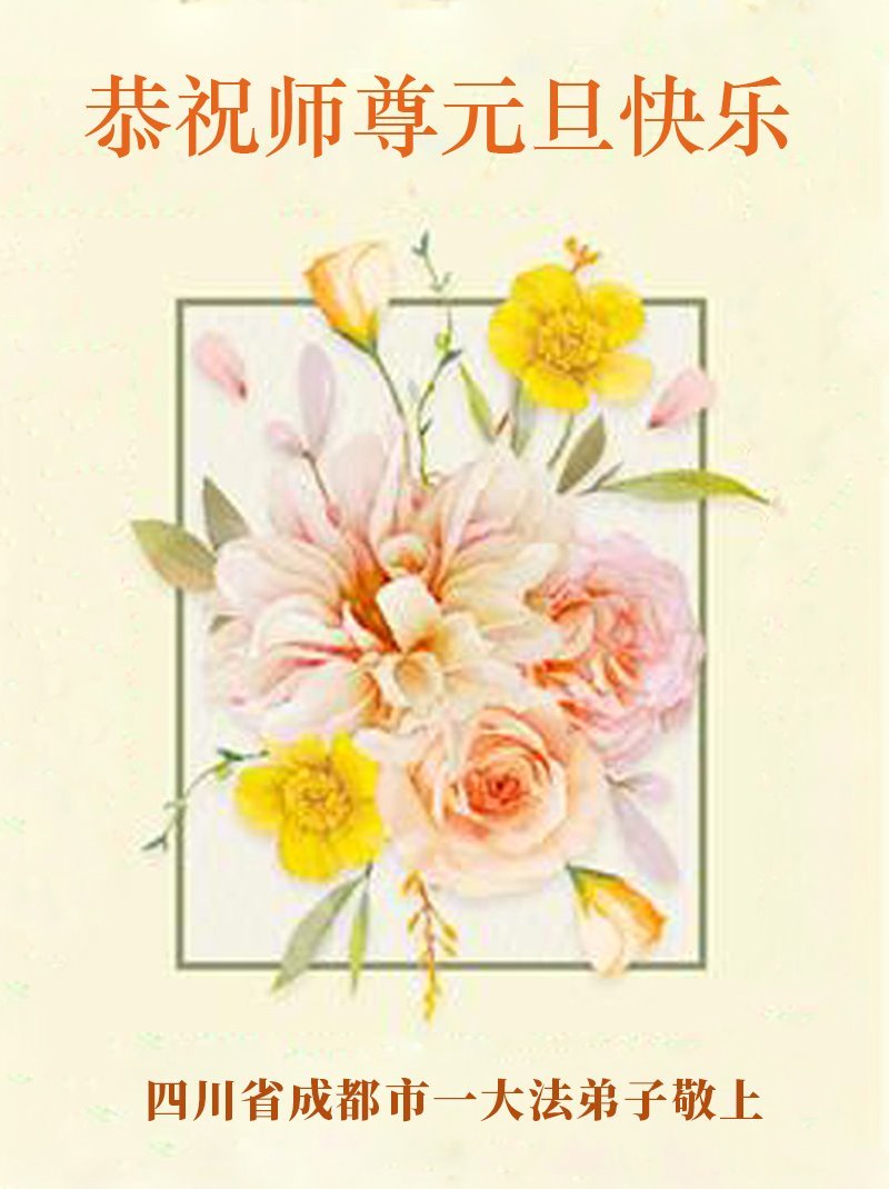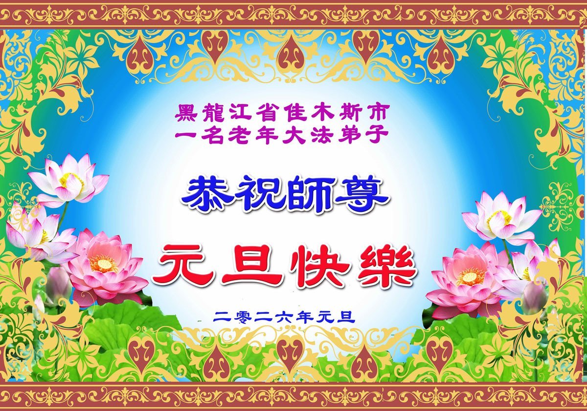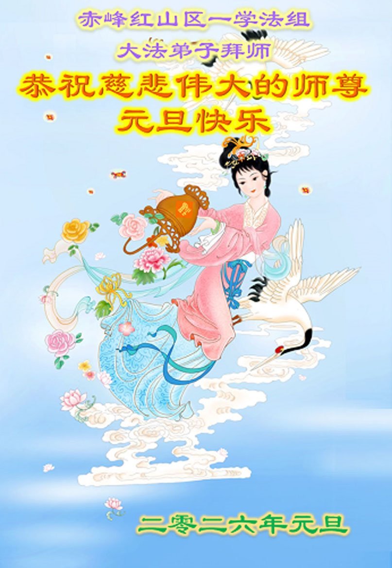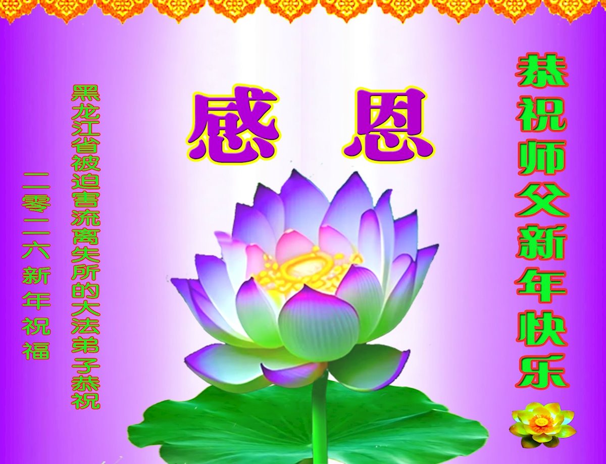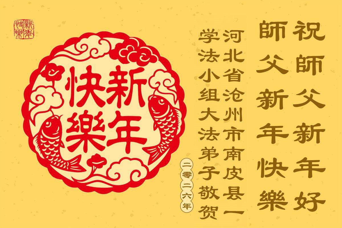 以下是部份来自中国各省、市、地区的学法炼功小组、讲真相小组、资料点大法弟子们敬致师尊的新年贺词贺卡: