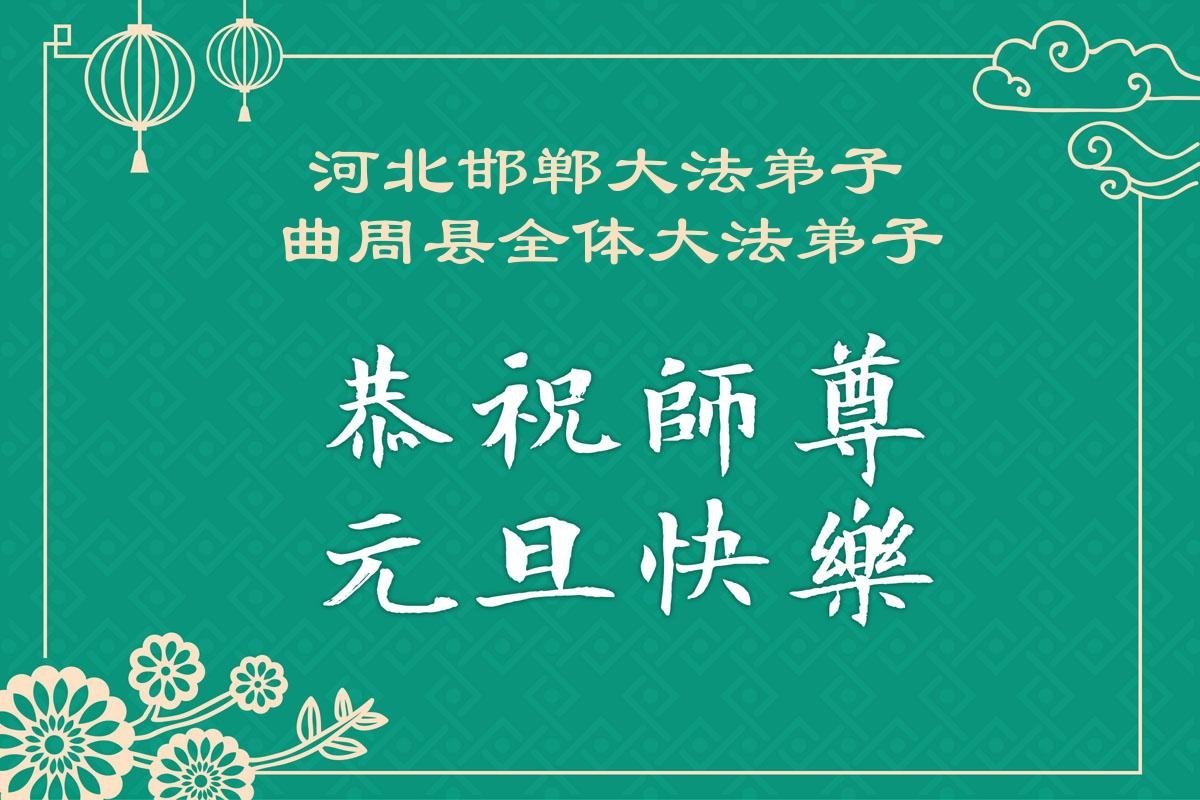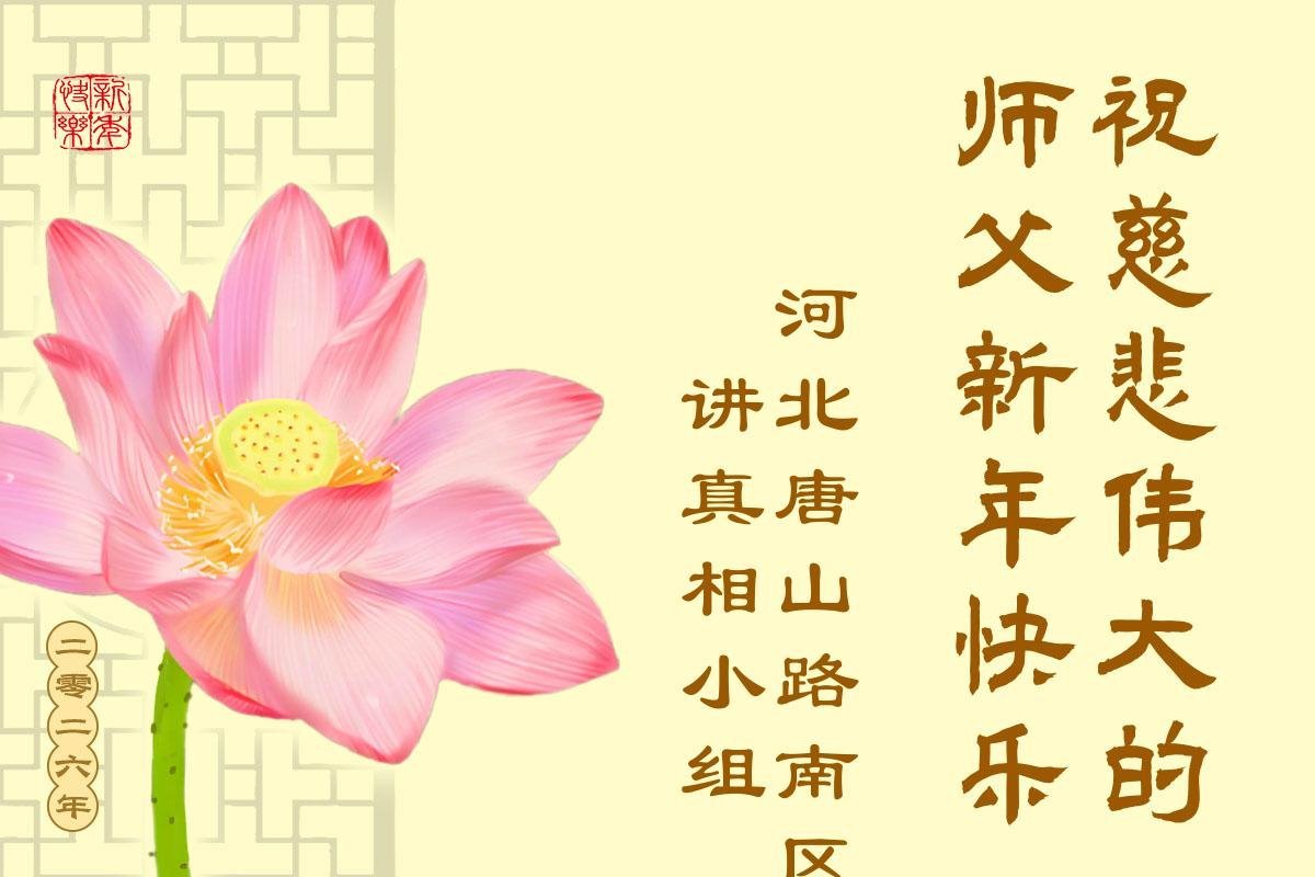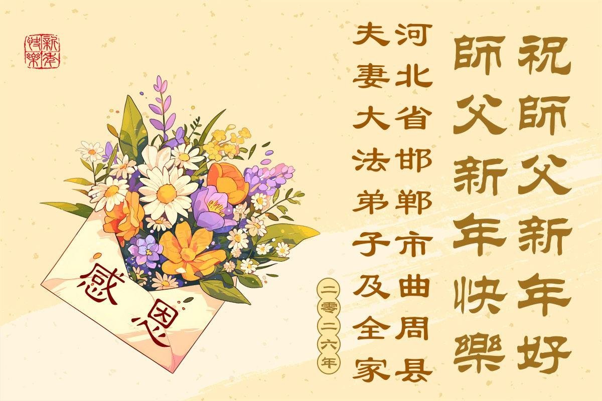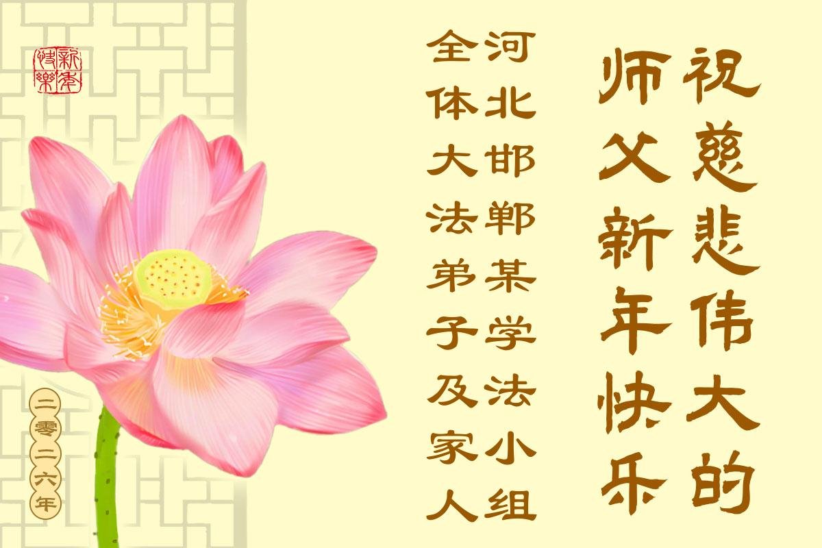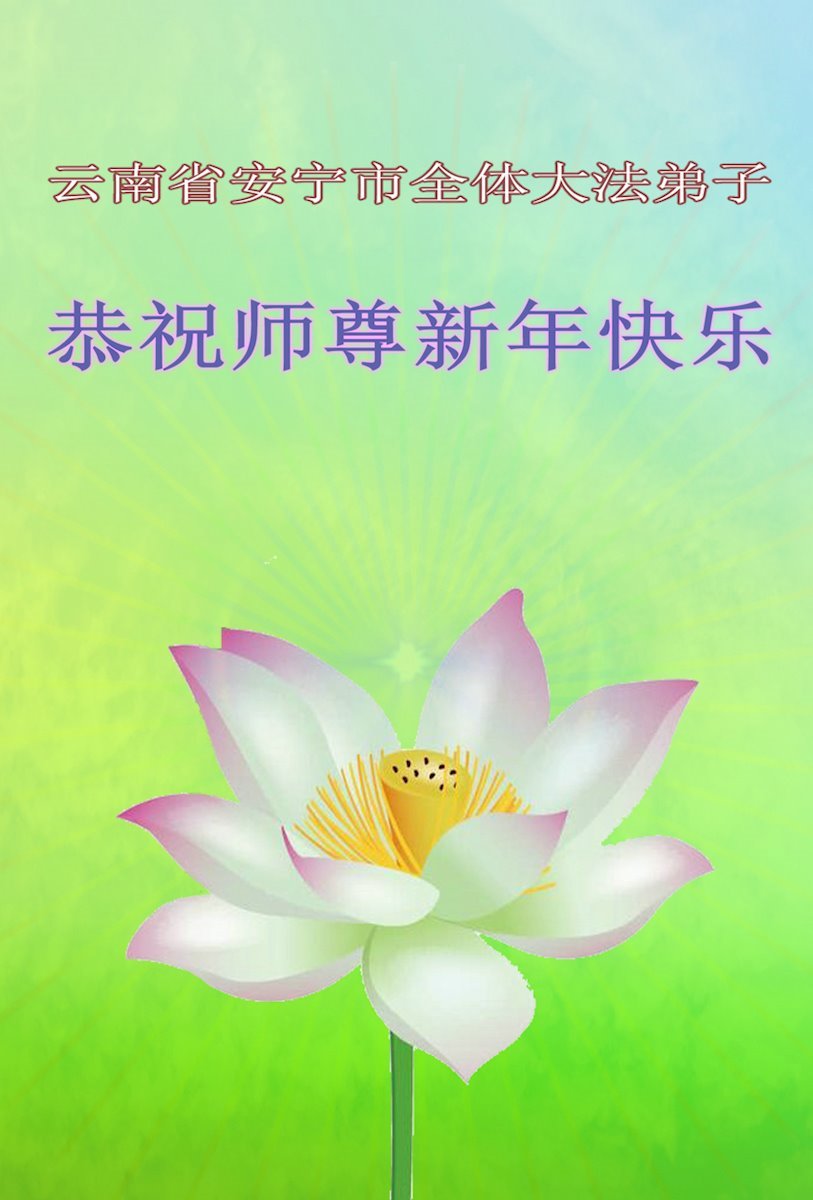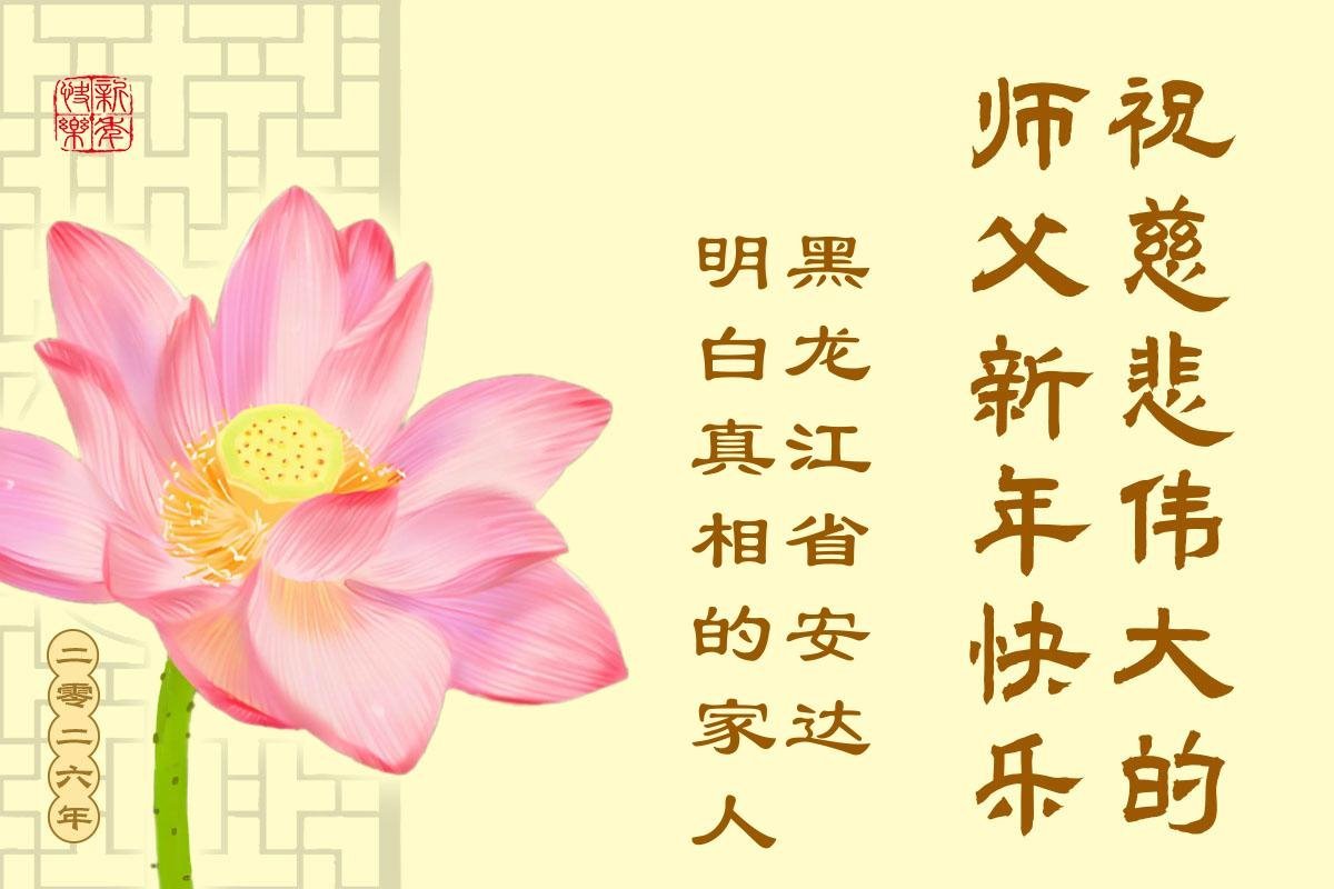 以下是部份来自中国各省、市、地区的学法炼功小组、讲真相小组、资料点大法弟子们敬致师尊的新年贺词贺卡: