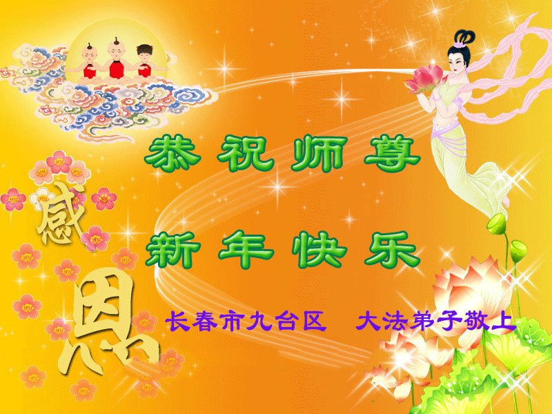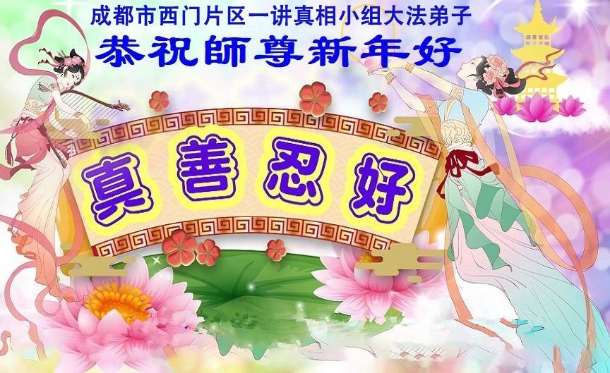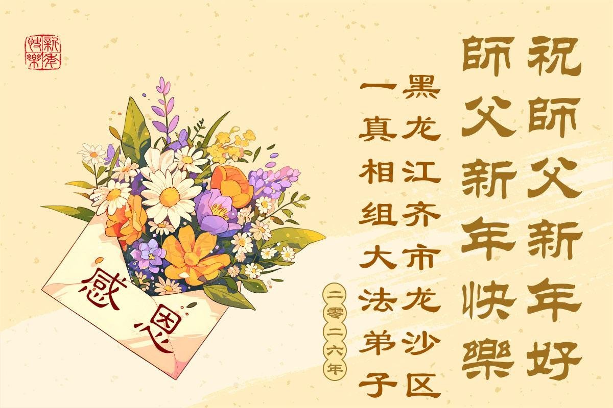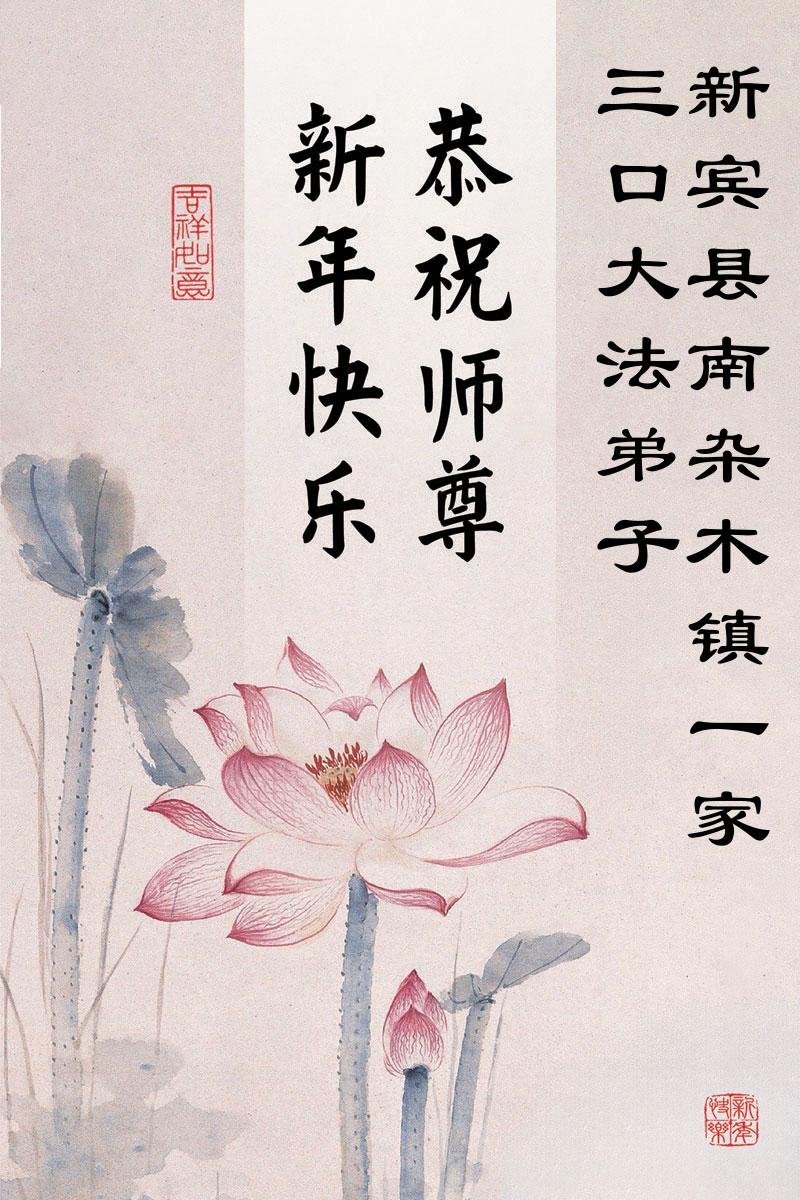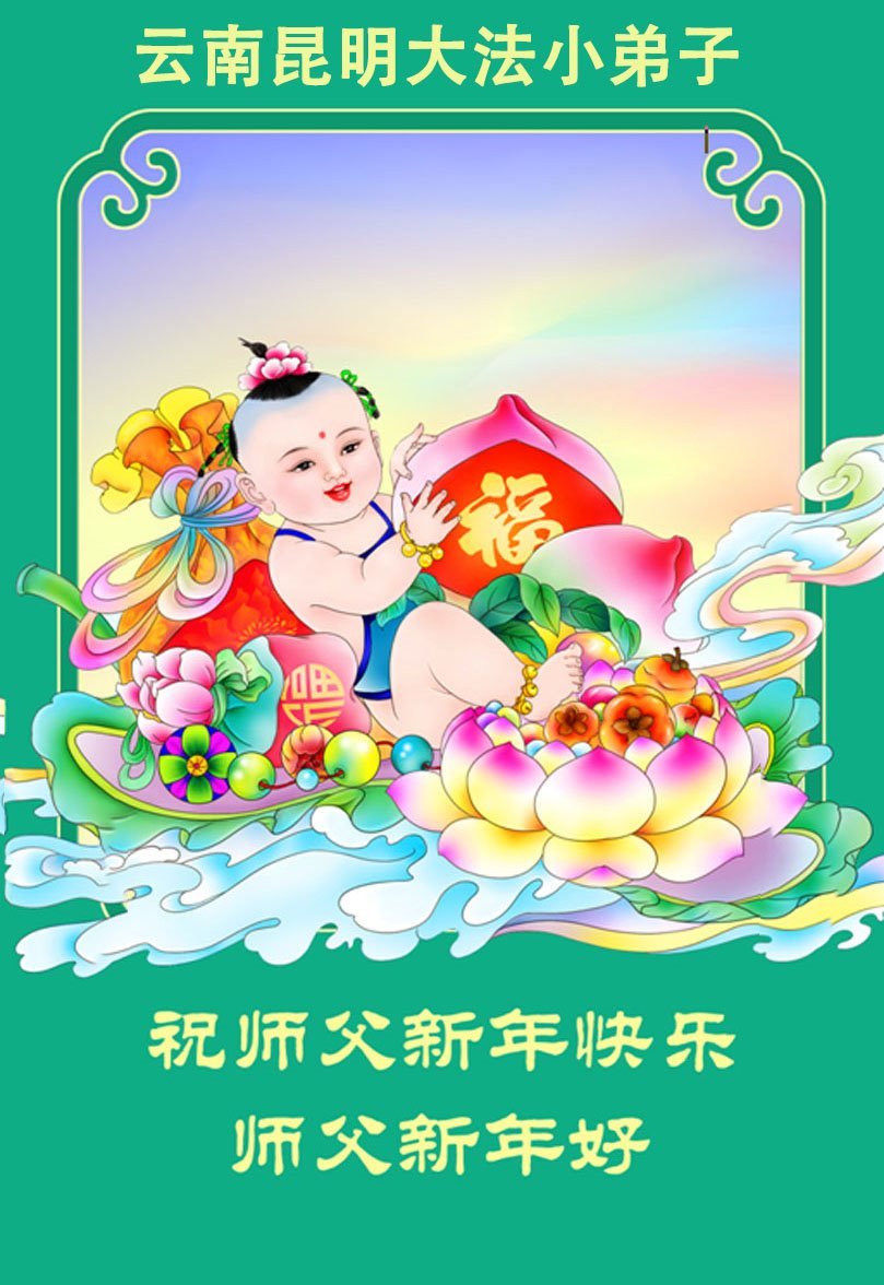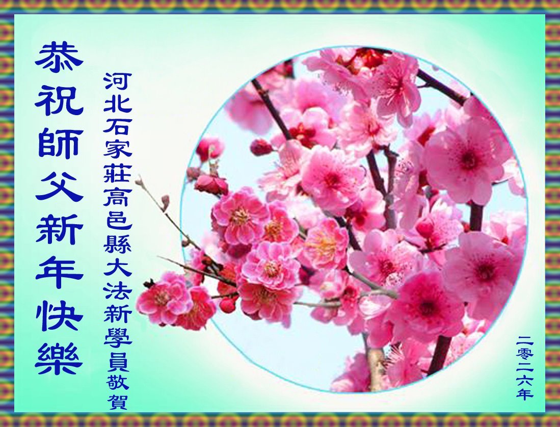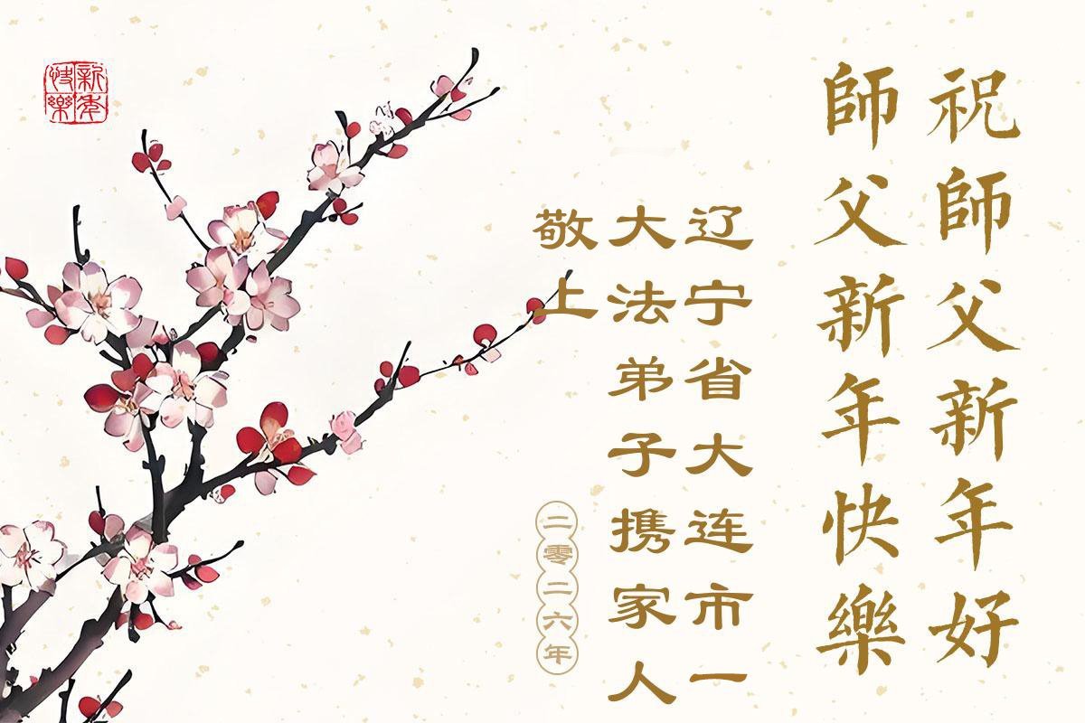以下是部份来自中国各省、市、地区的学法炼功小组、讲真相小组、资料点大法弟子们敬致师尊的新年贺词贺卡: