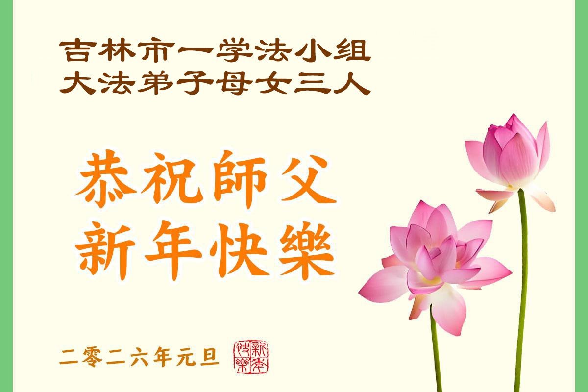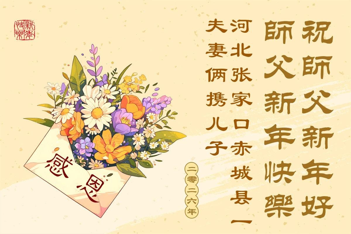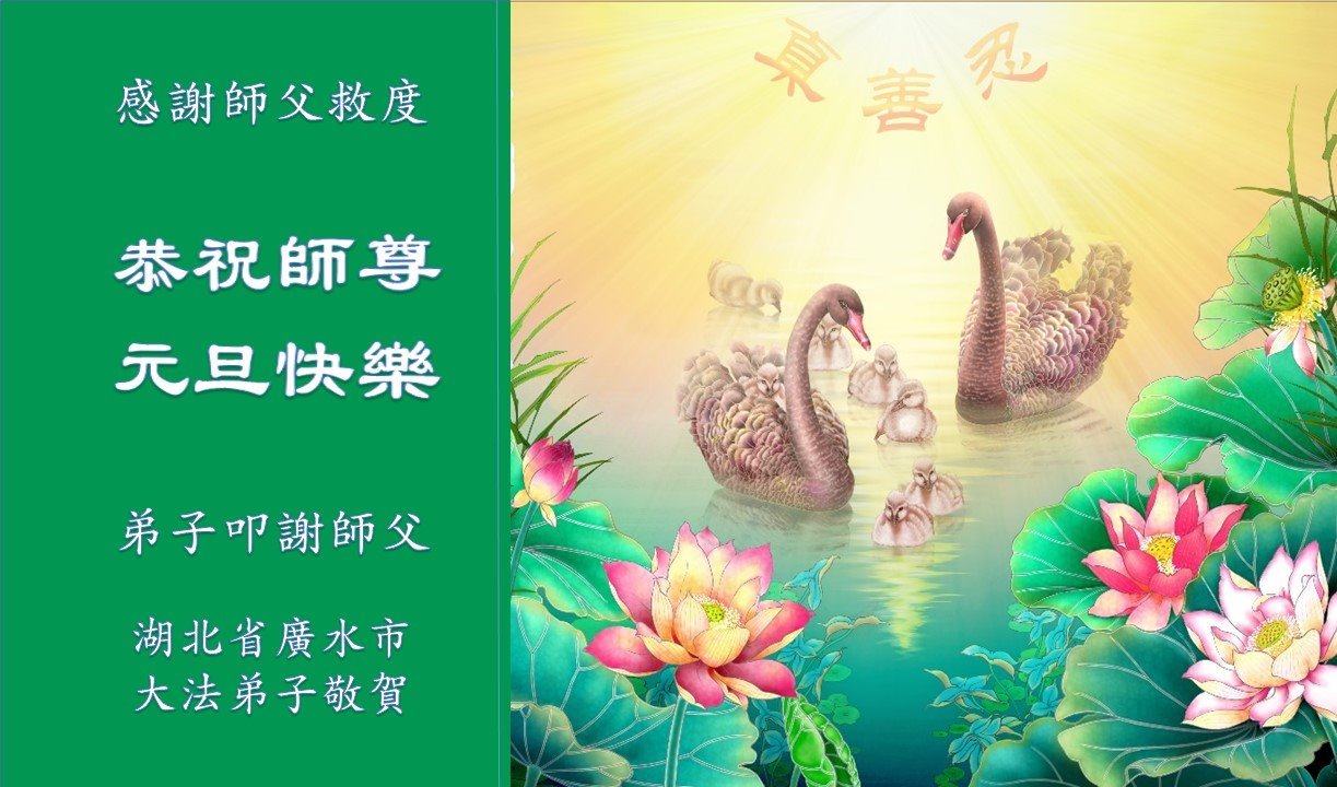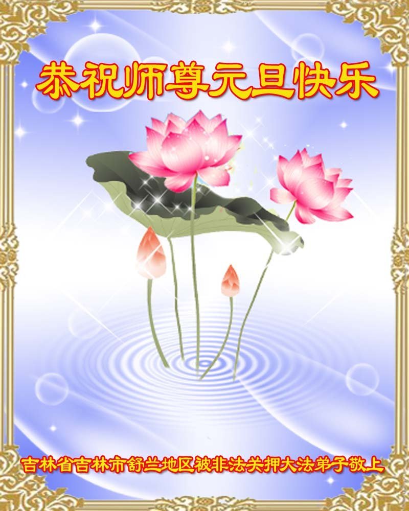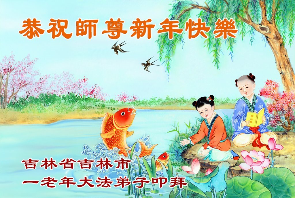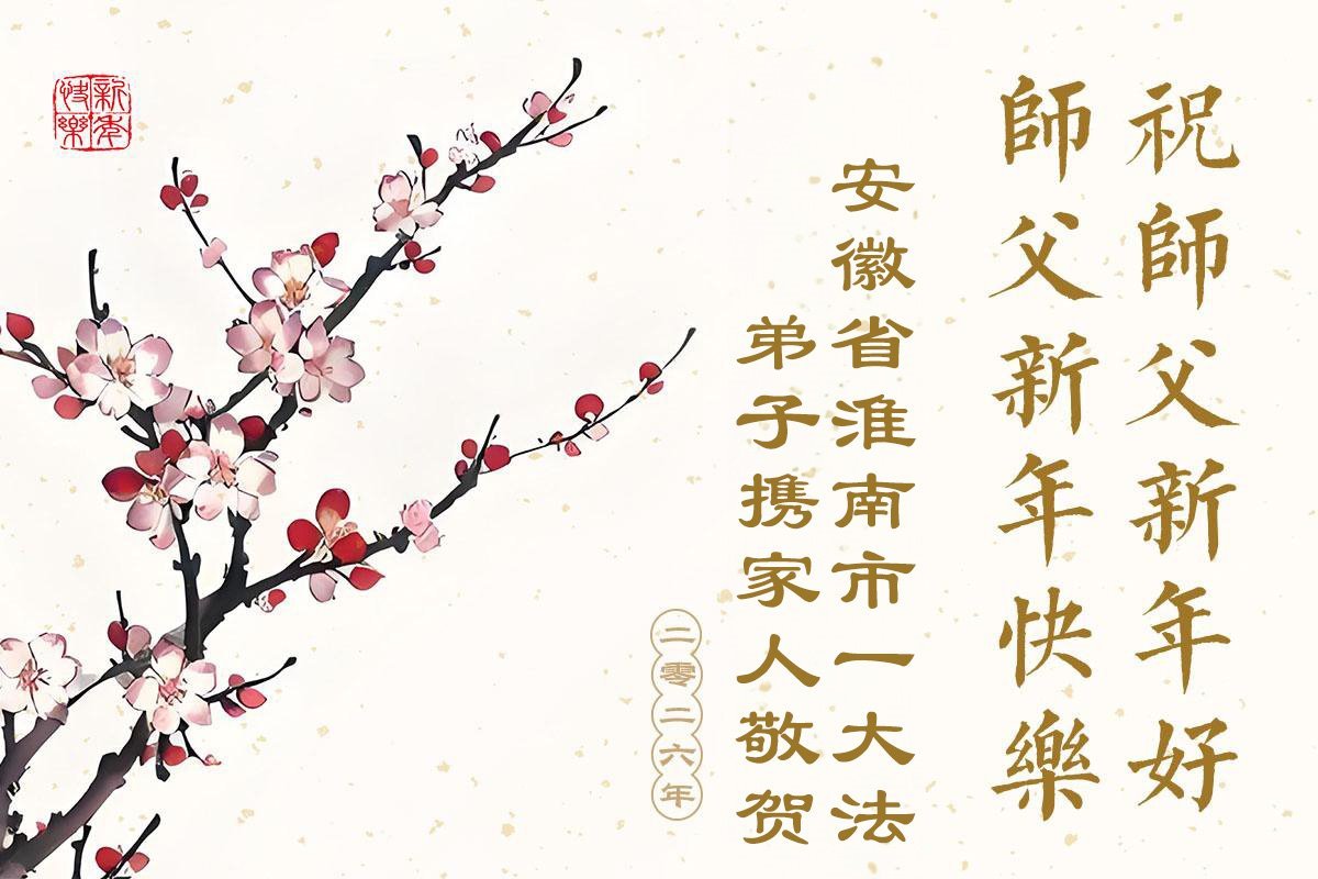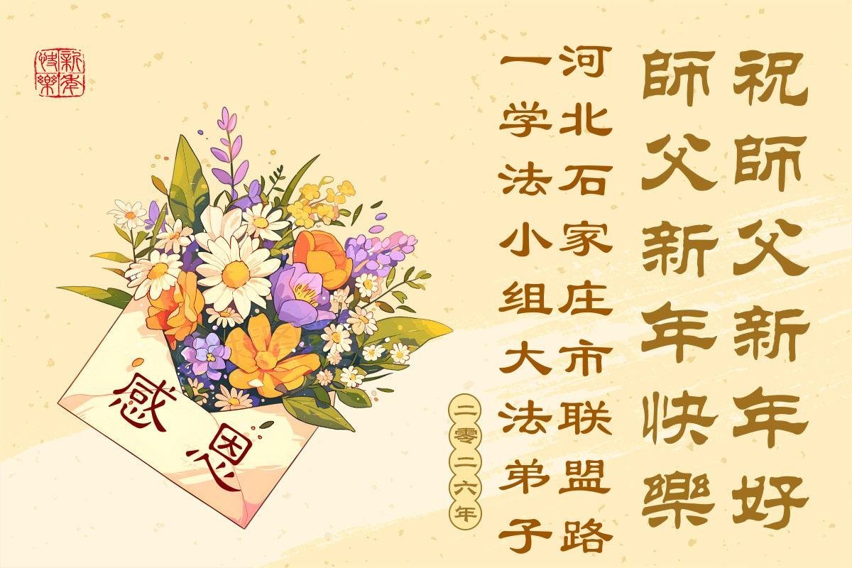 以下是部份来自中国各省、市、地区的学法炼功小组、讲真相小组、资料点大法弟子们敬致师尊的新年贺词贺卡: