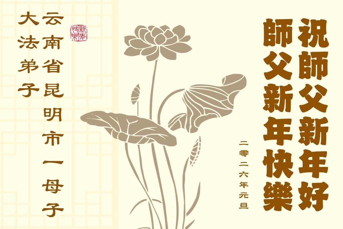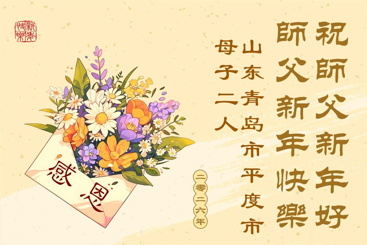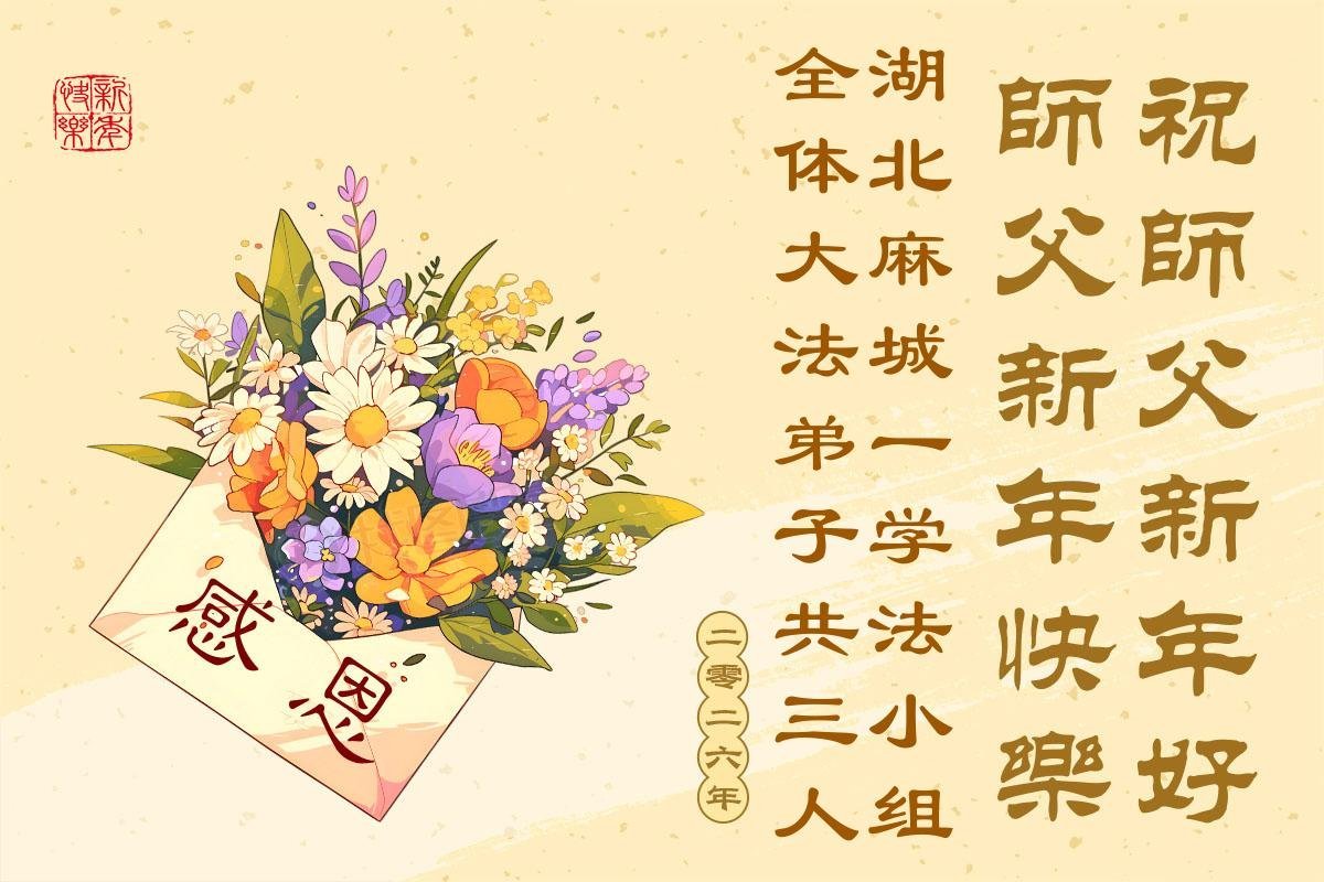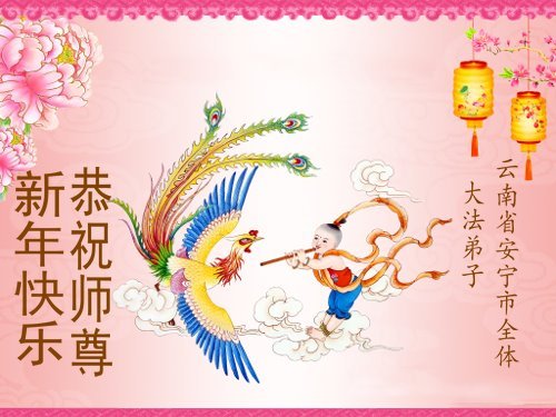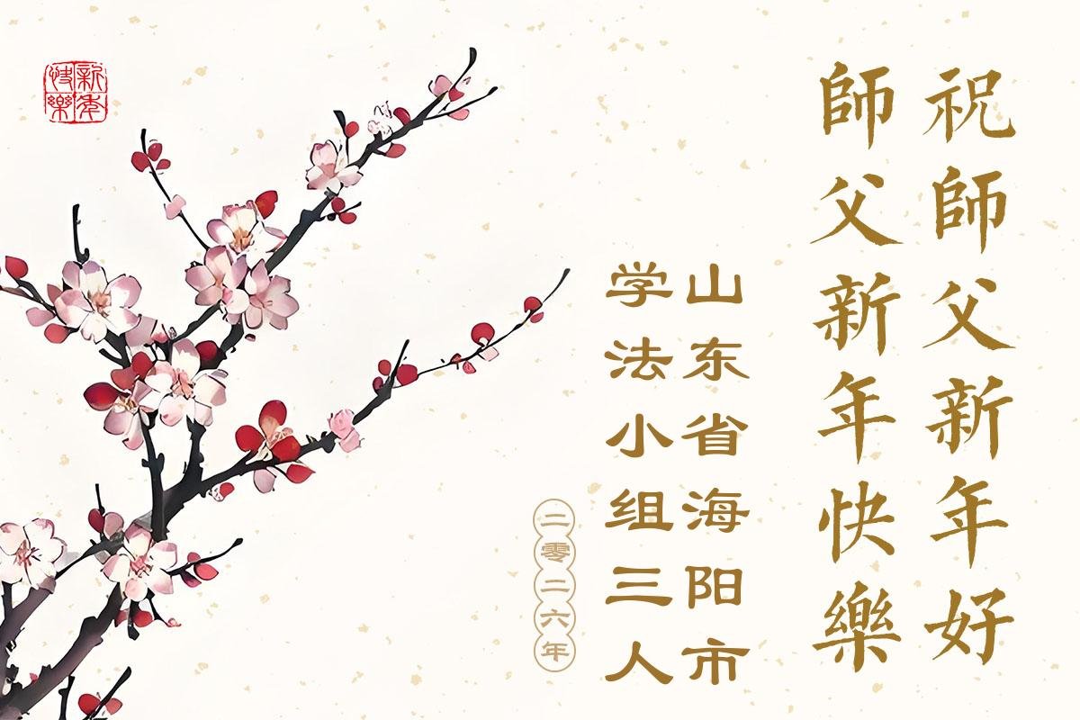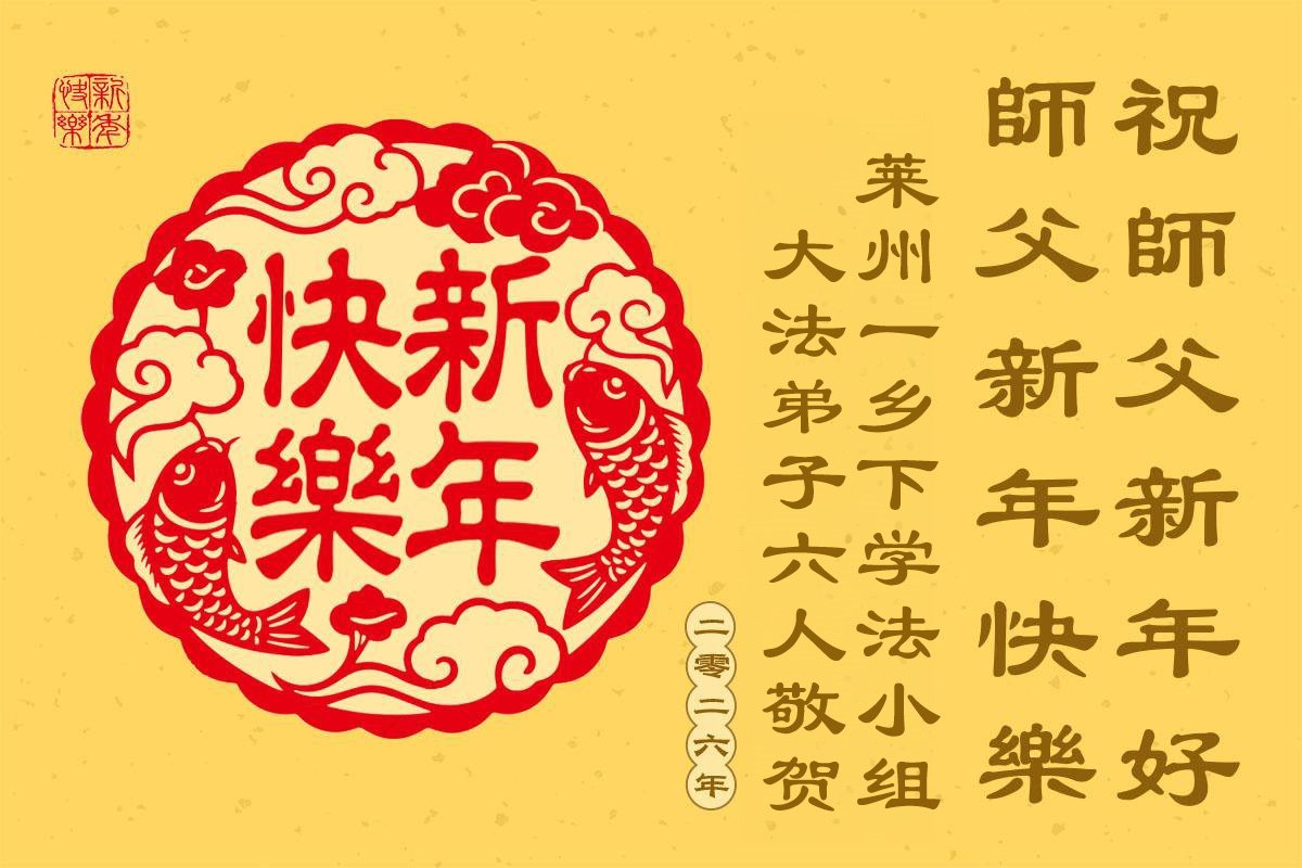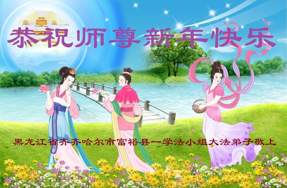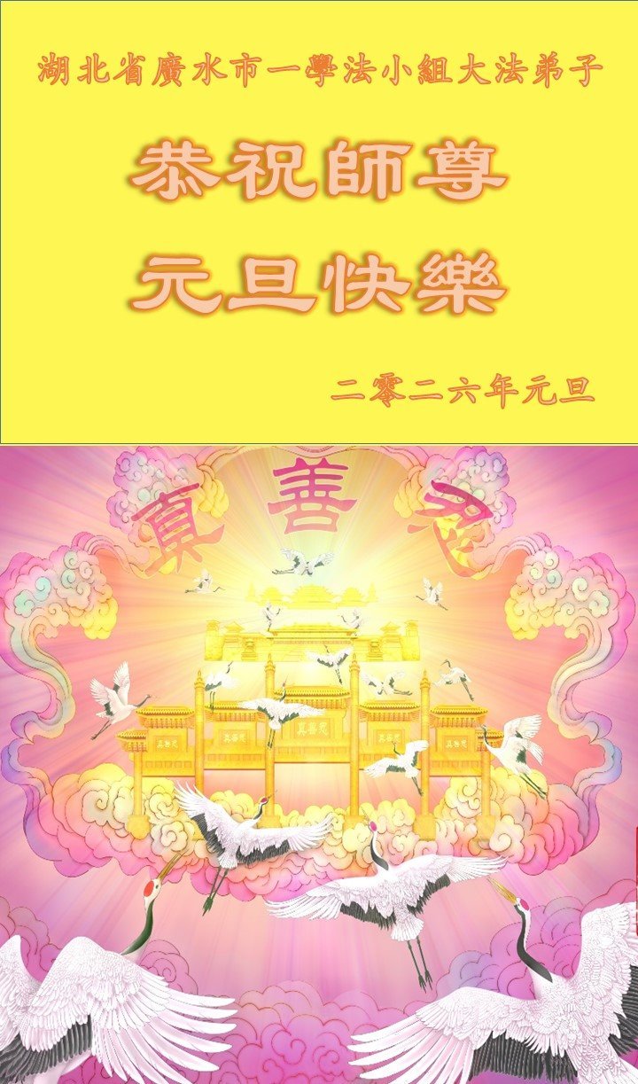 以下是部份来自中国各省、市、地区的学法炼功小组、讲真相小组、资料点大法弟子们敬致师尊的新年贺词贺卡: