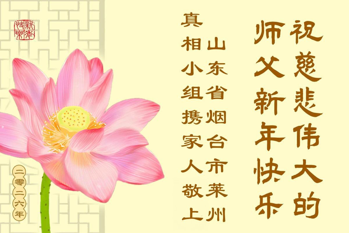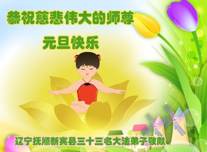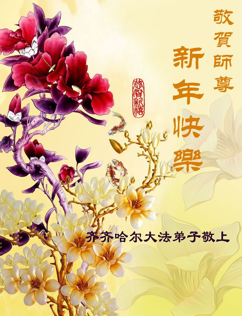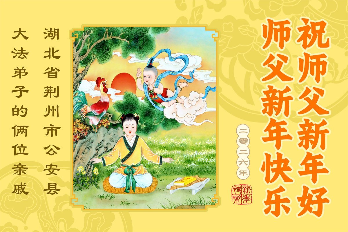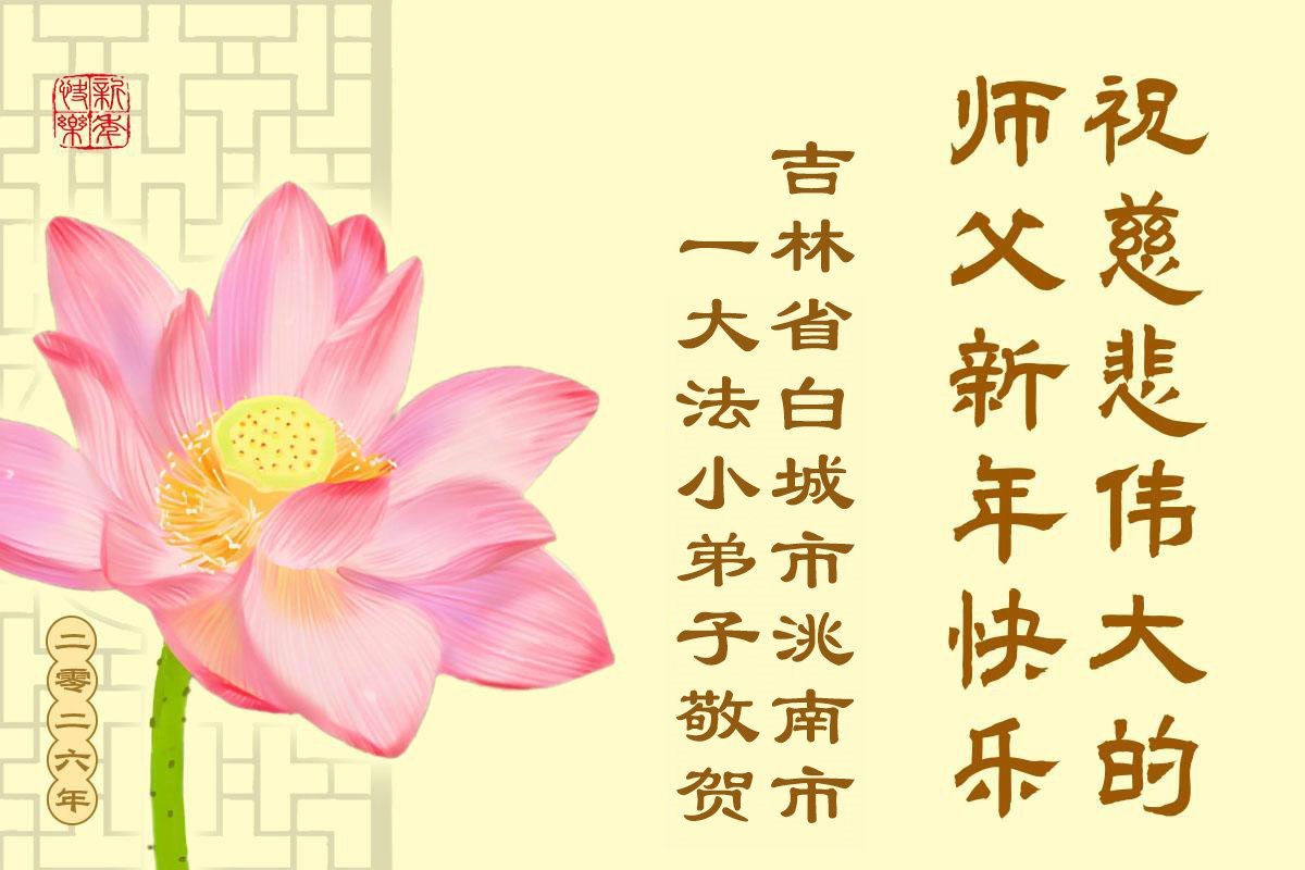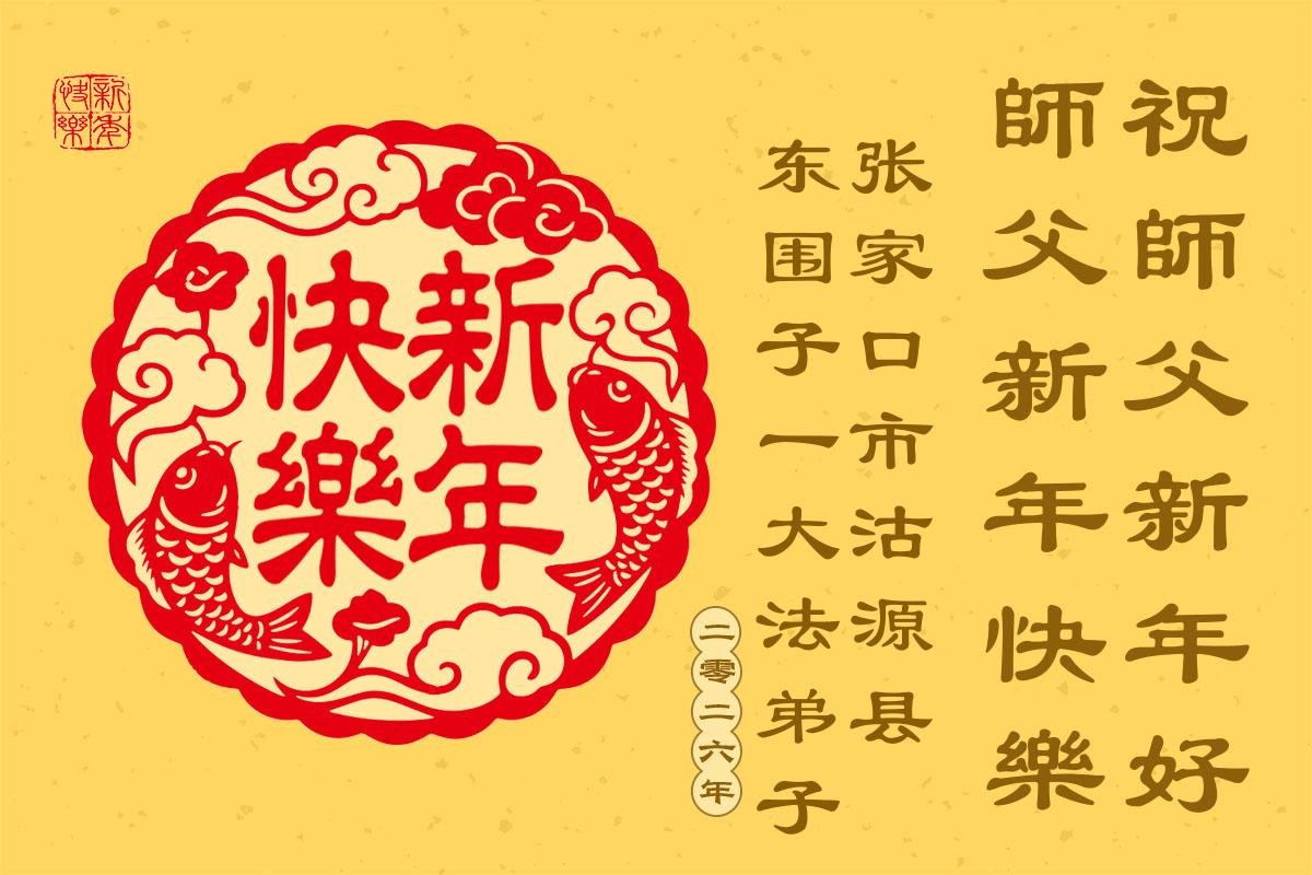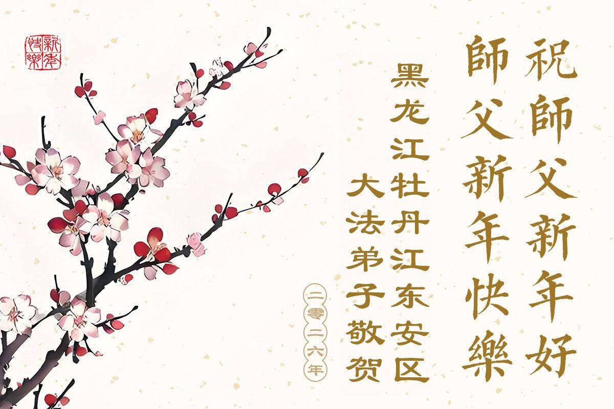 以下是部份来自中国各省、市、地区的学法炼功小组、讲真相小组、资料点大法弟子们敬致师尊的新年贺词贺卡: