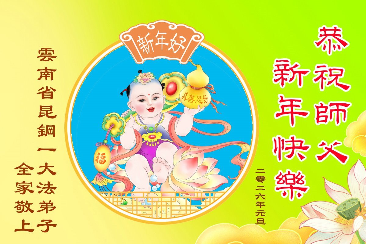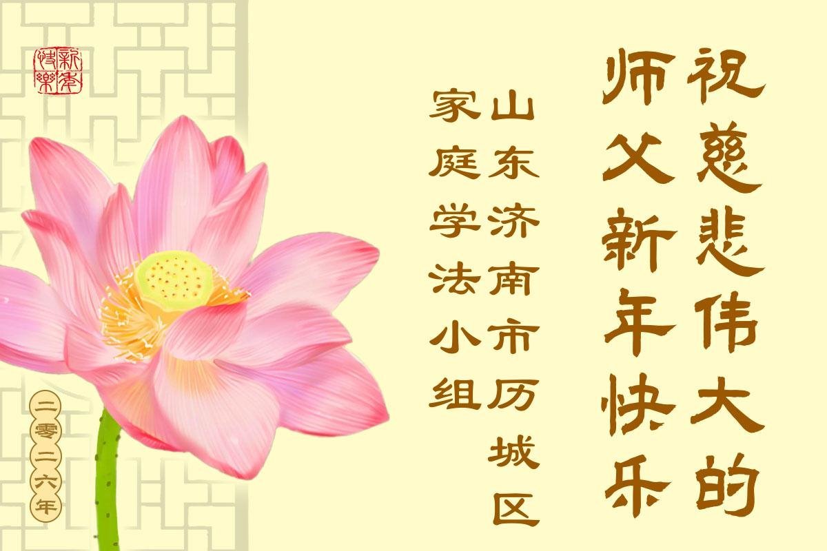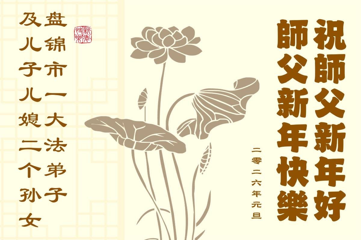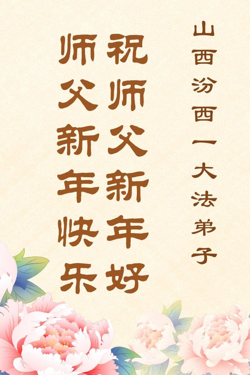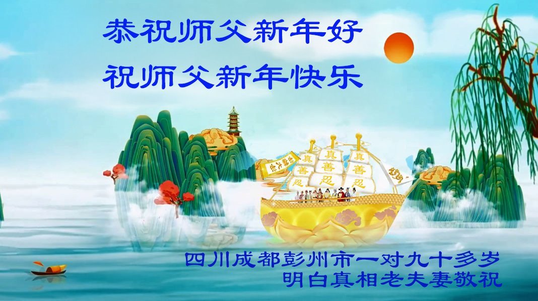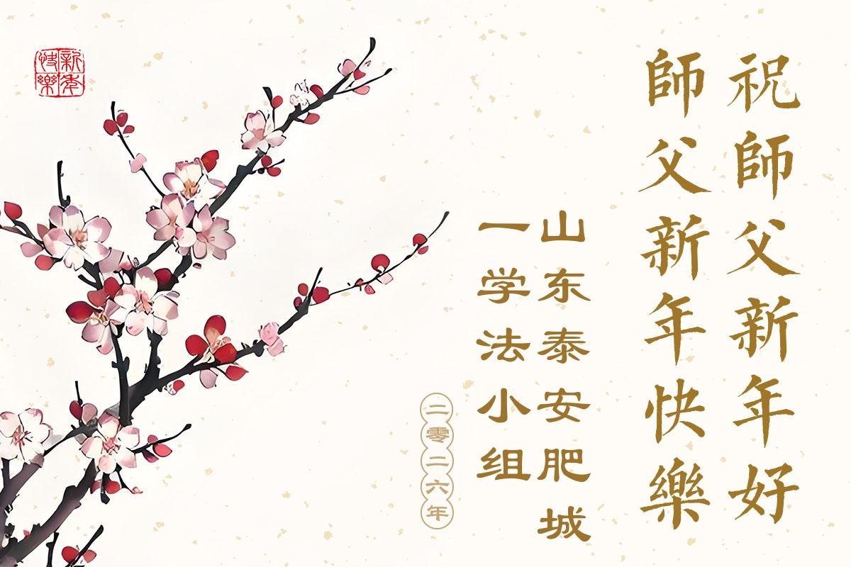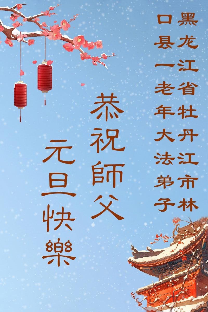 以下是部份来自中国各省、市、地区的学法炼功小组、讲真相小组、资料点大法弟子们敬致师尊的新年贺词贺卡: