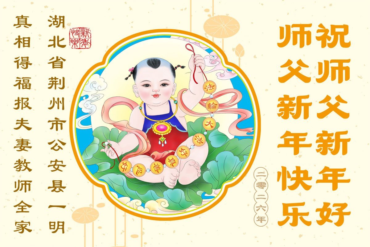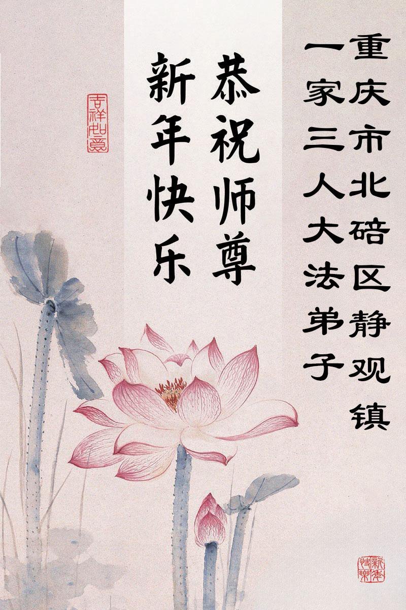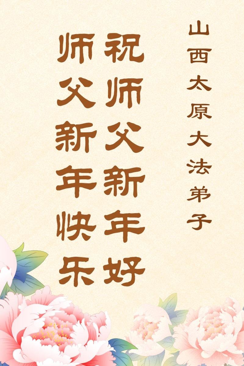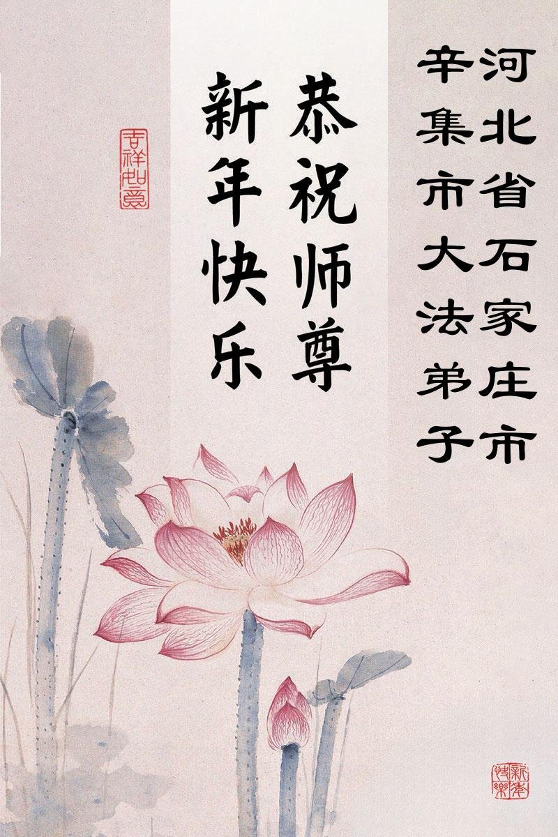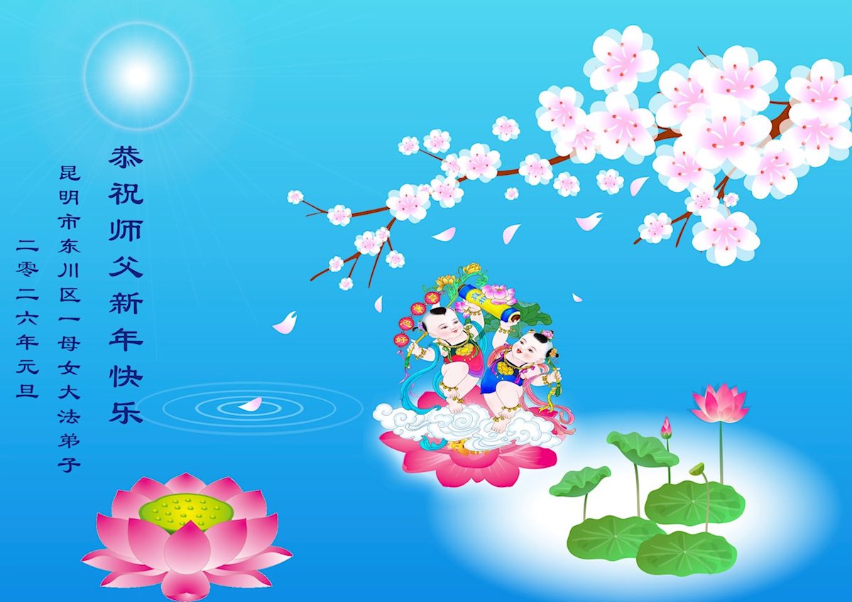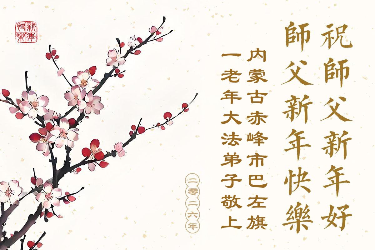以下是部份来自中国各省、市、地区的学法炼功小组、讲真相小组、资料点大法弟子们敬致师尊的新年贺词贺卡: