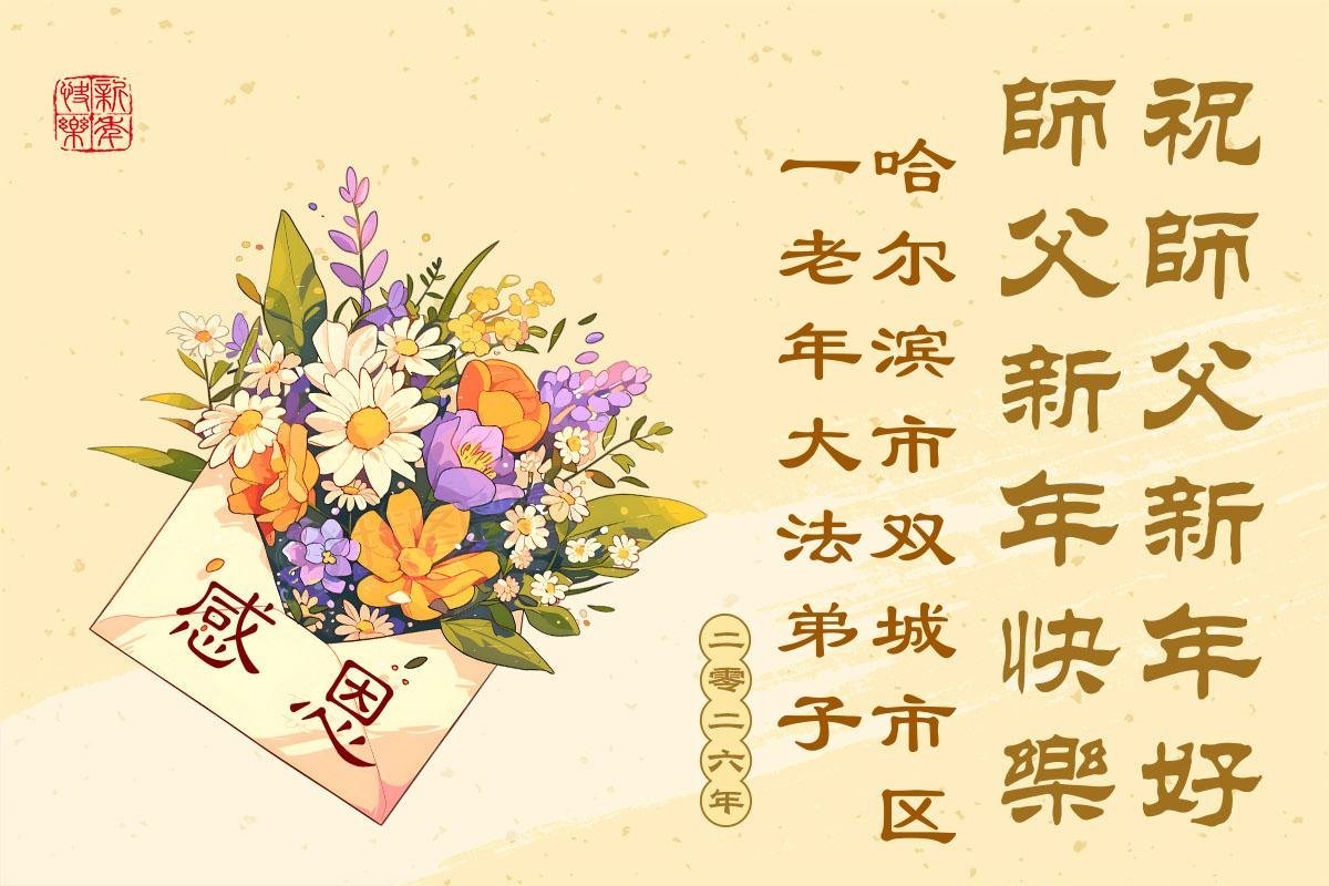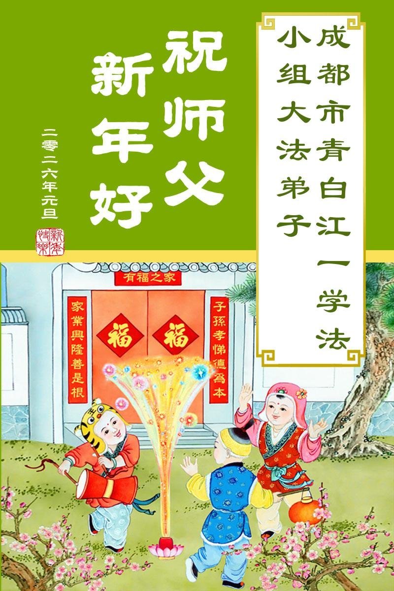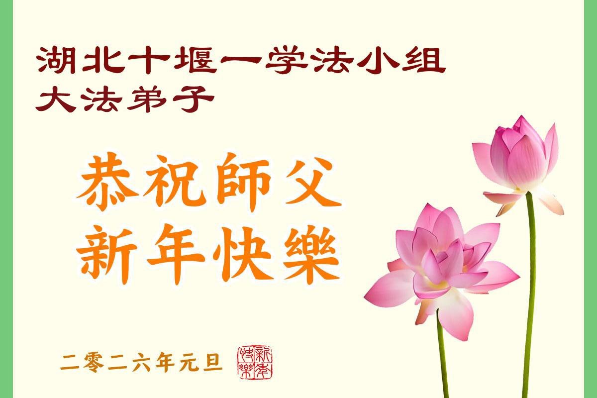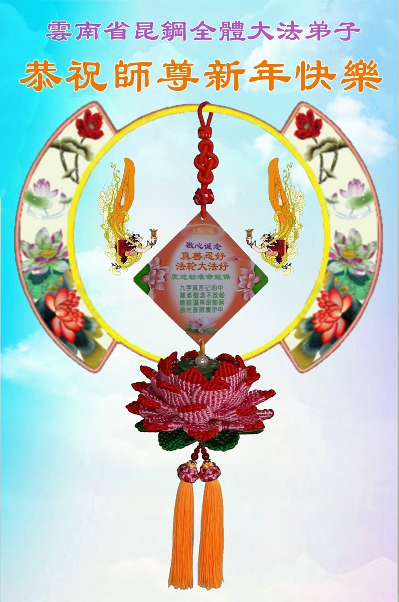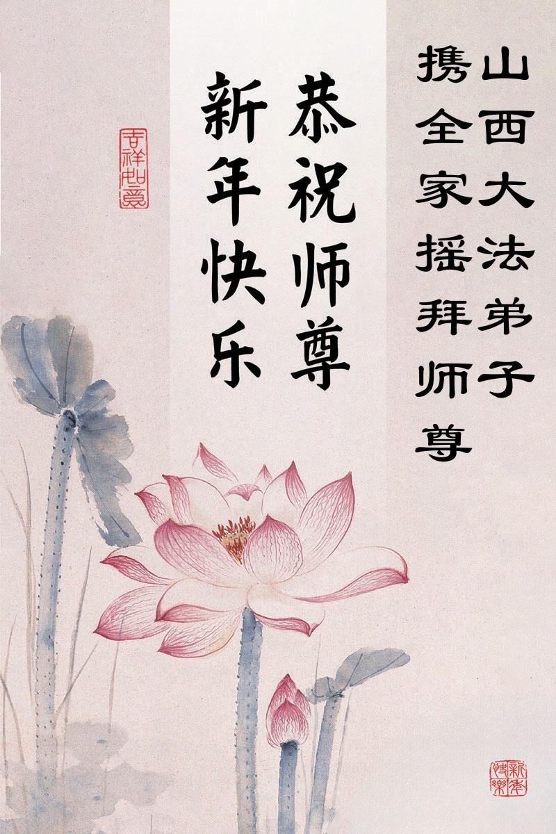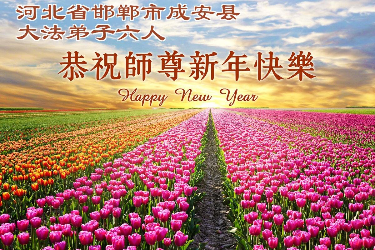 以下是部份来自中国各省、市、地区的学法炼功小组、讲真相小组、资料点大法弟子们敬致师尊的新年贺词贺卡: