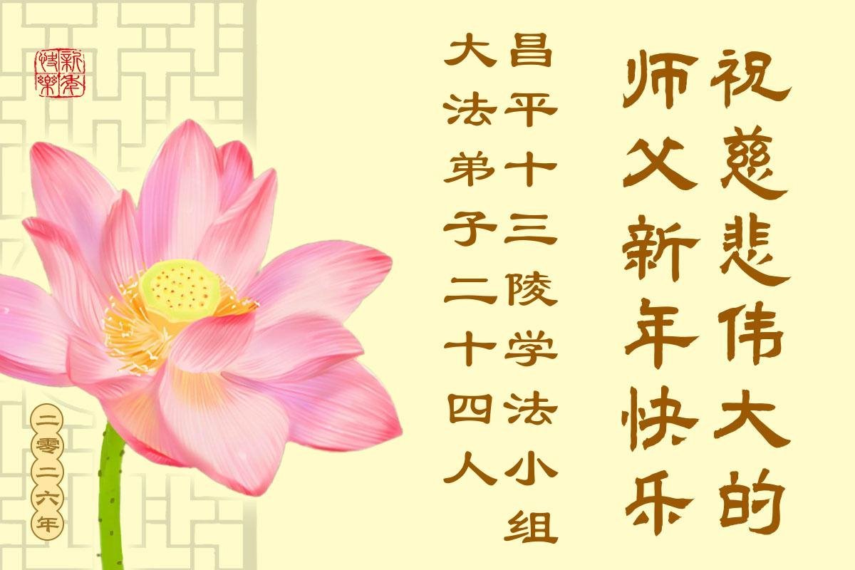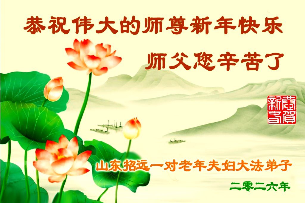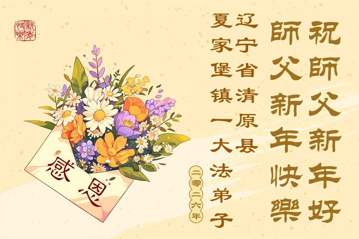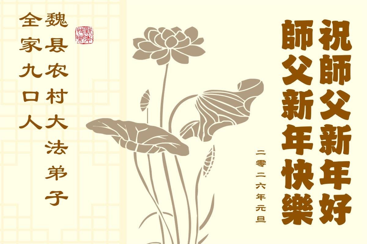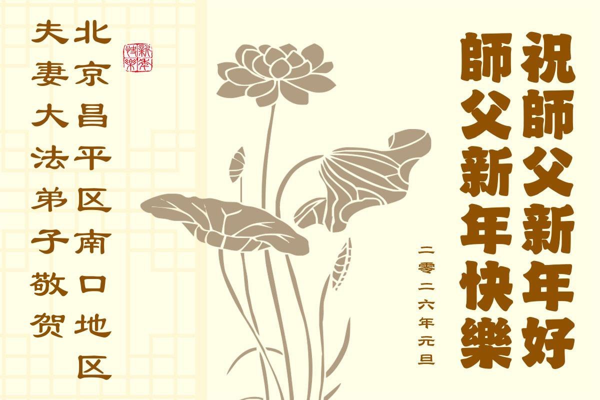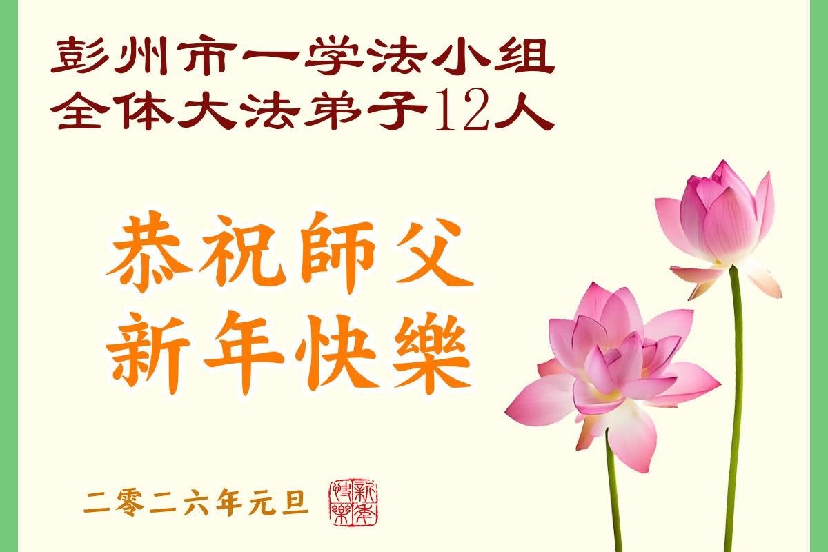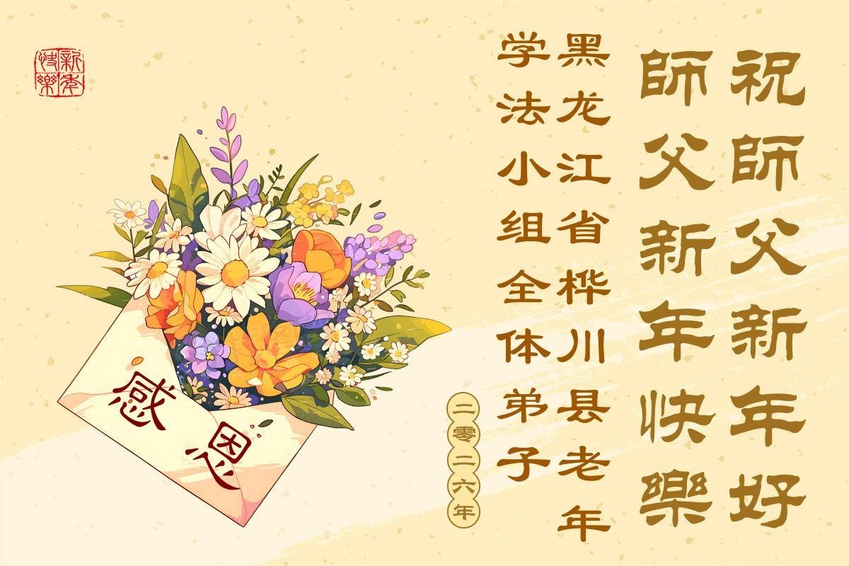 以下是部份来自中国各省、市、地区的学法炼功小组、讲真相小组、资料点大法弟子们敬致师尊的新年贺词贺卡: