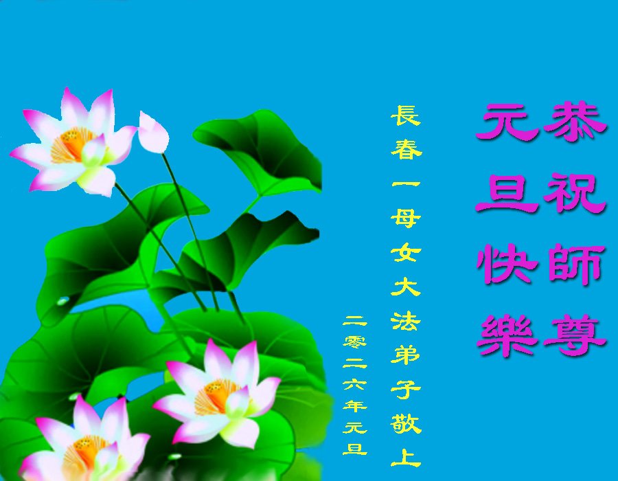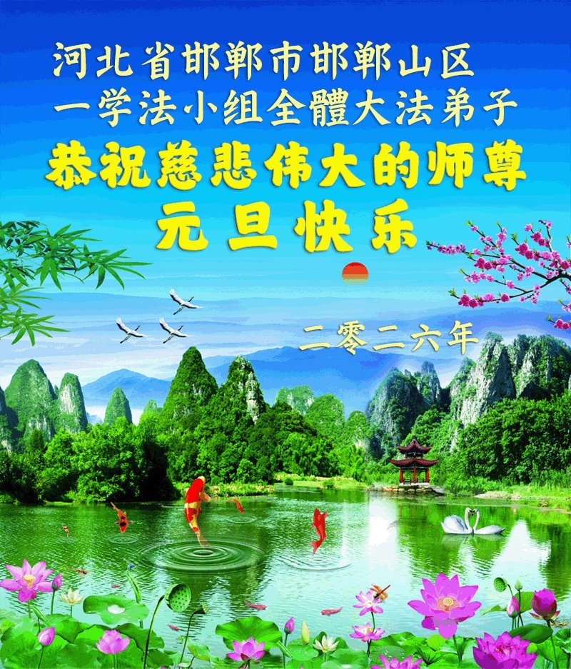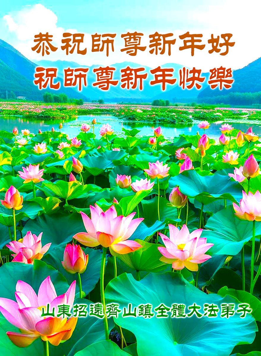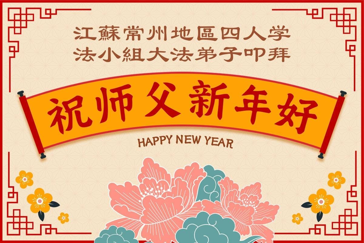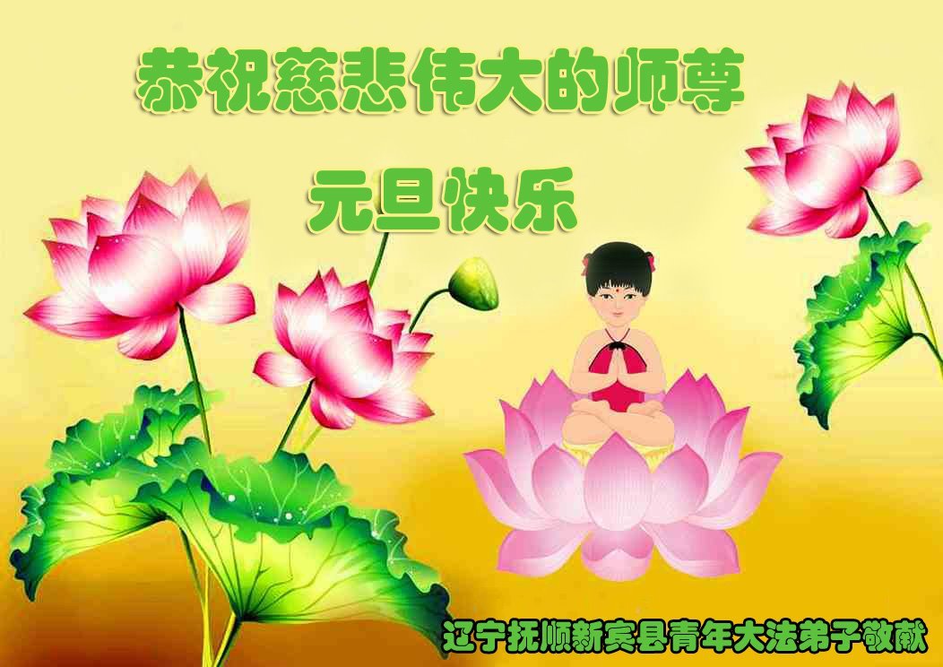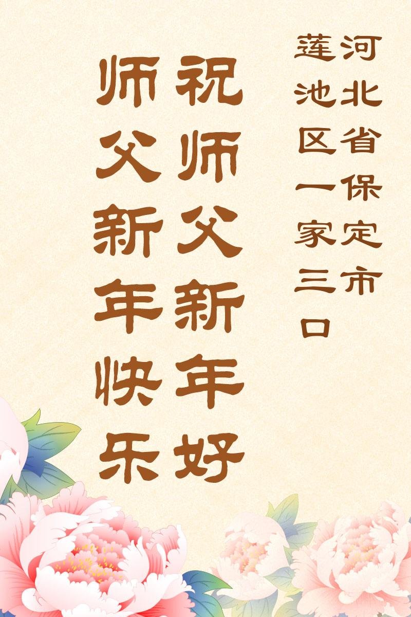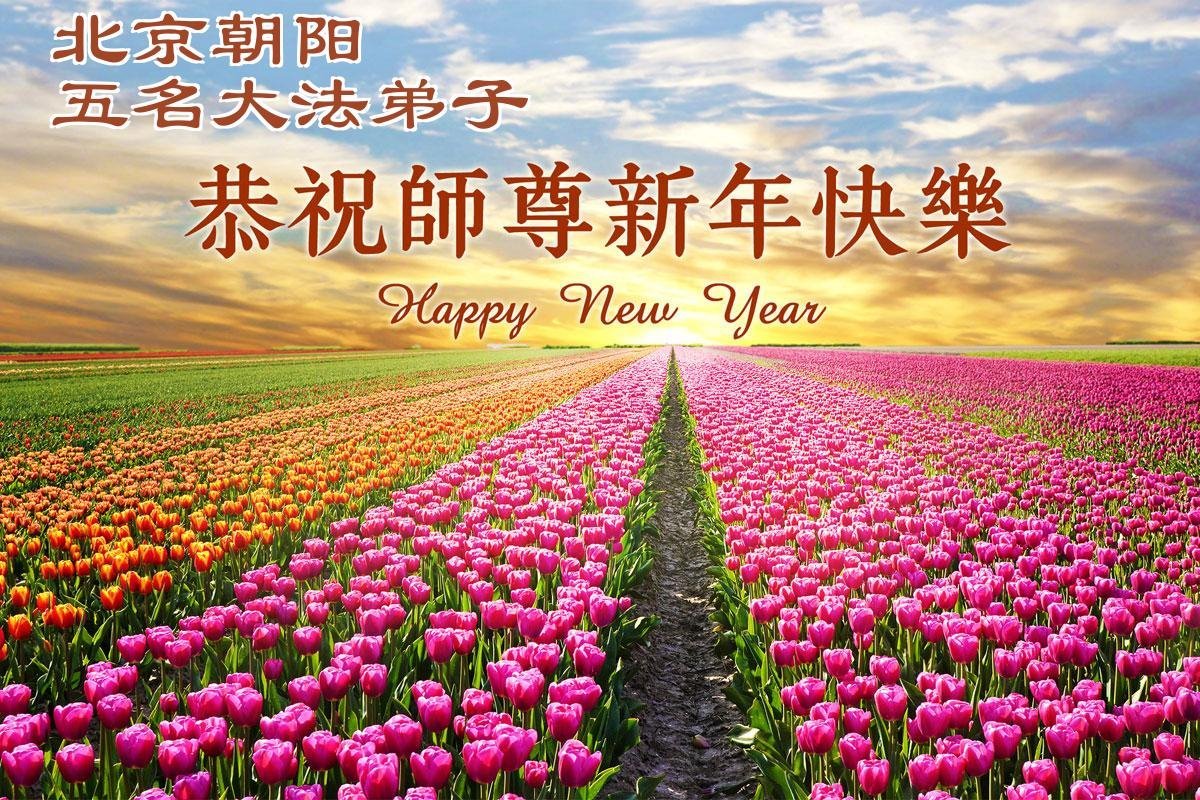 以下是部份来自中国各省、市、地区的学法炼功小组、讲真相小组、资料点大法弟子们敬致师尊的新年贺词贺卡: