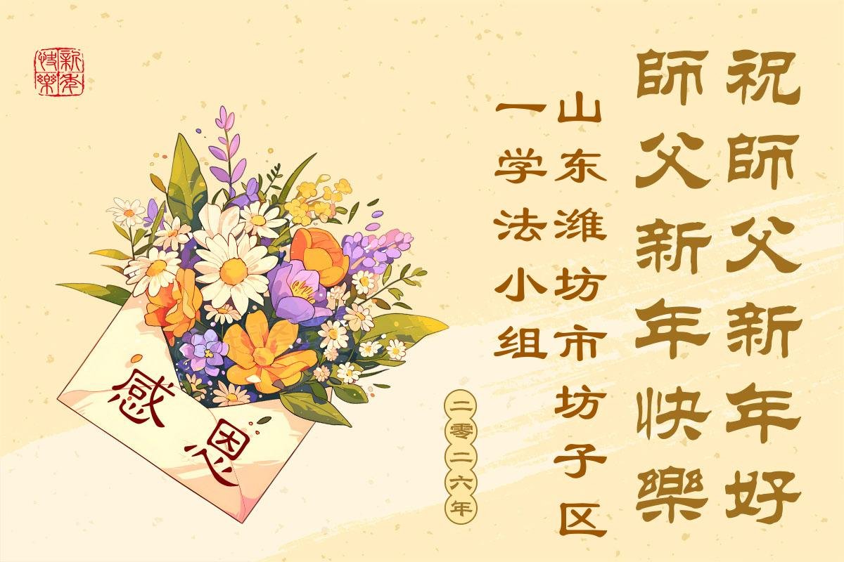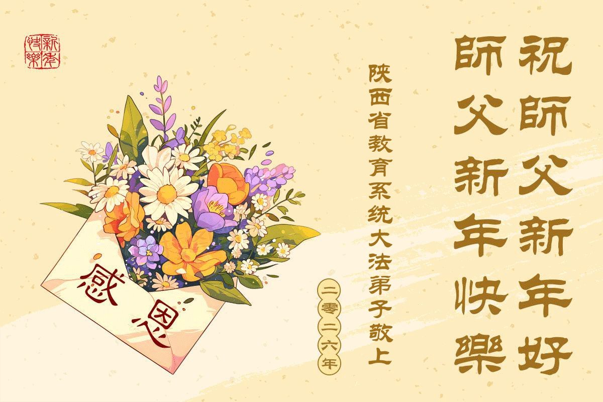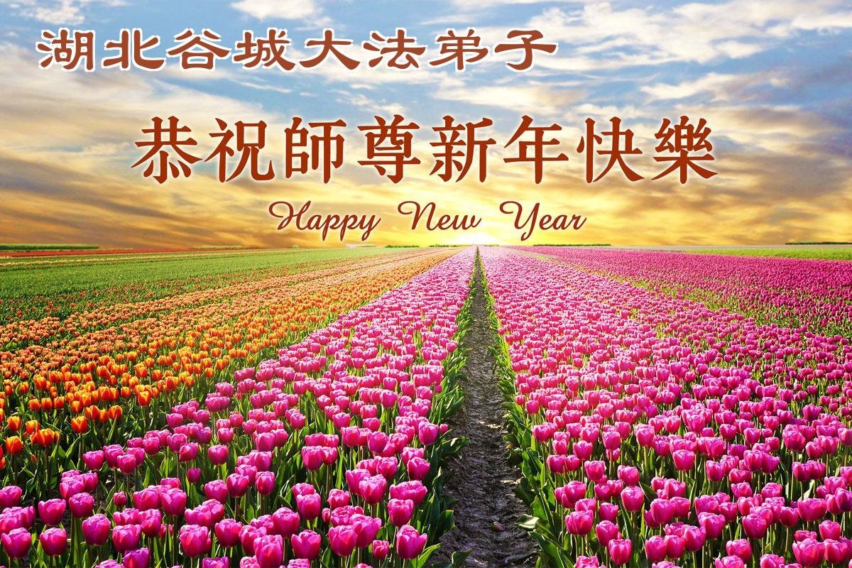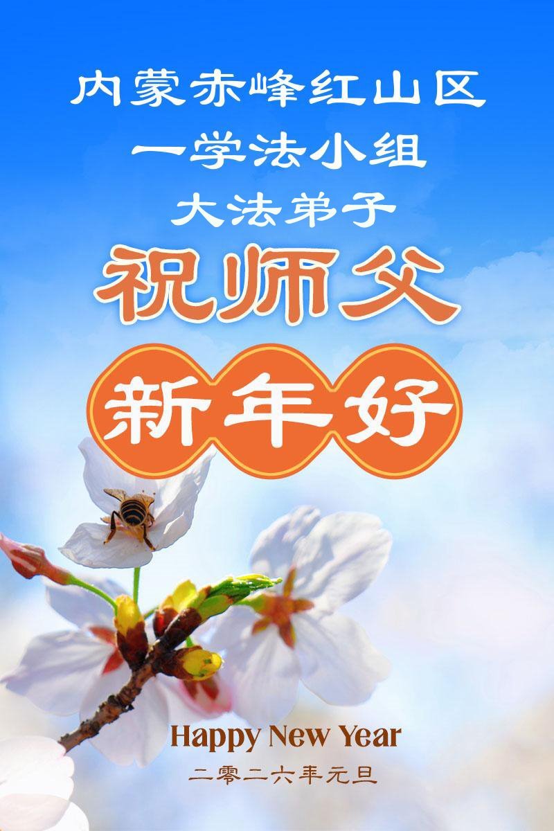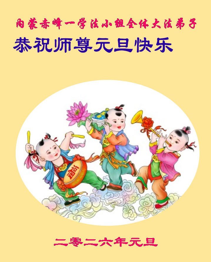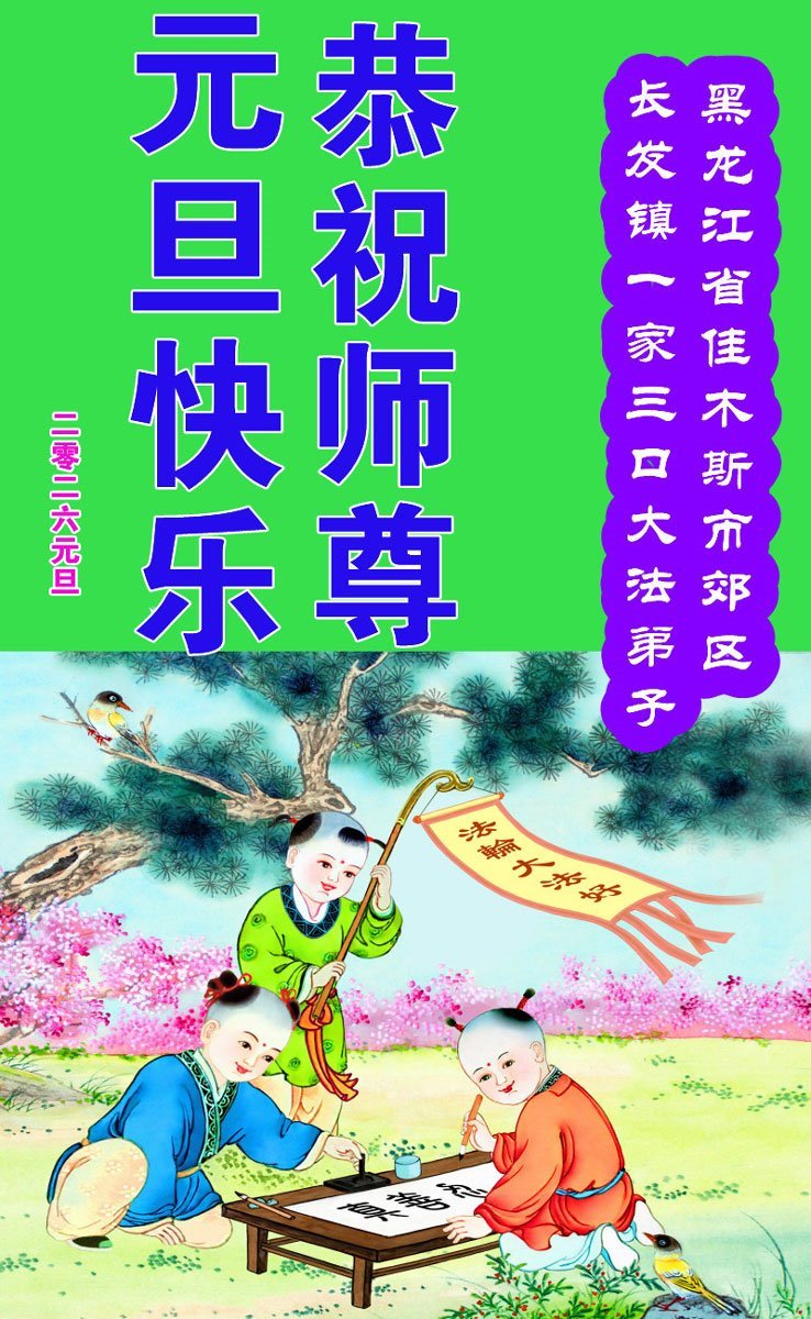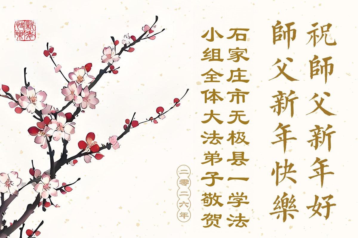 以下是部份来自中国各省、市、地区的学法炼功小组、讲真相小组、资料点大法弟子们敬致师尊的新年贺词贺卡: