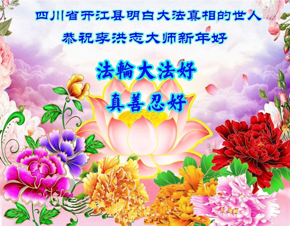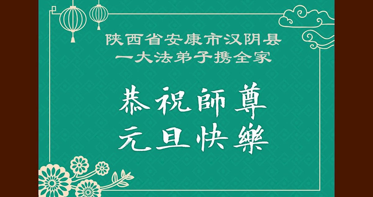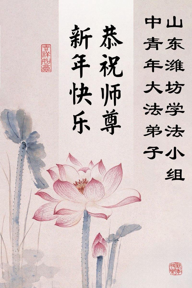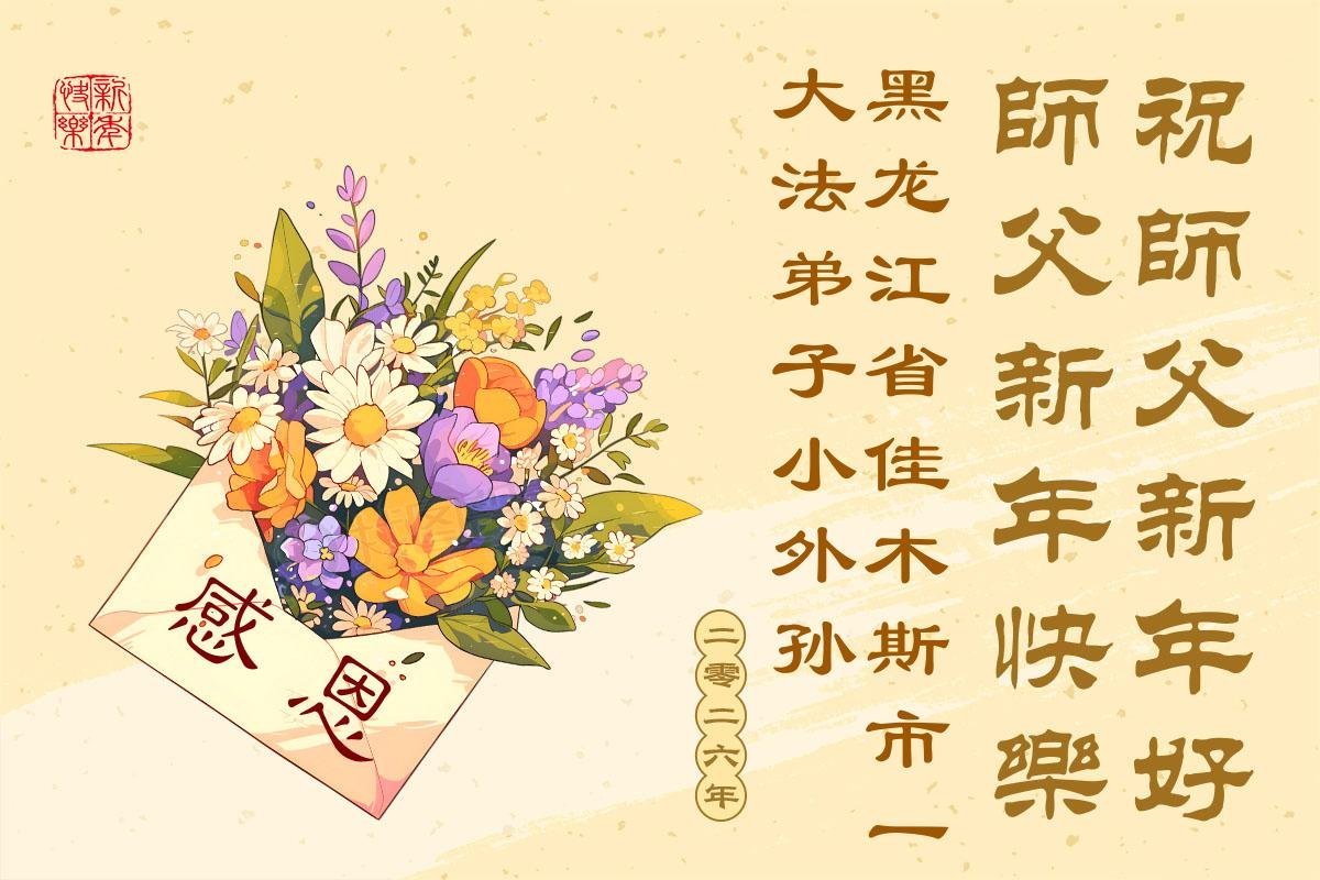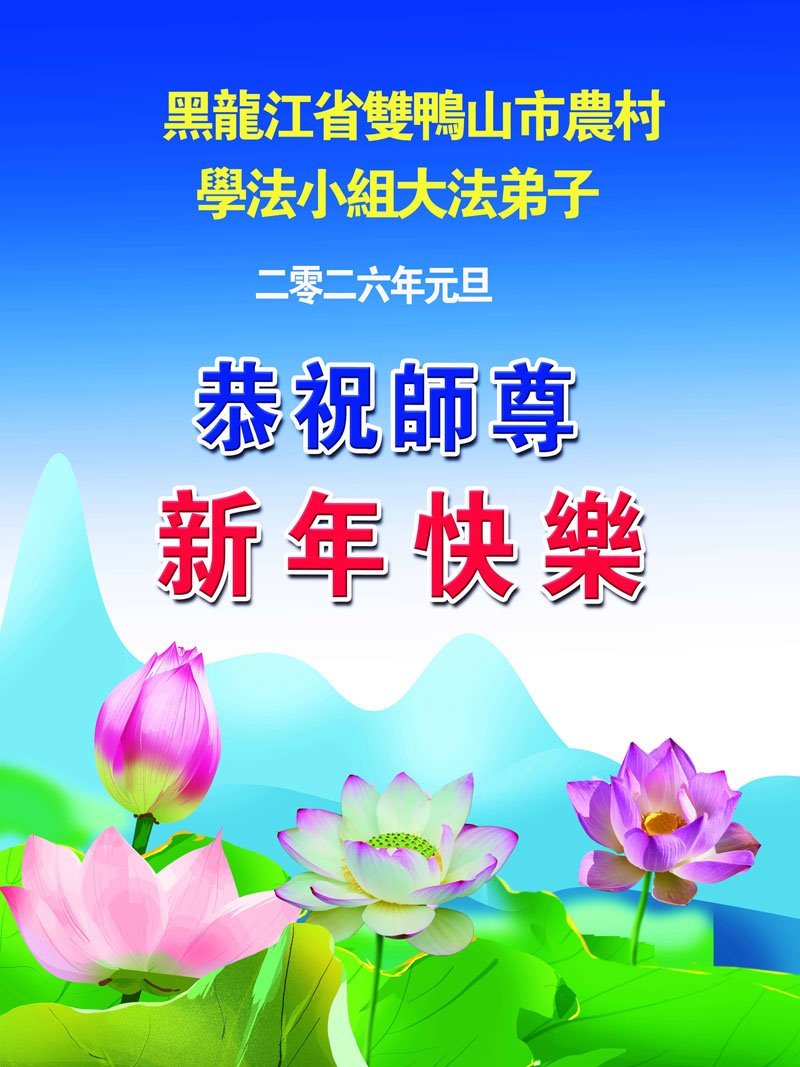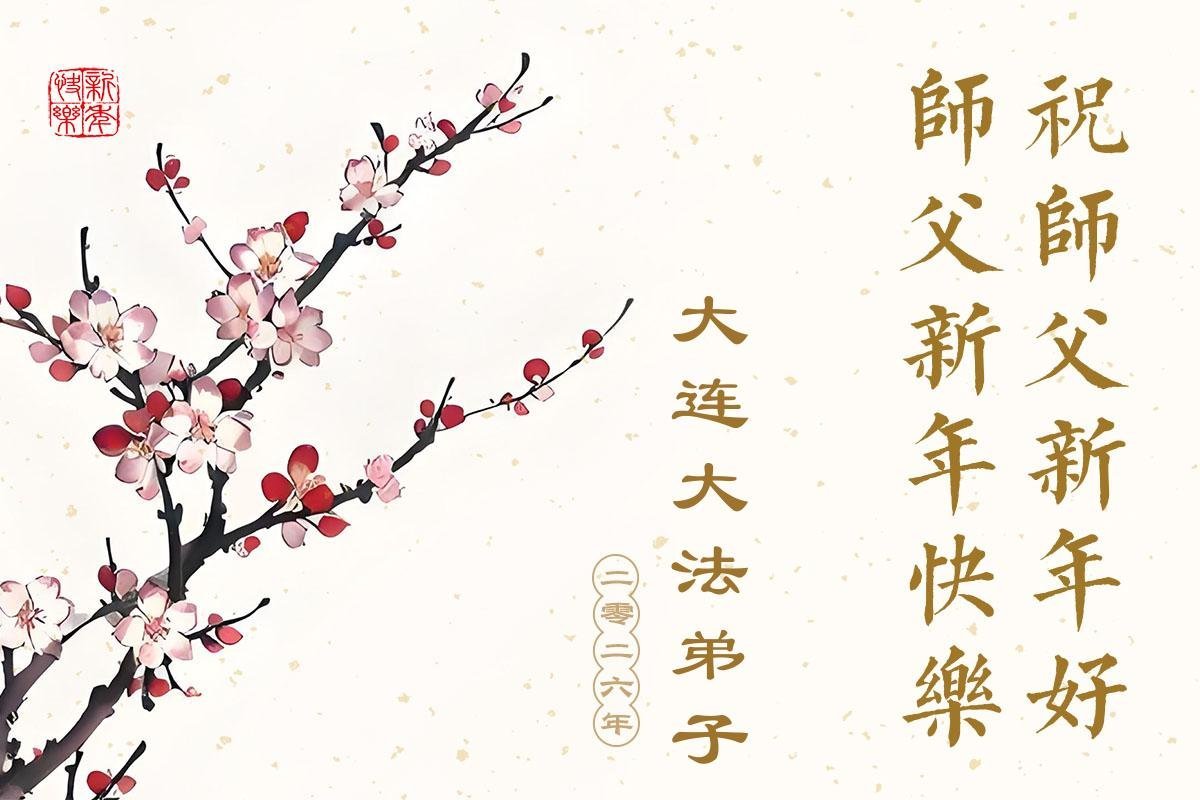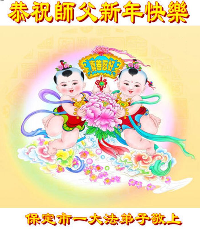 以下是部份来自中国各省、市、地区的学法炼功小组、讲真相小组、资料点大法弟子们敬致师尊的新年贺词贺卡: