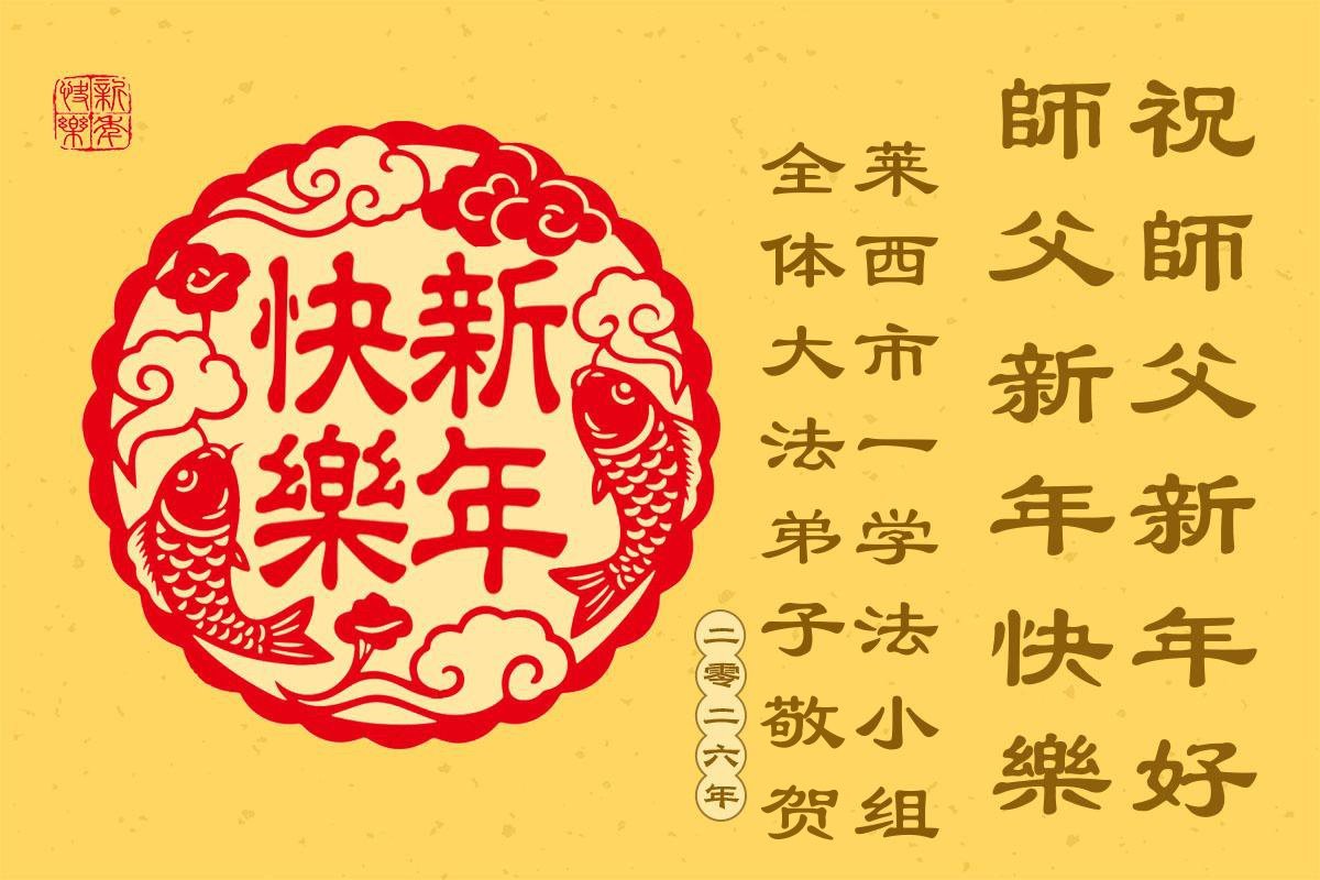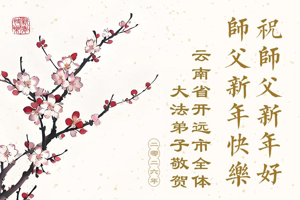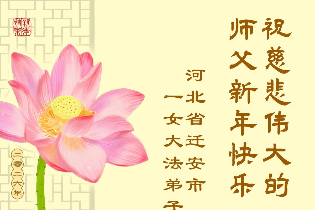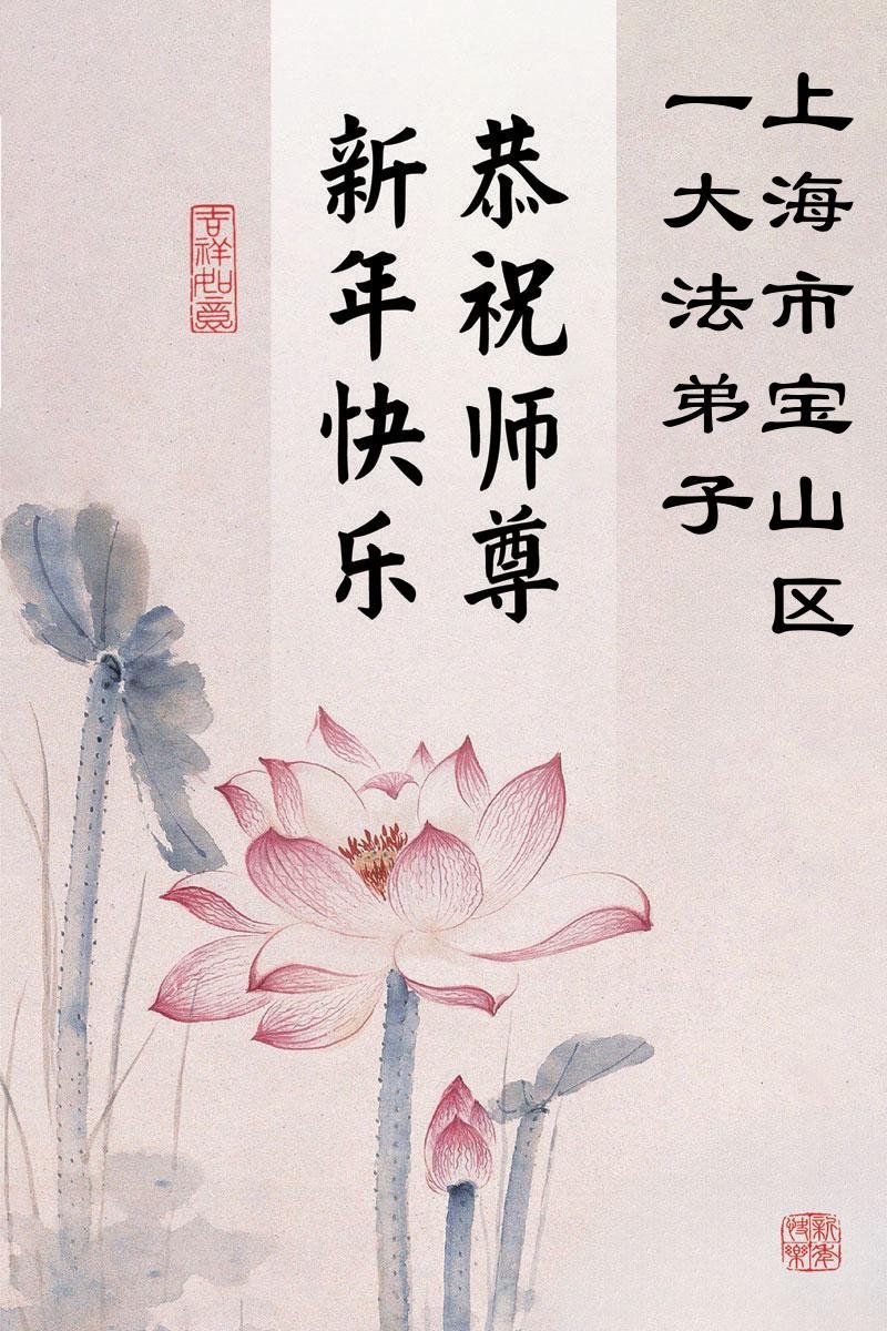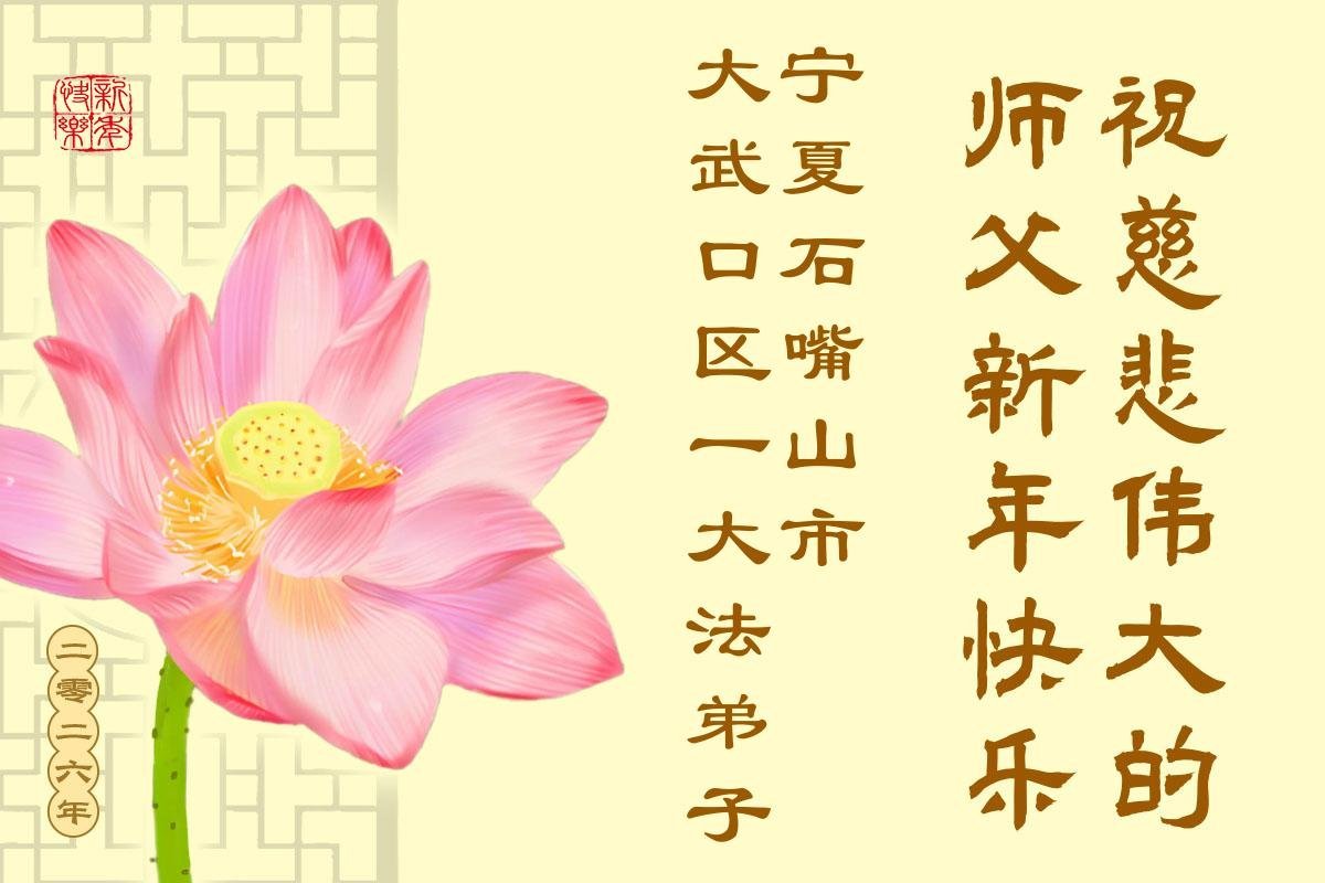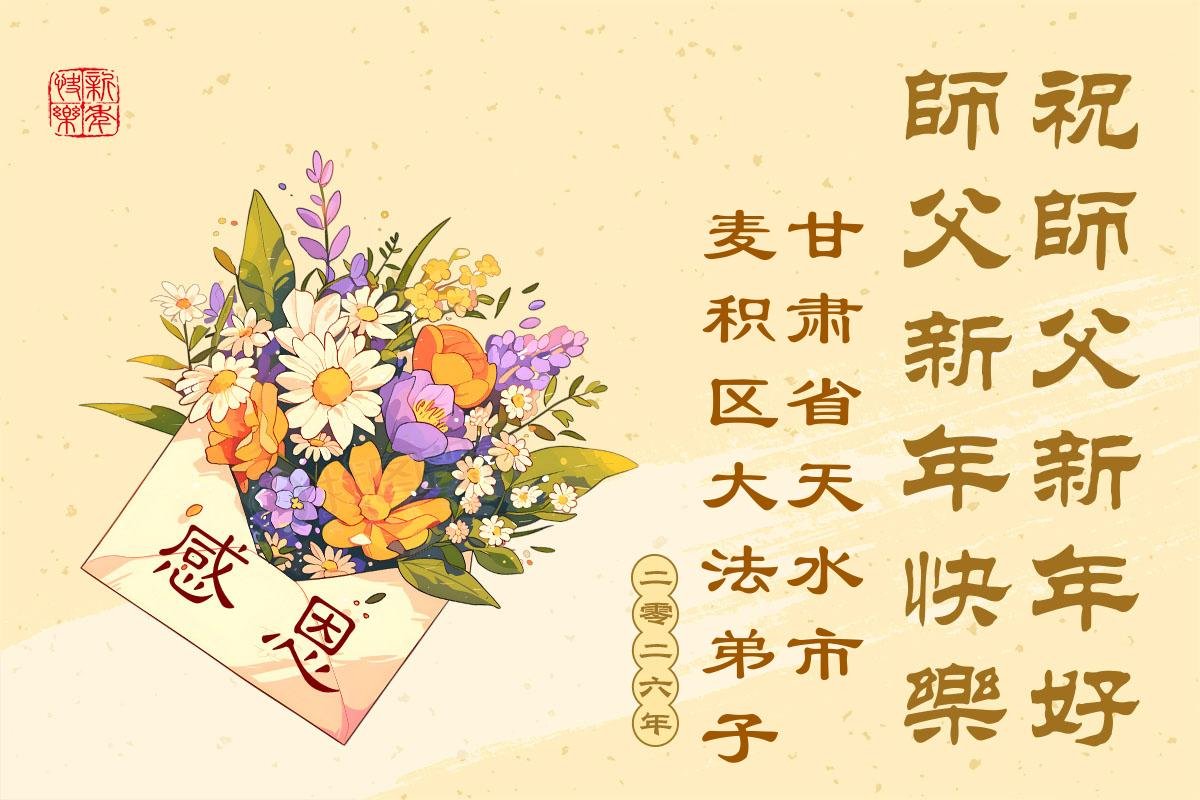 以下是部份来自中国各省、市、地区的学法炼功小组、讲真相小组、资料点大法弟子们敬致师尊的新年贺词贺卡: