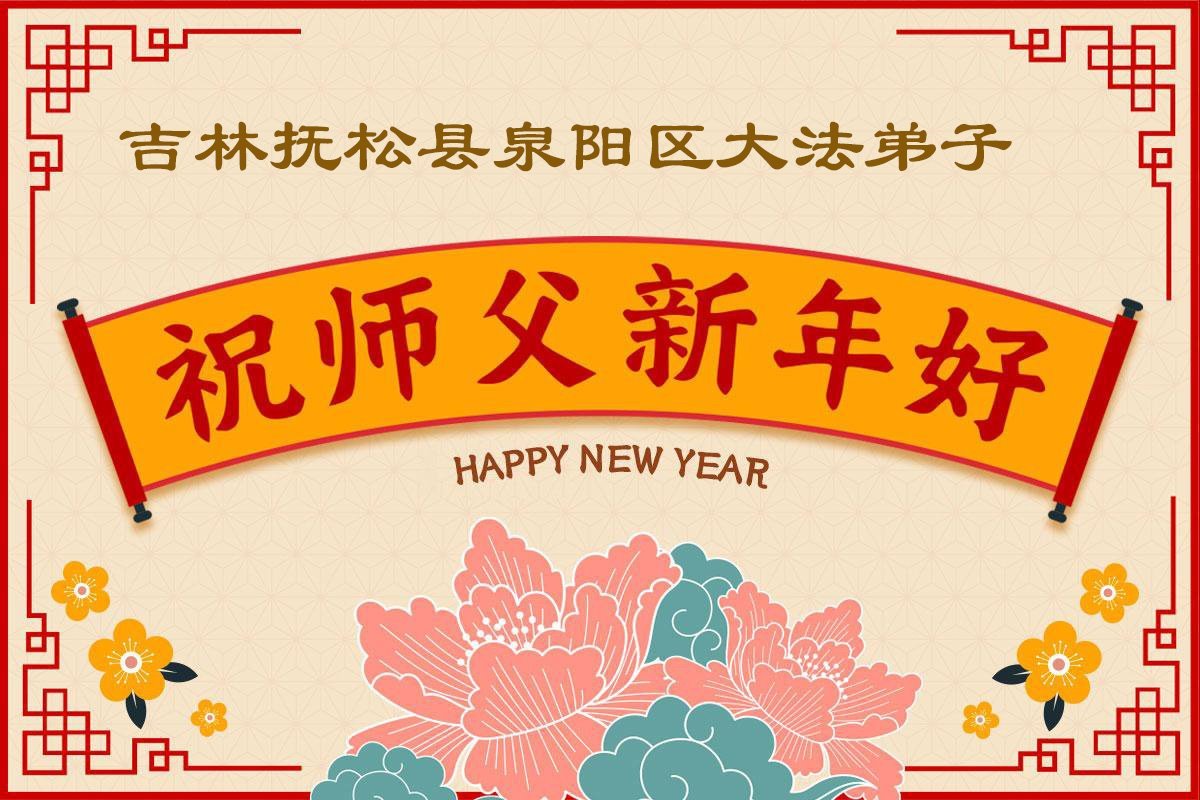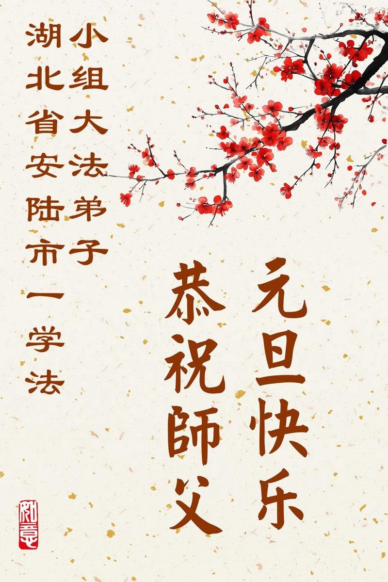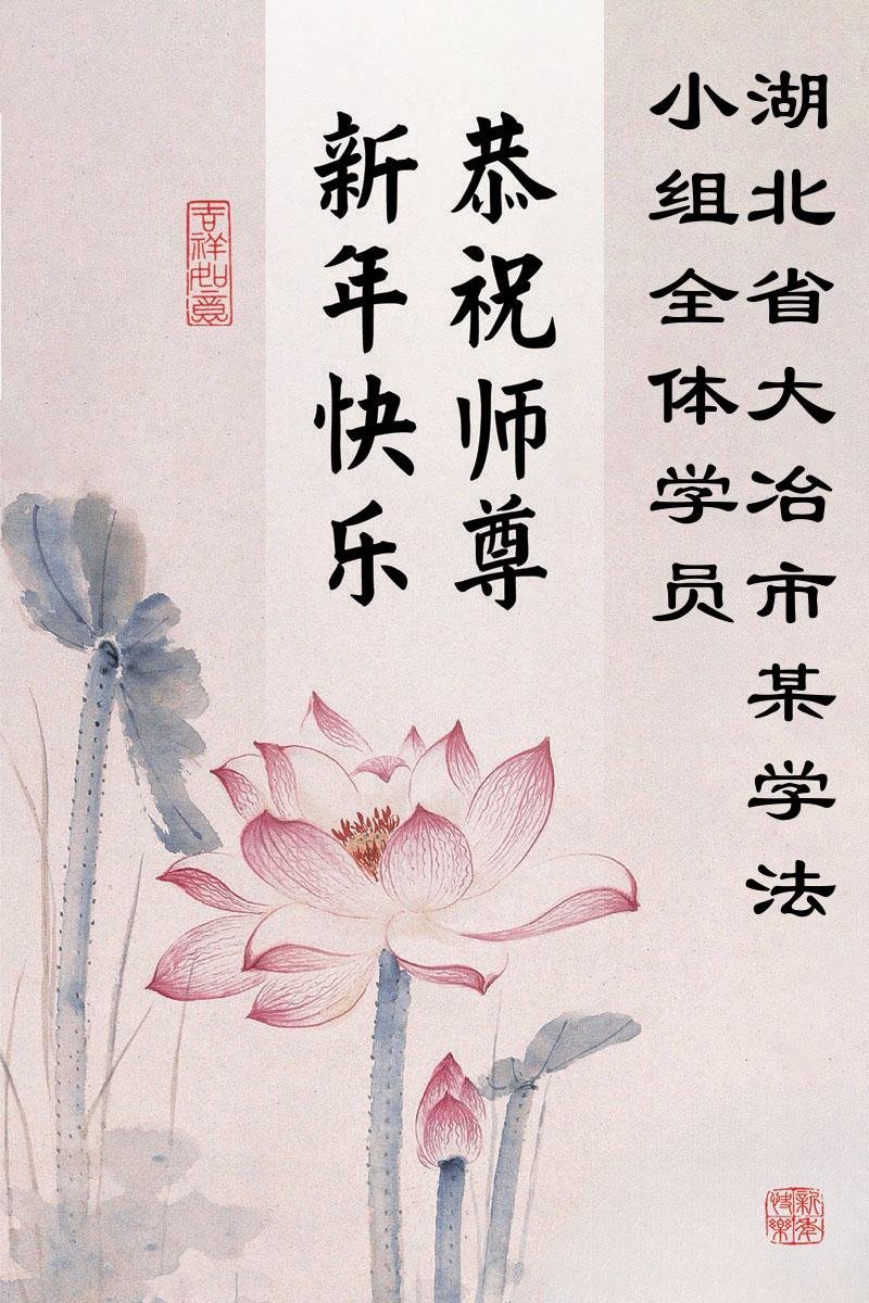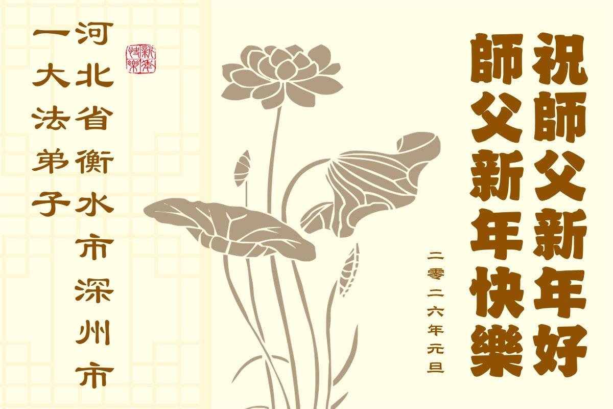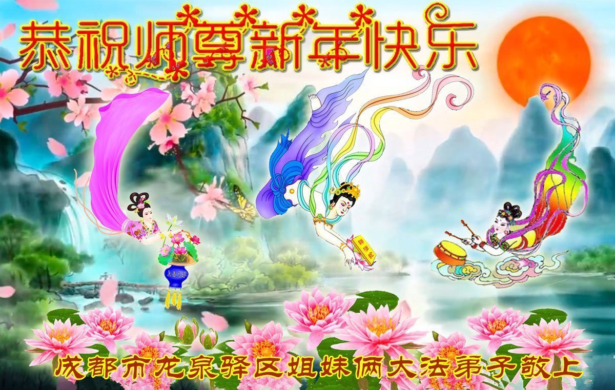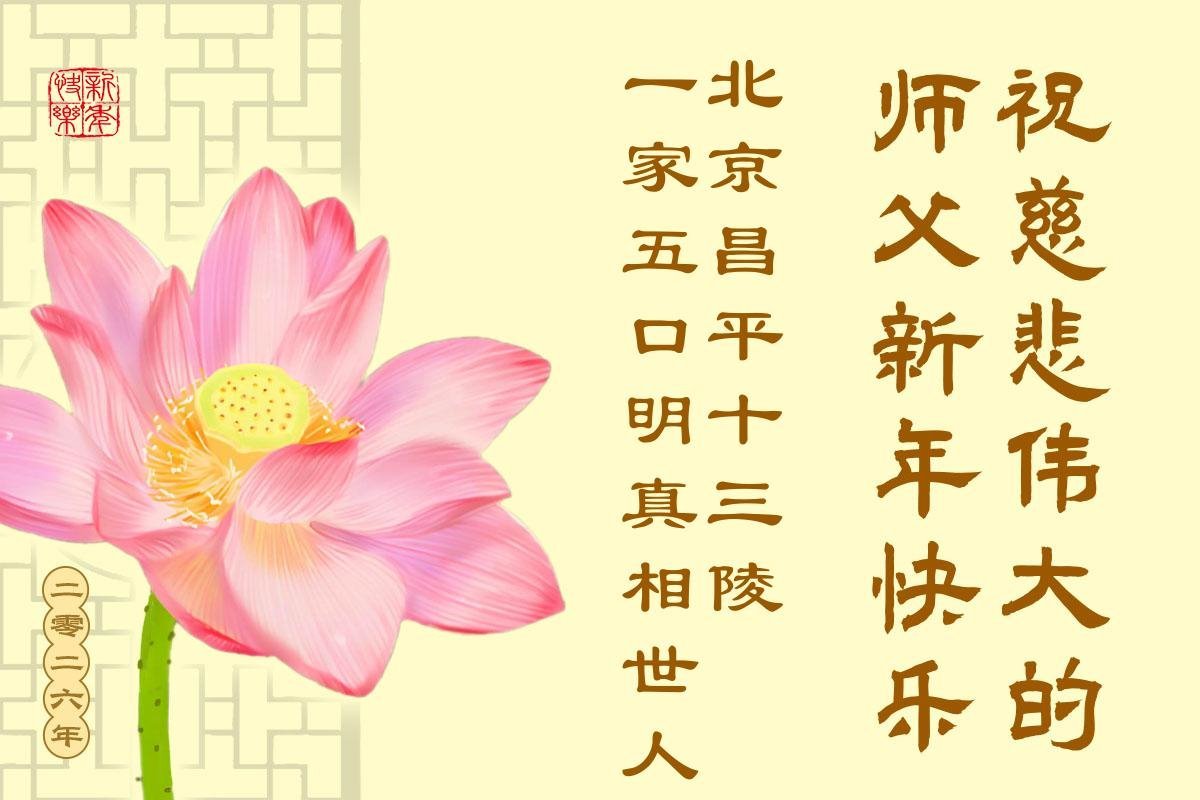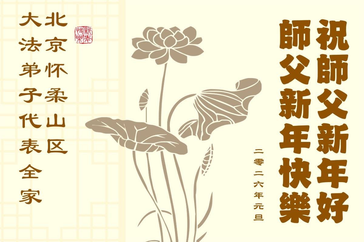 以下是部份来自中国各省、市、地区的学法炼功小组、讲真相小组、资料点大法弟子们敬致师尊的新年贺词贺卡: