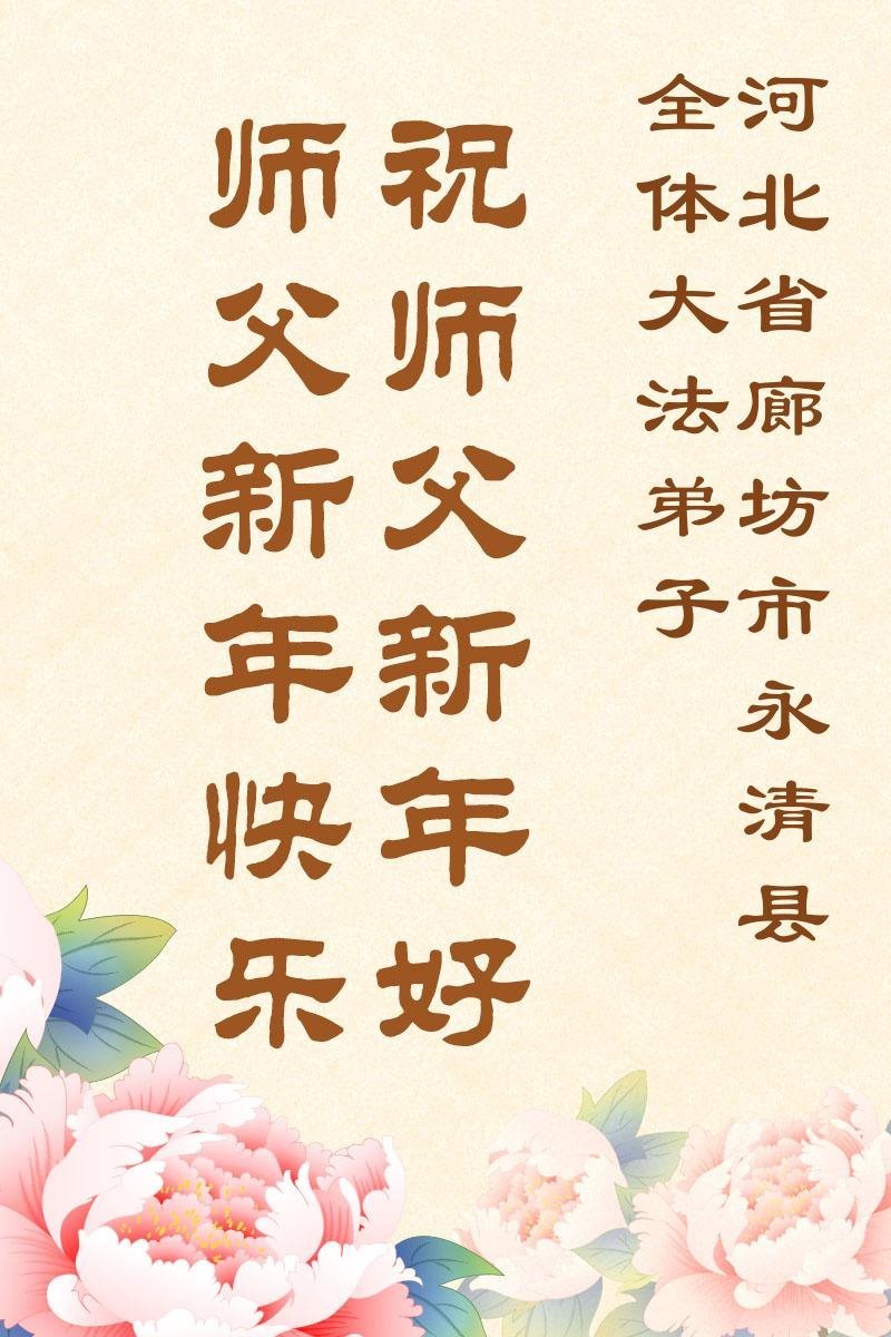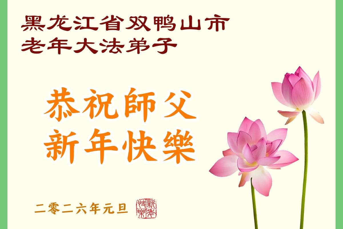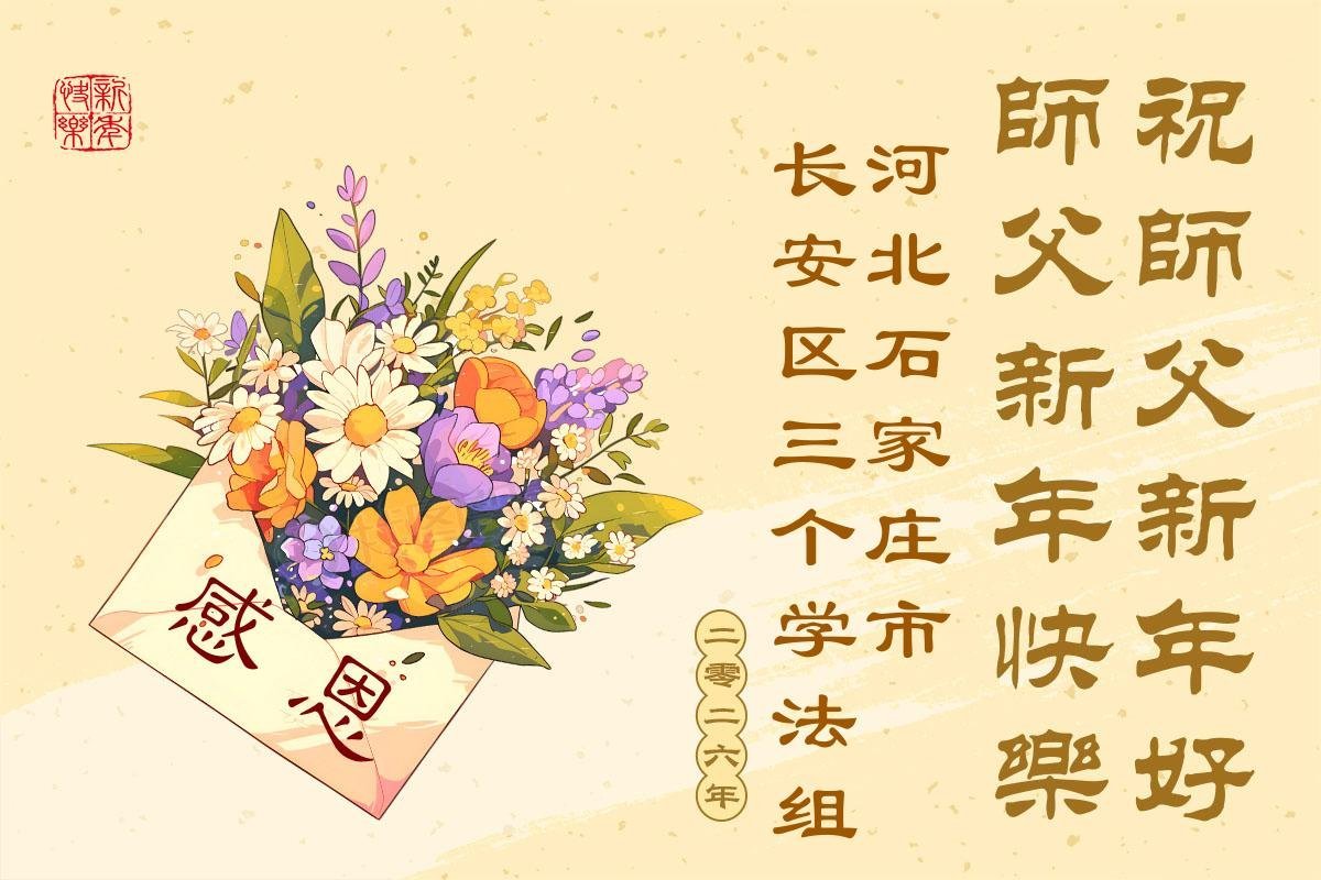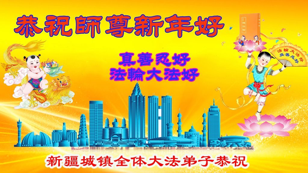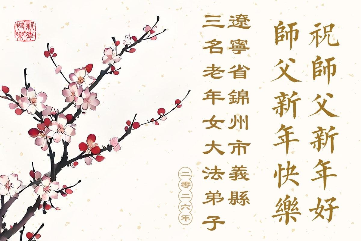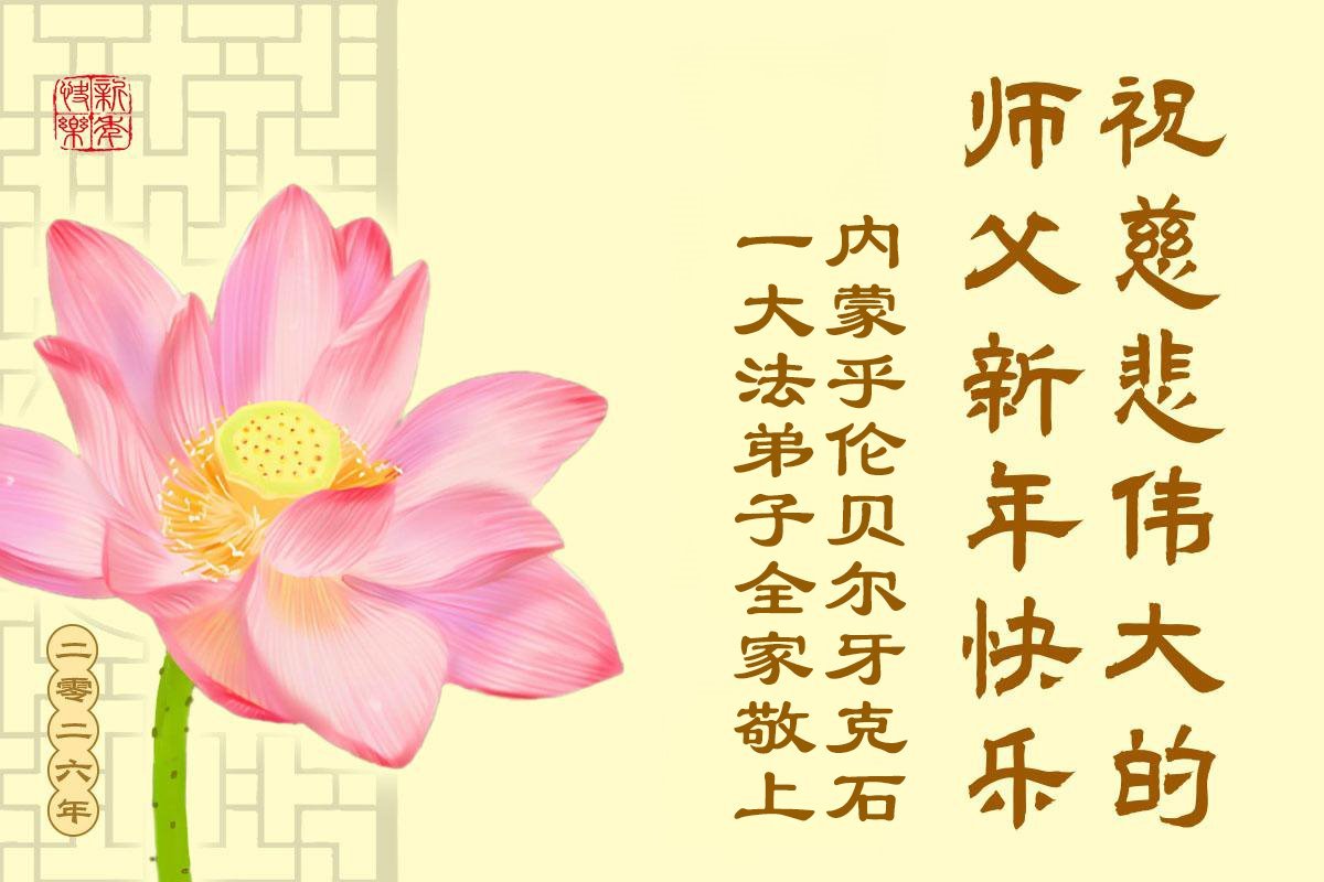 以下是部份来自中国各省、市、地区的学法炼功小组、讲真相小组、资料点大法弟子们敬致师尊的新年贺词贺卡:
