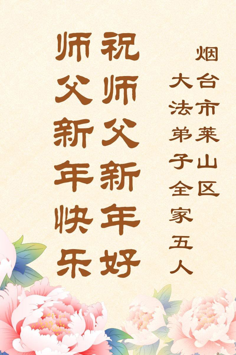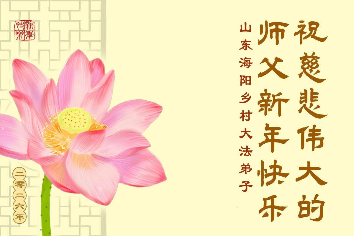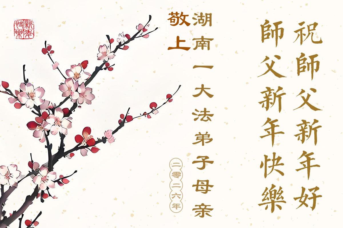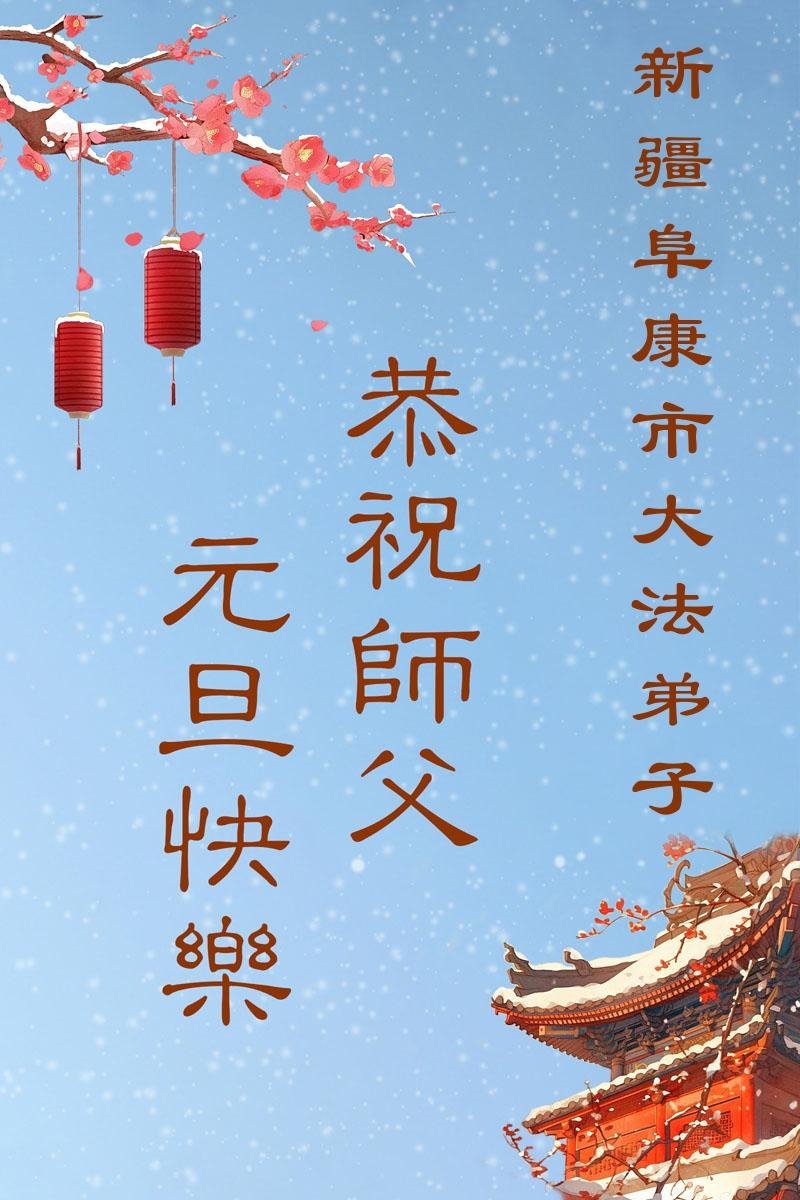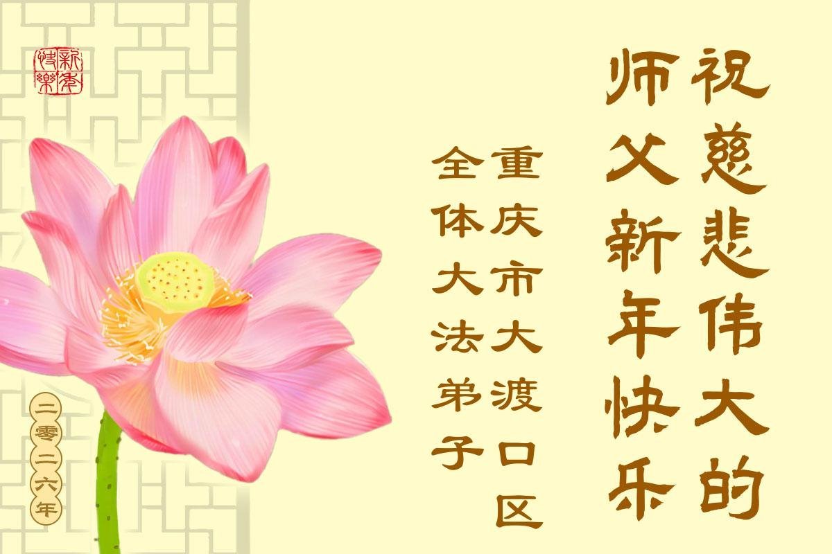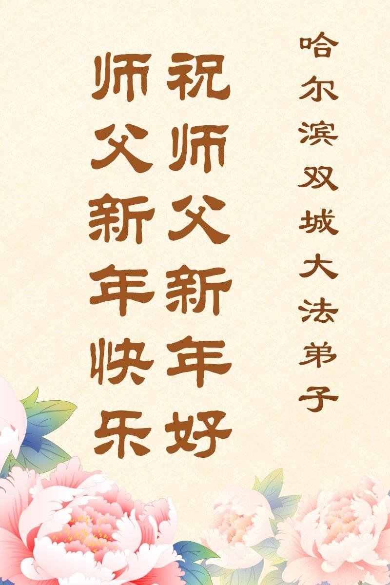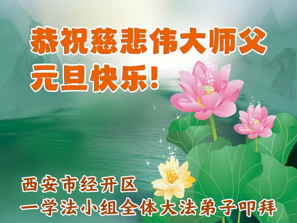 以下是部份来自中国各省、市、地区的学法炼功小组、讲真相小组、资料点大法弟子们敬致师尊的新年贺词贺卡: